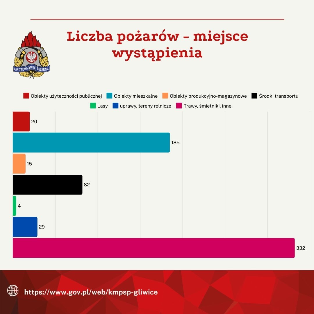 Niestety, wciąż wiele pożarów występuje w obiektach mieszkalnych (185 pożarów) – tam, gdzie powinniśmy czuć się najbezpieczniej. Wysoka liczba takich zdarzeń to sygnał, że ostrożność i odpowiednia eksploatacja urządzeń to klucz do uniknięcia tragedii. Pamiętajmy, by regularnie sprawdzać stan techniczny urządzeń grzewczych oraz elektrycznych.