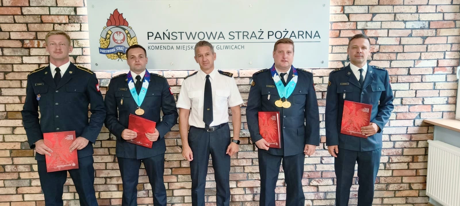W dniu 23.08.2023 r. Komendant Miejski Państwowej Straży Pożarnej w Gliwicach spotkał się ze strażakami którzy reprezentowali nasz kraj w Światowych Igrzyskach Służb Mundurowych w Kanadzie.