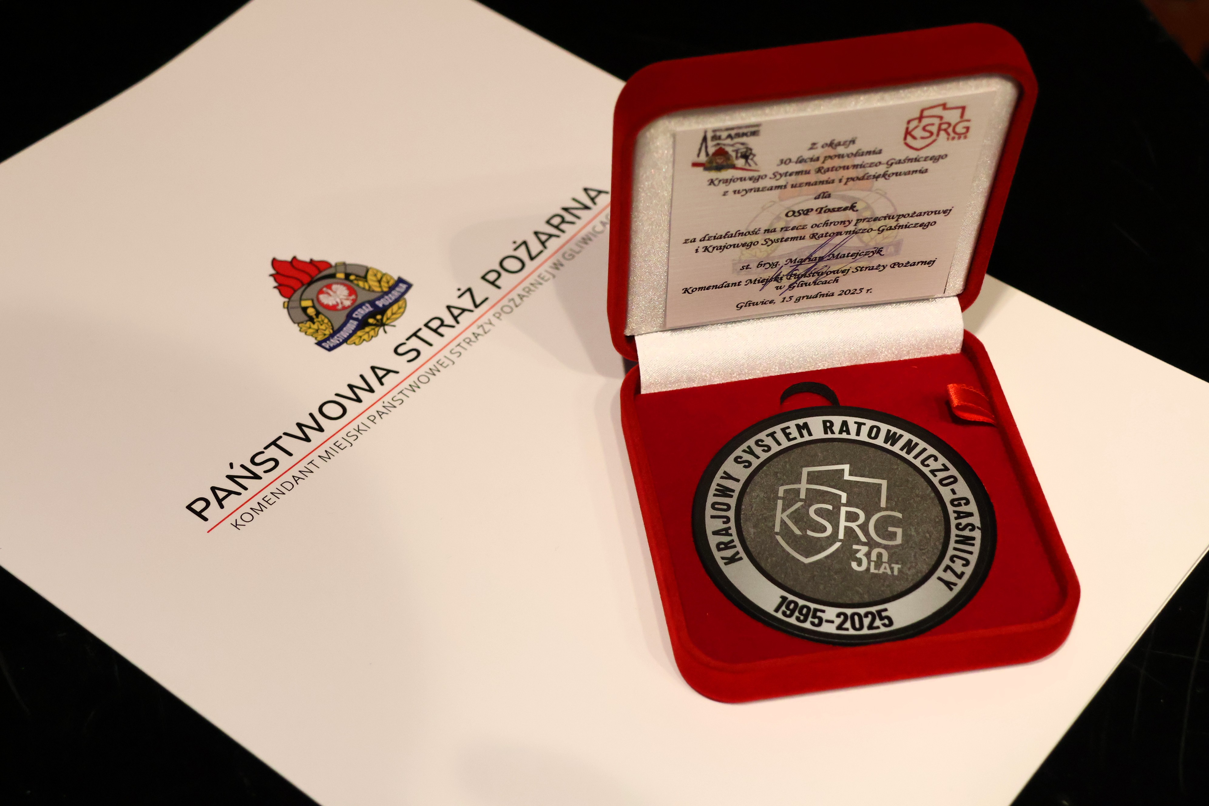 Z okazji 30-lecia KSRG Komendant Miejski PSP w Gliwicach uhonorował pamiątkowymi medalami ks. Piotra Szczygielskiego – Diecezjalnego Kapelana PSP i OSP diecezji gliwickiej – oraz jednostki OSP, które w latach 2010–2025 przekroczyły liczbę 1000 interwencji: OSP Gliwice-Ostropa, OSP Gliwice-Brzezinka, OSP Toszek oraz OSP Gliwice-Bojków.