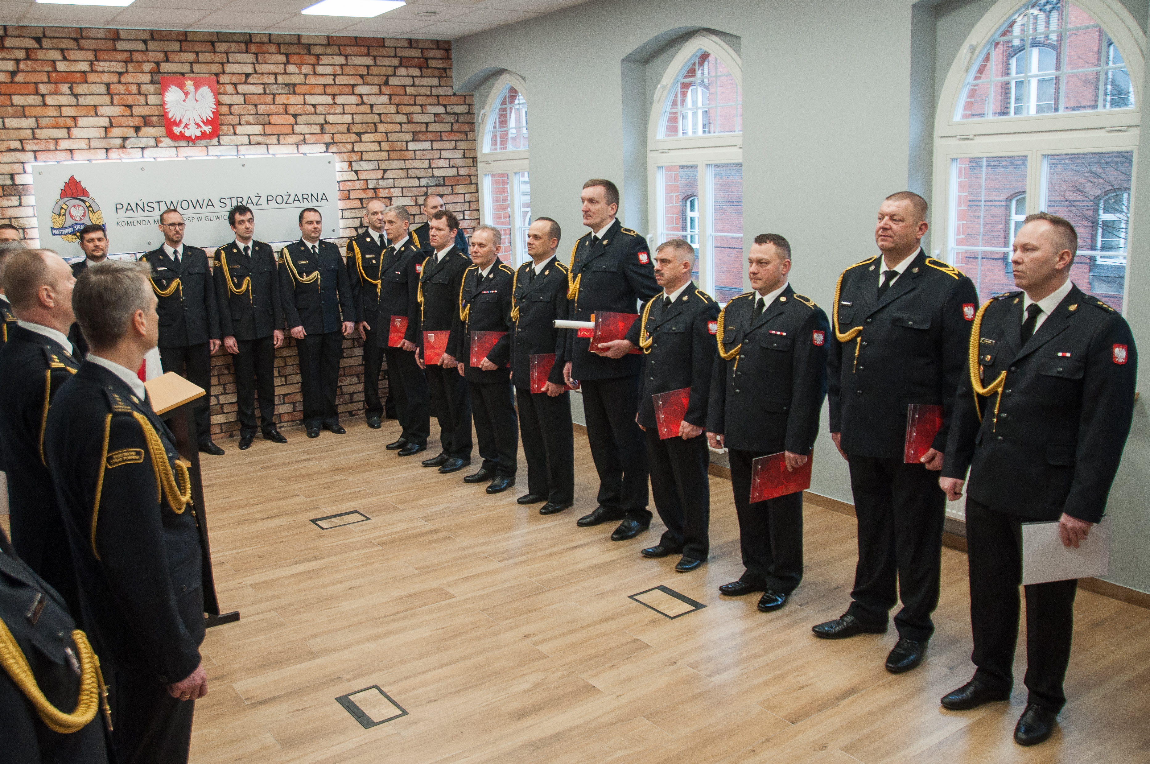 23 lutego 2024 roku w siedzibie Komendy Miejskiej PSP w Gliwicach odbyła się uroczysta zbiórka z okazji pożegnania strażaków kończących służbę w Państwowej Straży Pożarnej oraz wręczenia awansu na wyższy stopień służbowy.