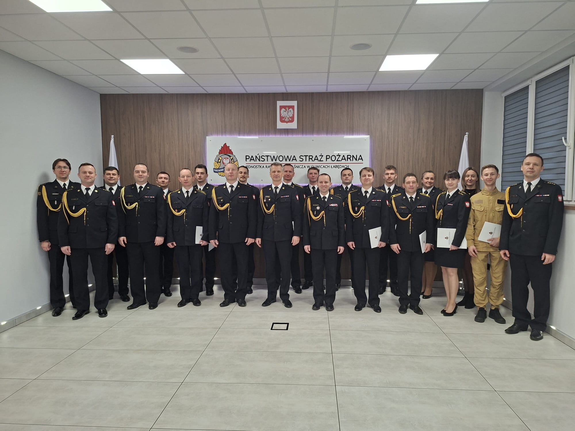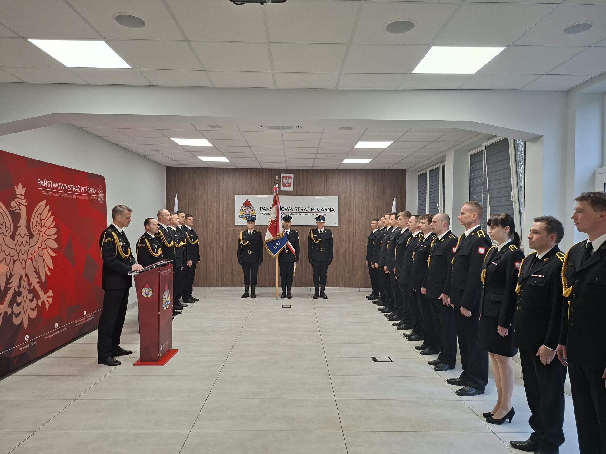 W Komendzie Miejskiej Państwowej Straży Pożarnej w Gliwicach, na terenie Jednostki Ratowniczo-Gaśniczej PSP w Gliwicach-Łabędach odbyła się uroczysta zbiórka z okazji Narodowego Święta Niepodległości, w której uczestniczył Komendant Miejski PSP w Gliwicach, st. bryg. Marian Matejczyk, jego Zastępcy - st. bryg. Wojciech Piechaczek oraz bryg. Janusz Kozłowski, a także funkcjonariusze gliwickiej Komendy.
