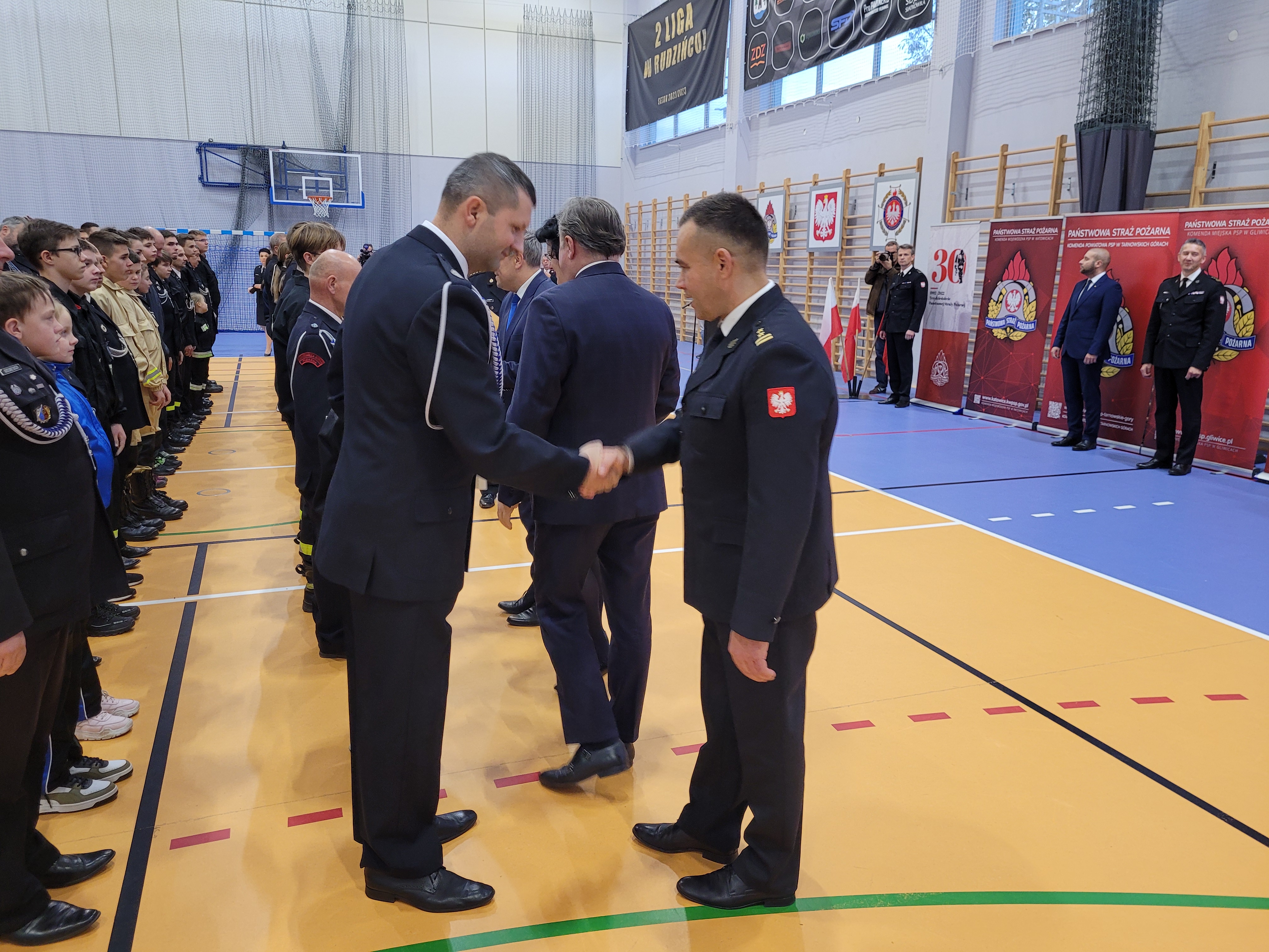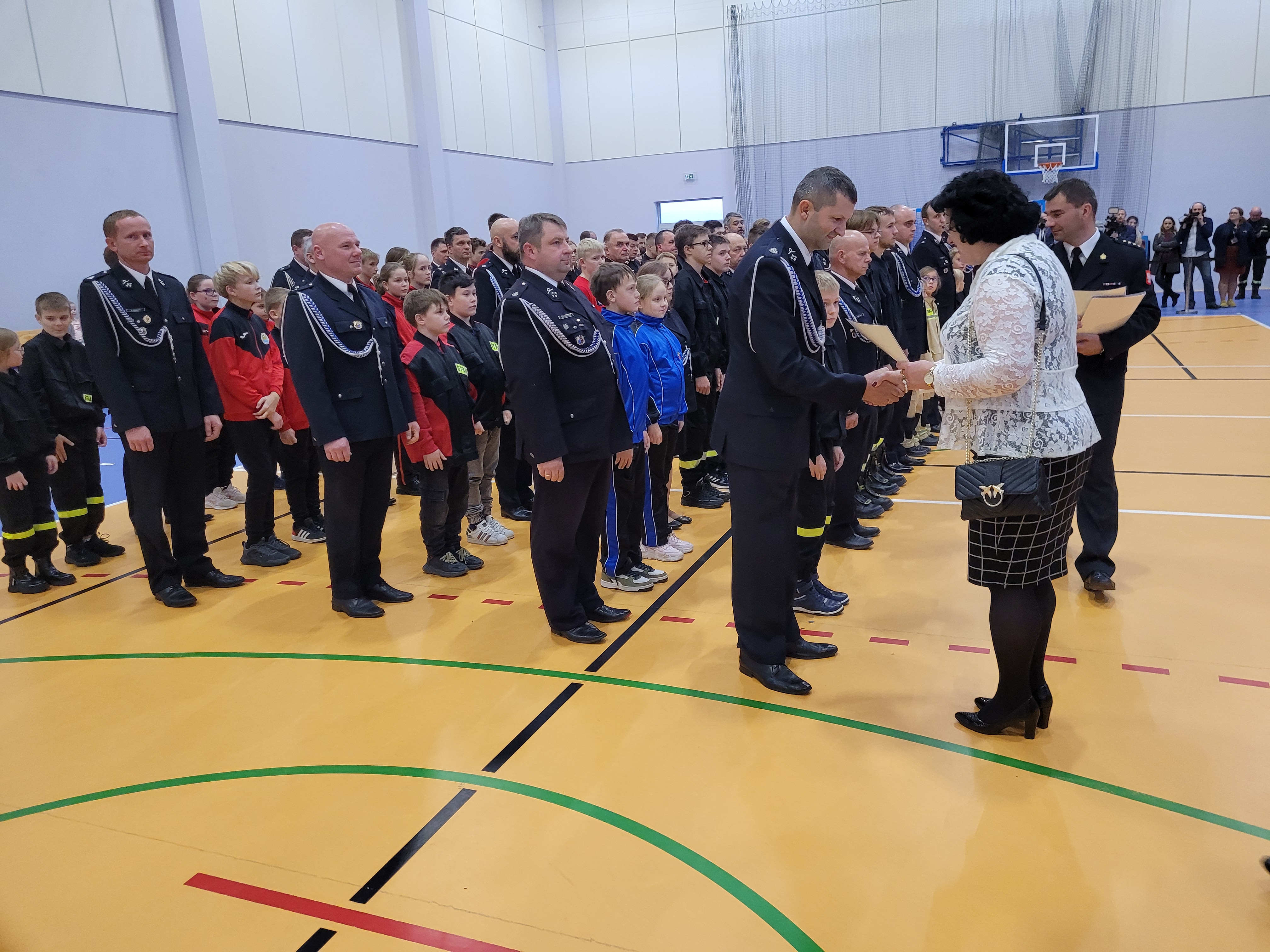 Uroczystość wręczenia promes dotacji celowej dla Ochotniczych Straży Pożarnych na zakup sprzętu dla członków Młodzieżowych Drużyn Pożarniczych
