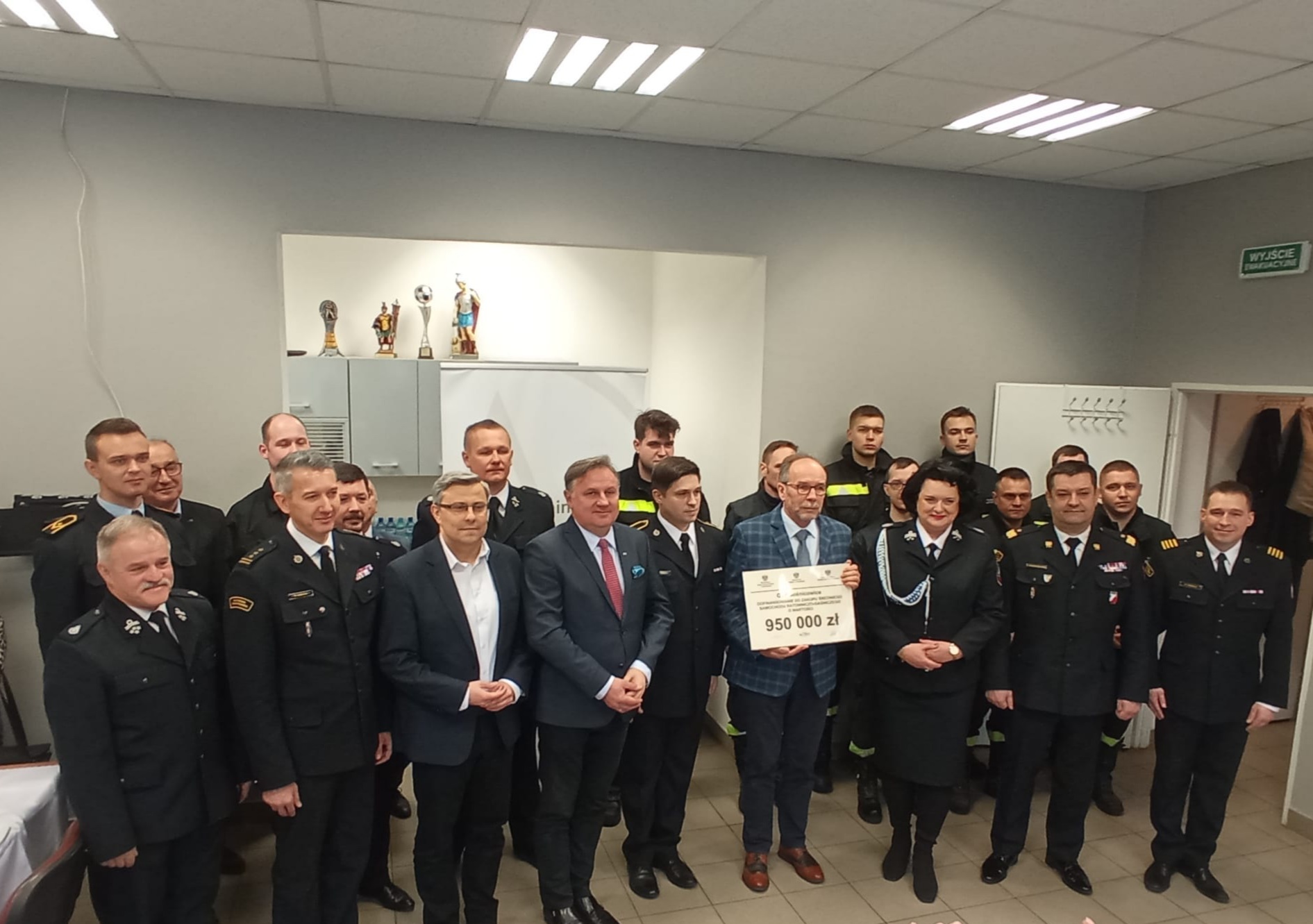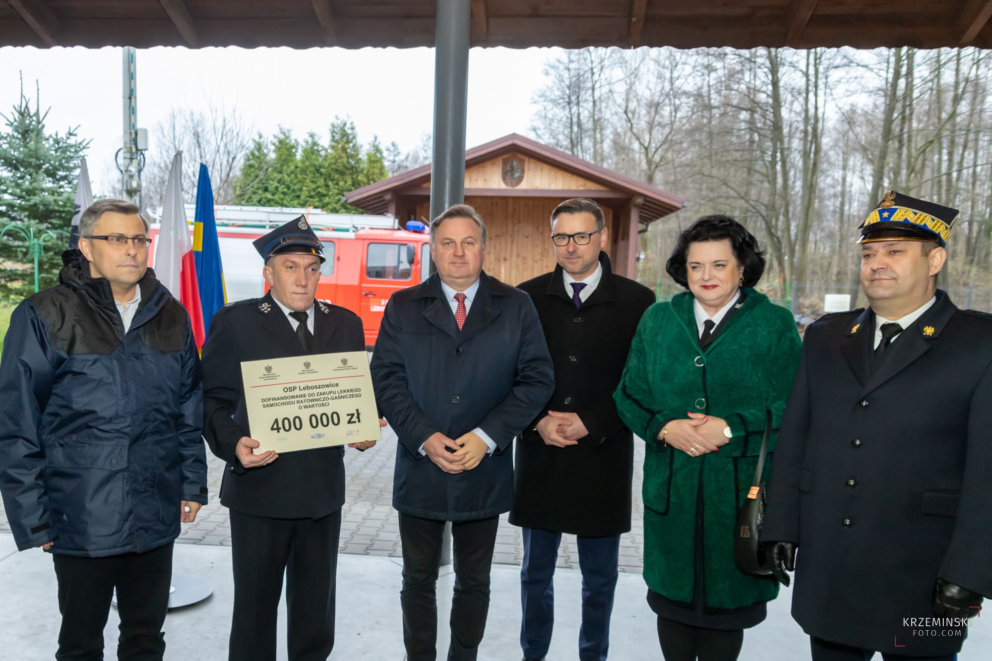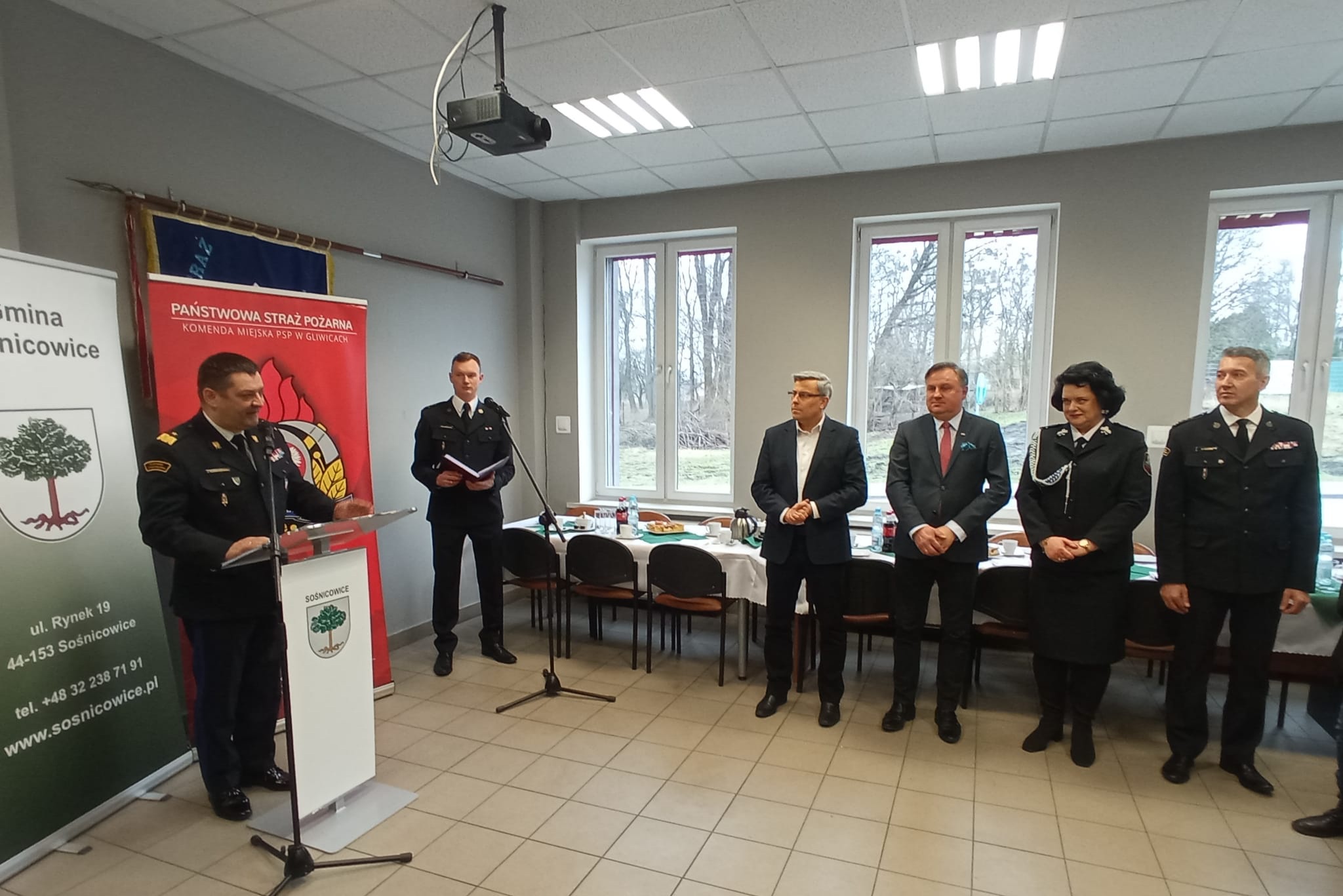 Podczas uroczystości promesy na zakup samochodów ratowniczo-gaśniczych odebrali strażacy z Jednostek Ochotniczych Straży Pożarnych z Leboszowic i Sośnicowic.