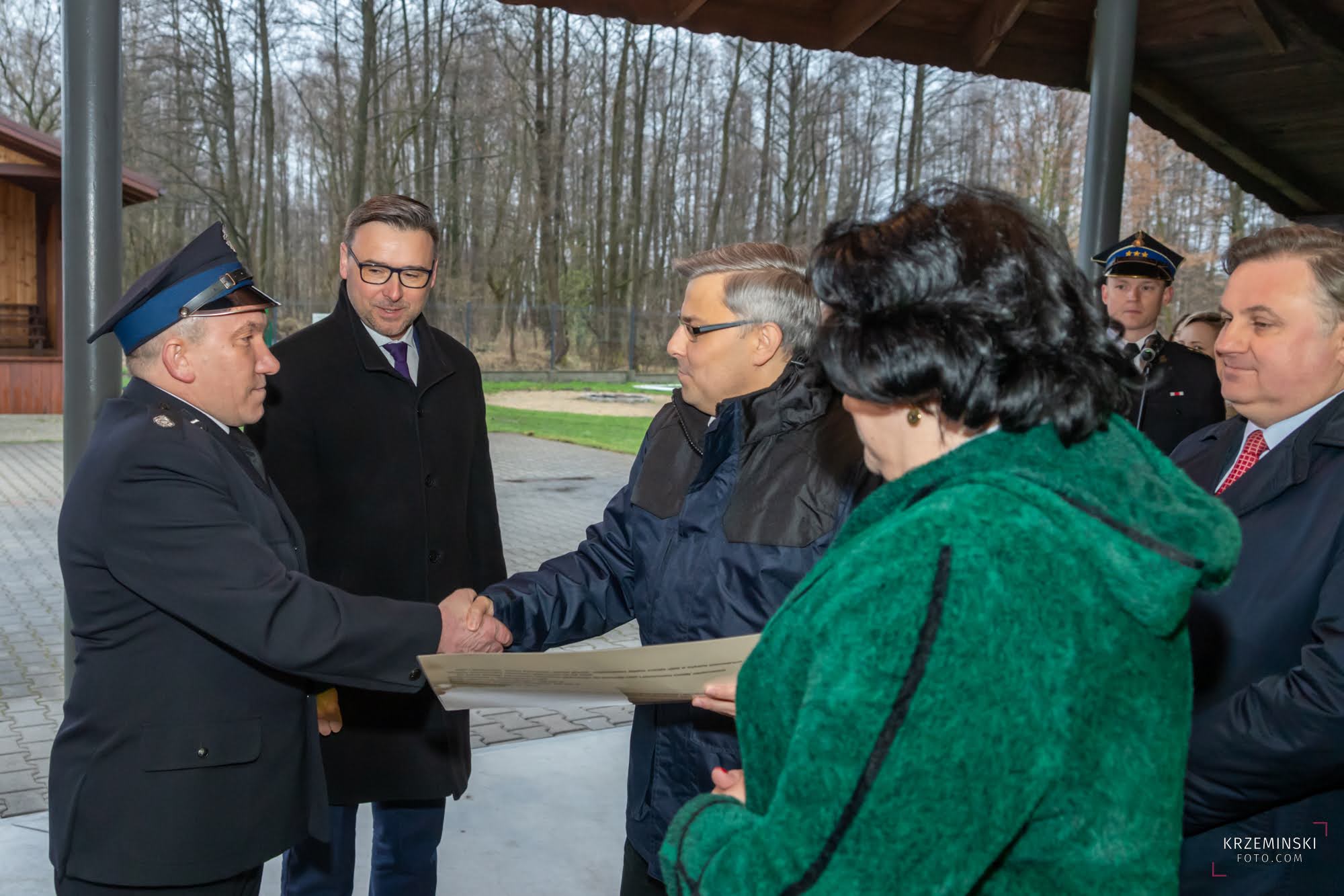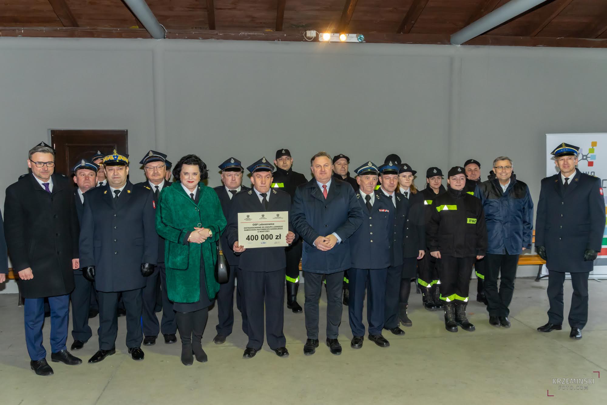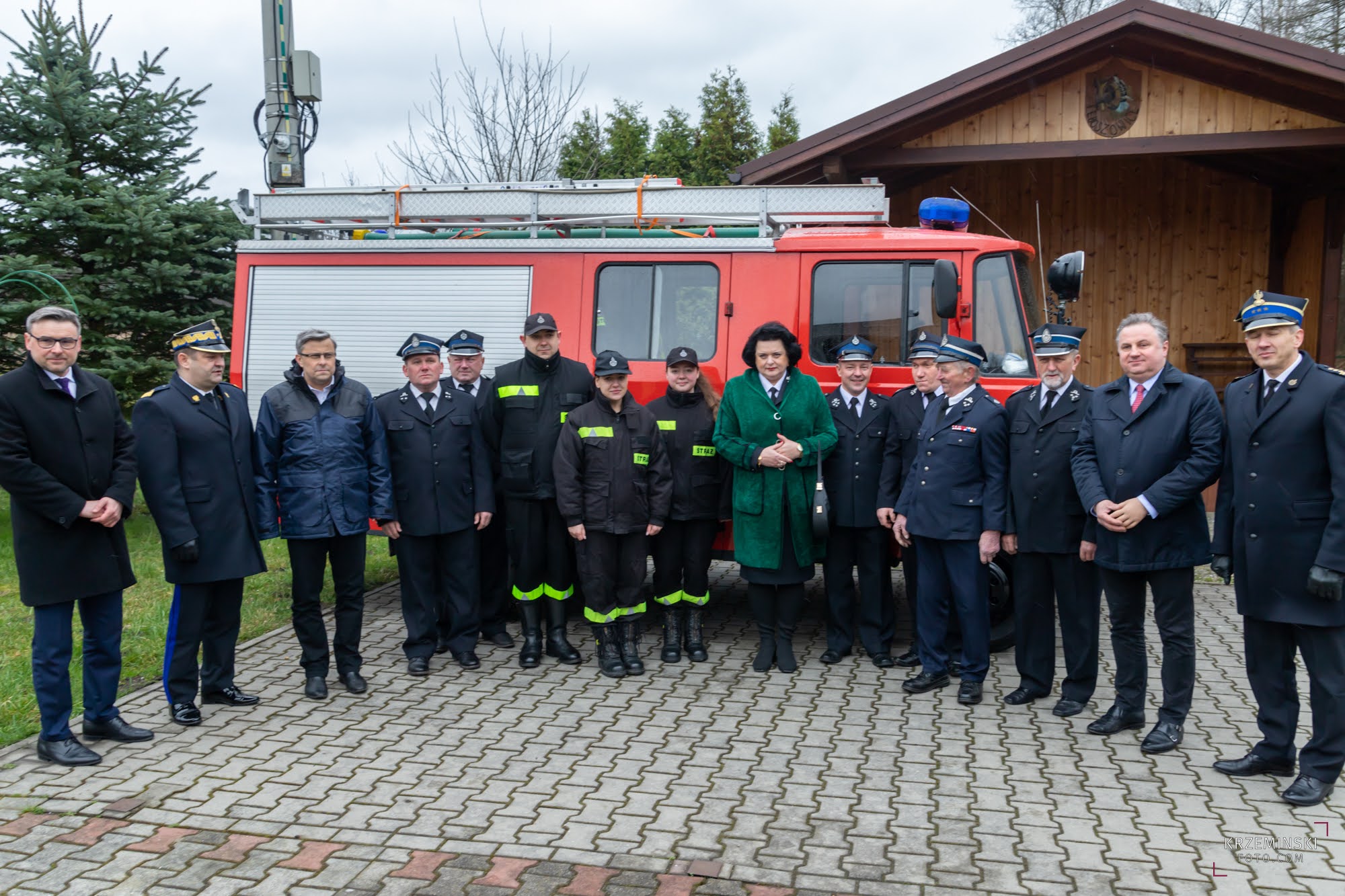 Podczas uroczystości promesy na zakup samochodów ratowniczo-gaśniczych odebrali strażacy z Jednostek Ochotniczych Straży Pożarnych z Leboszowic i Sośnicowic.