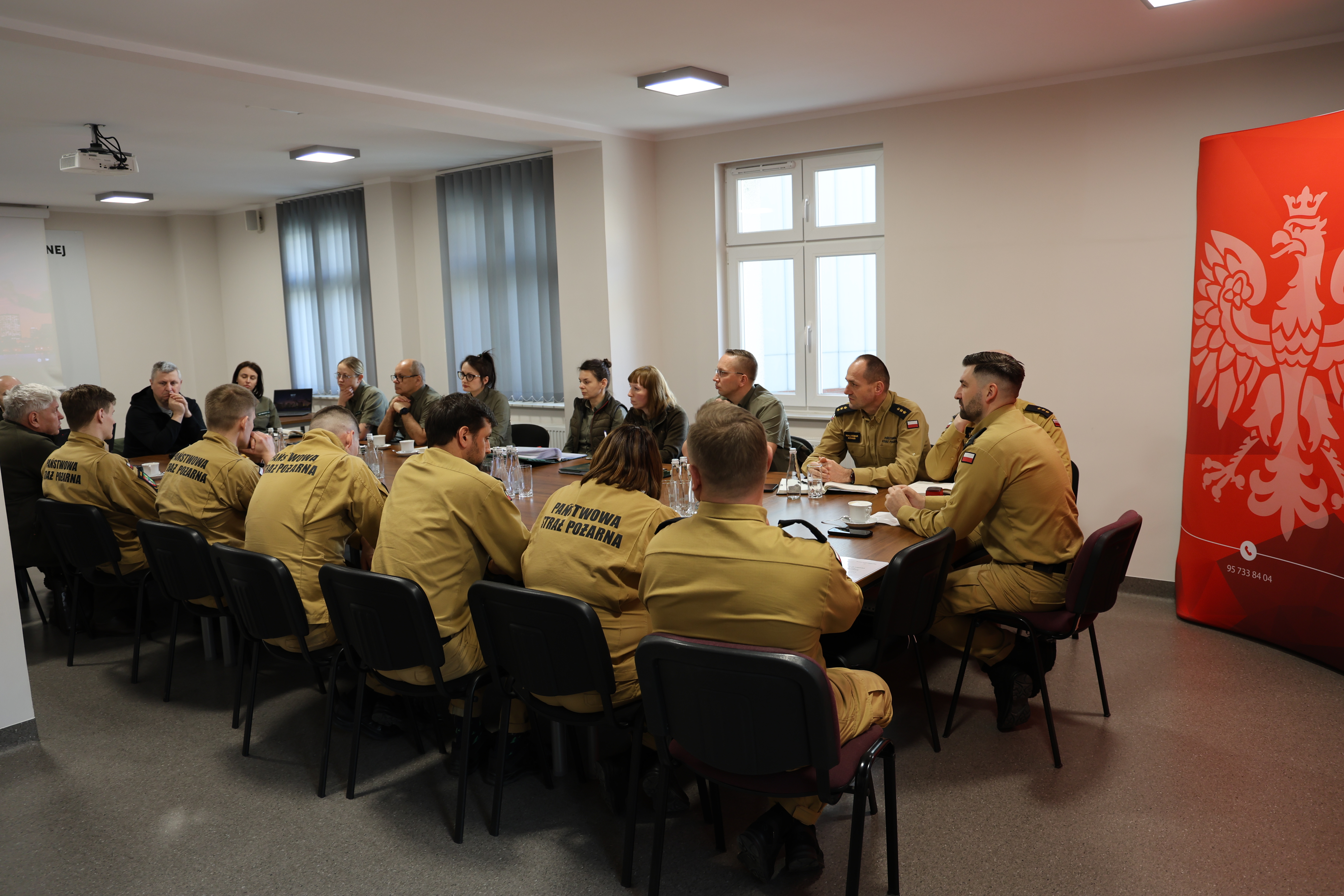 W dniu 27 marca 2026 r. w siedzibie Komendy Miejskiej PSP w Gorzowie Wlkp. odbyła się coroczna narada przed okresem wzmożonej palności na terenach leśnych. Spotkaniu przewodniczył st. kpt. Michał Mołodczak - Zastępca Komendanta Miejskiego PSP. W spotkaniu udział wzięli przedstawiciele dziewięciu nadleśnictw Lasów Państwowych, których obszar działania obejmuje teren powiatu gorzowskiego, funkcjonariusze wydziałów kontrolno-rozpoznawczego i operacyjno-szkoleniowego oraz dowódcy jednostek ratowniczo gaśniczych KM PSP w Gorzowie Wlkp. W trakcie spotkania omówiono problematykę napotkaną w Nadleśnictwach w zakresie ochrony przeciwpożarowej, zmiany w zakresie powierzchni oraz przebiegu granic nadleśnictw, aktualny stan zabezpieczenia przeciwpożarowego lasów, przygotowanie techniczne i organizacyjne do okresu wzmożonej palności. Była to również okazja do wymiany wniosków i doświadczeń pomiędzy funkcjonariuszami PSP i pracownikami Lasów Państwowych.