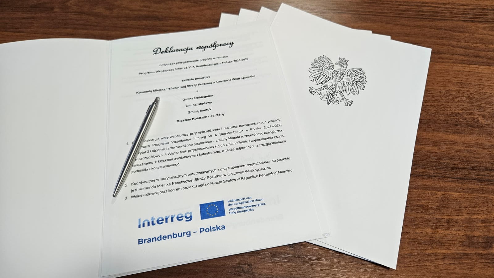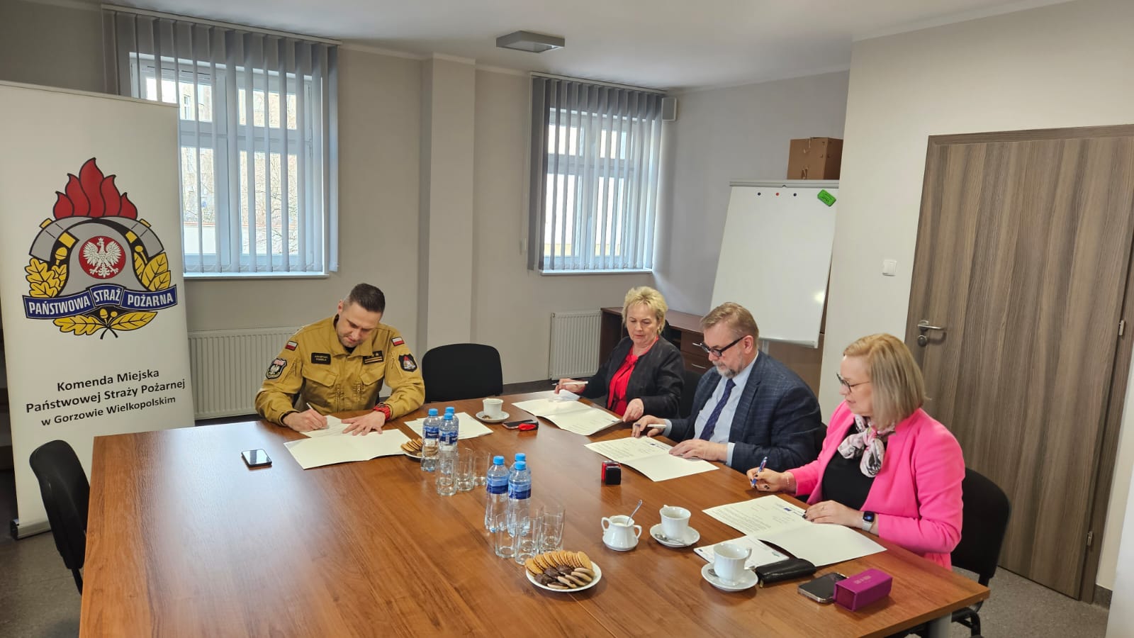W dniu 08.03.2023 r. Komendant Miejski PSP st. bryg. Krystian Kosela poprowadził spotkanie z partnerami lokalnych samorządów mające na celu podpisanie Deklaracji współpracy przy sporządzeniu i realizacji transgranicznego projektu w ramach "Programu Współpracy Interreg VI A Brandenburgia – Polska 2021-2027, Priorytet 2 Odporne i zrównoważone pogranicze – zmiany klimatu różnorodność biologiczna, Cel szczegółowy 2.4 Wspieranie przystosowania się do zmian klimatu i zapobiegania ryzyku związanemu z klęskami żywiołowymi i katastrofami, a także odporności, z uwzględnieniem podejścia ekosystemowego".