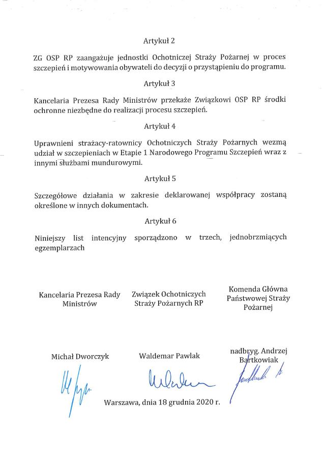 W dniu 18 grudnia 2020 r. został podpisany List Intencyjny w sprawie współpracy dotyczącej realizowania Narodowego Programu Szczepień.
