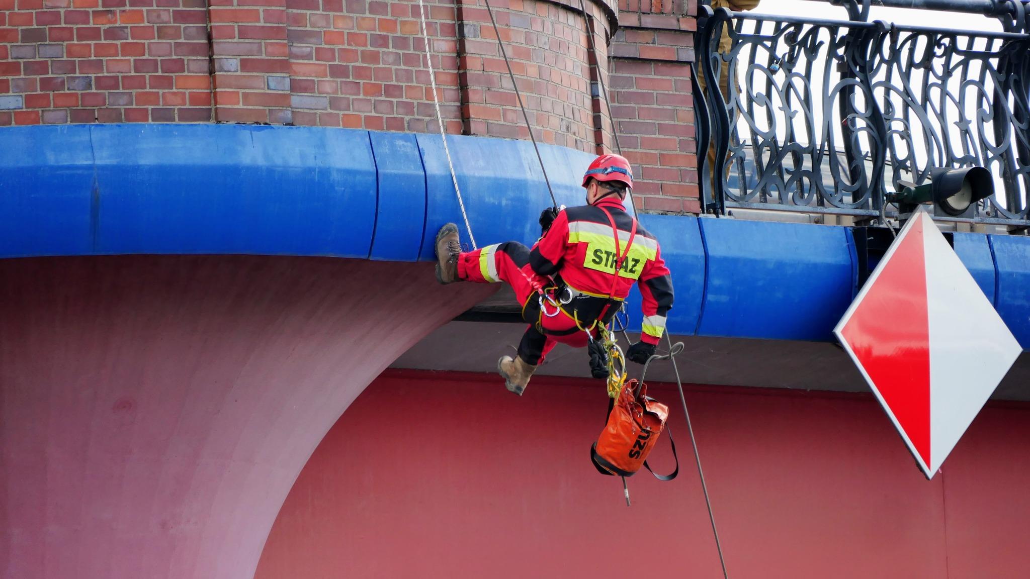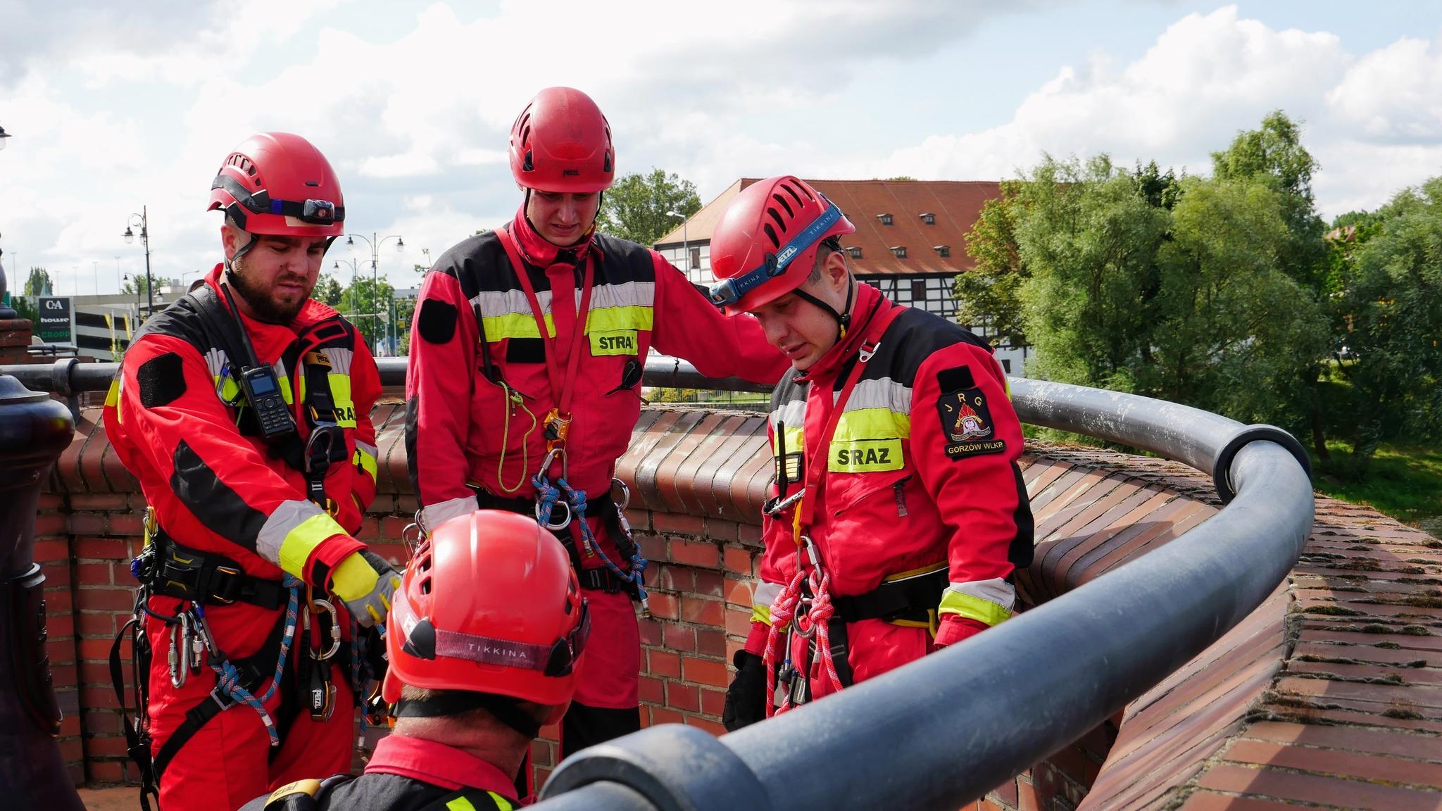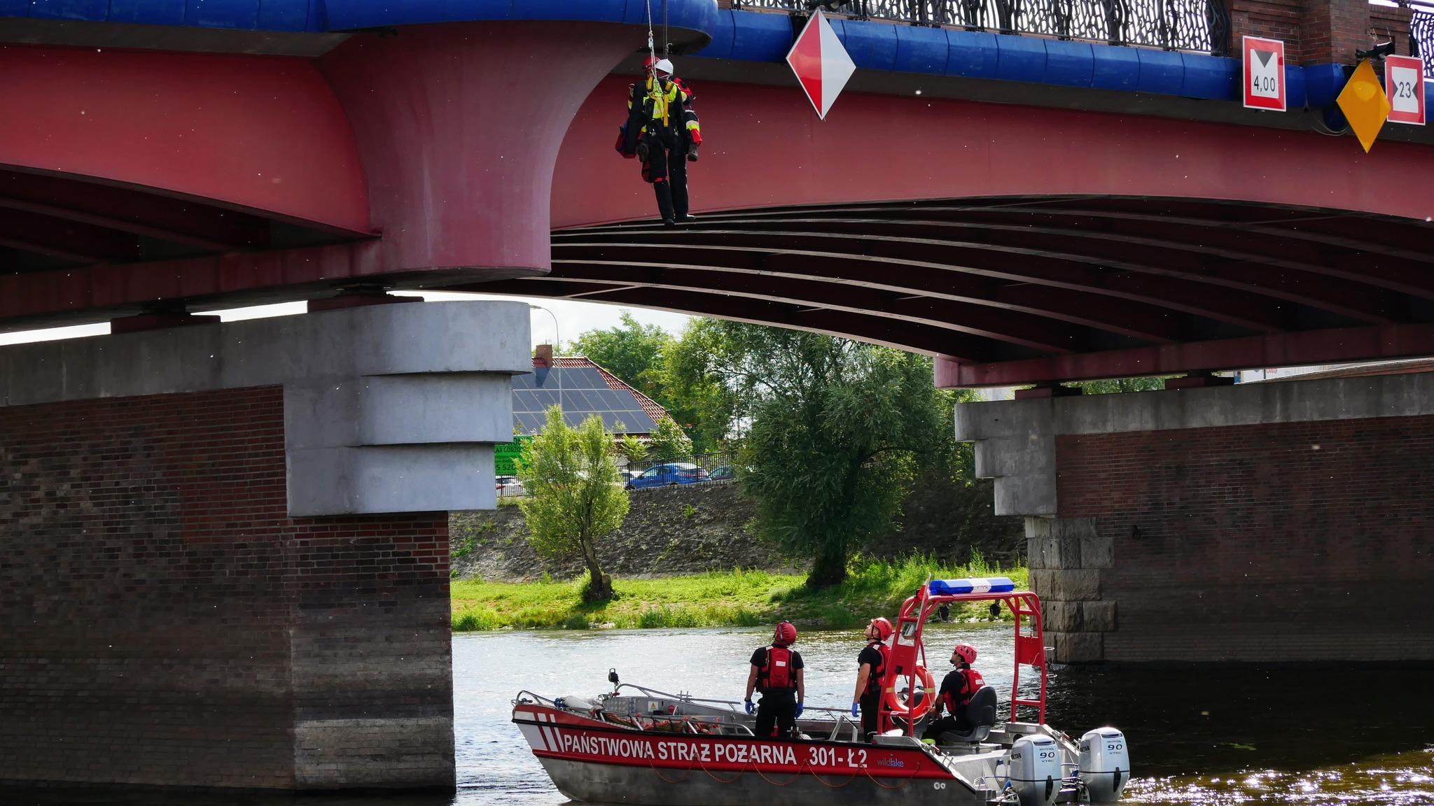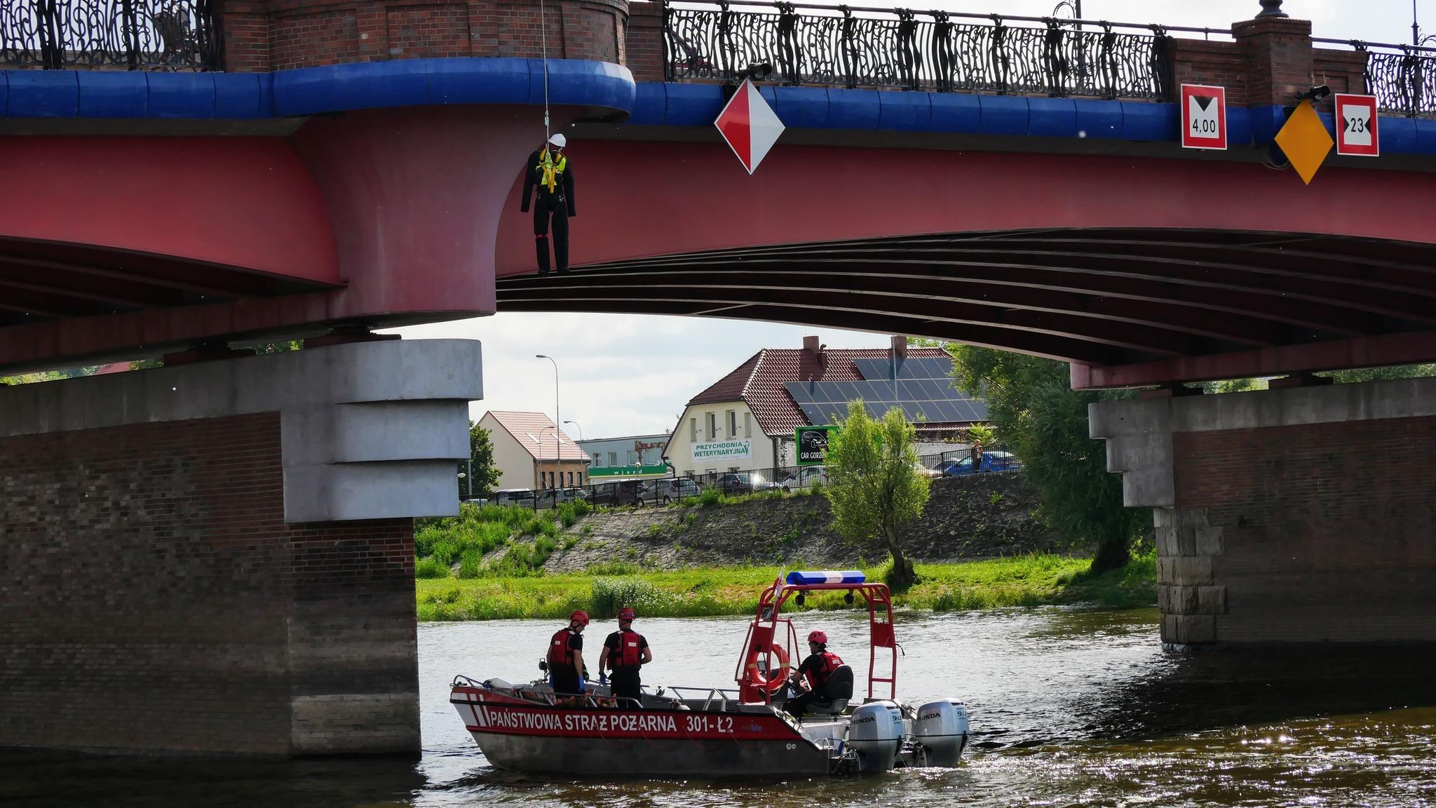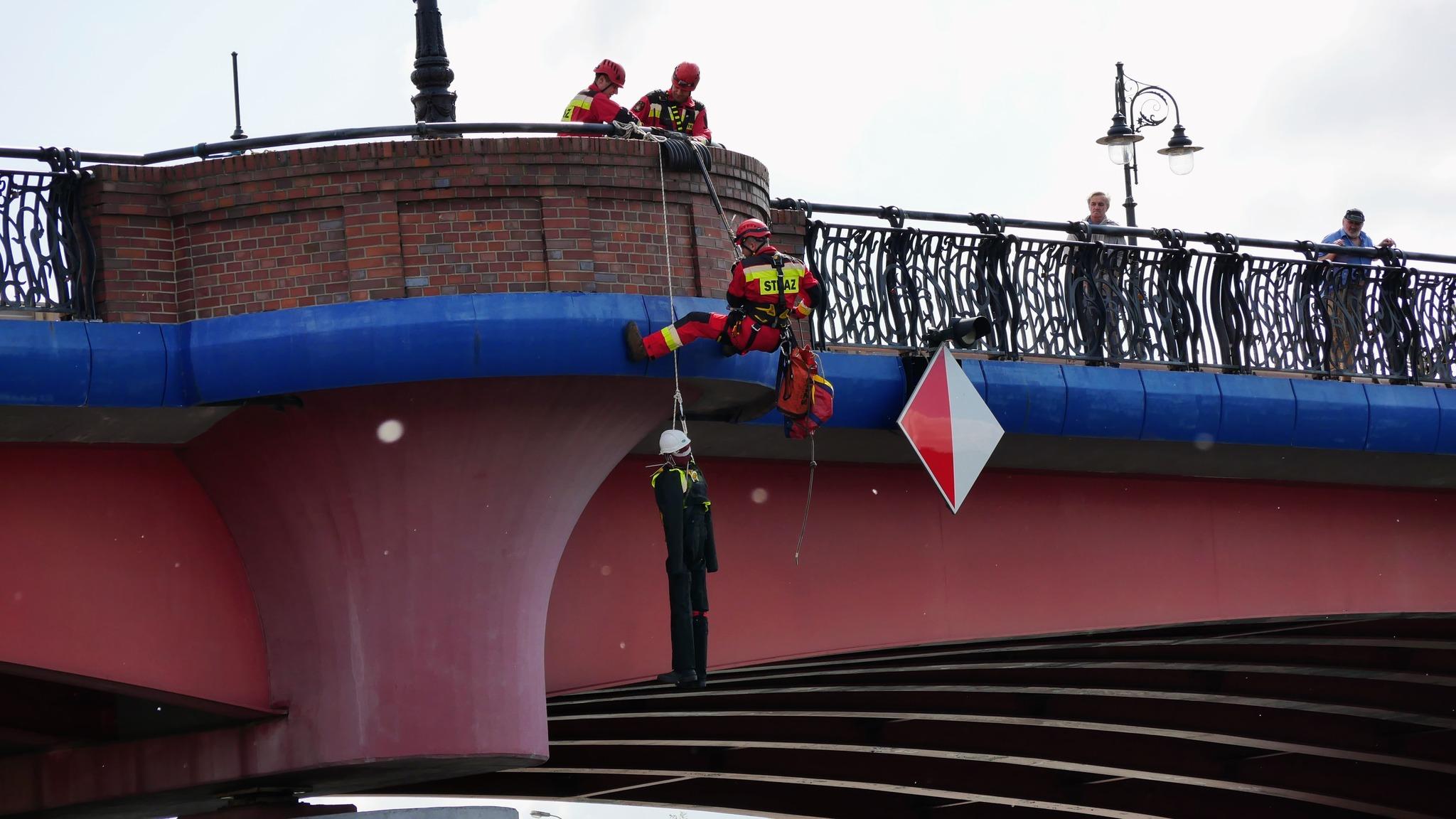 Gorzowscy strażacy ze Specjalistycznych Grup Ratownictwa Wysokościowego oraz Wodno-Nurkowego, zrealizowali scenariusz treningowy, w którym manekin pozorujący pracownika budowlanego został ewakuowany z Mostu Staromiejskiego do łodzi ratunkowej i przetransportowany na brzeg rzeki. Tam strażacy zaprezentowali na nowym narzędziu szkoleniowym, zasady udzielania pierwszej pomocy.