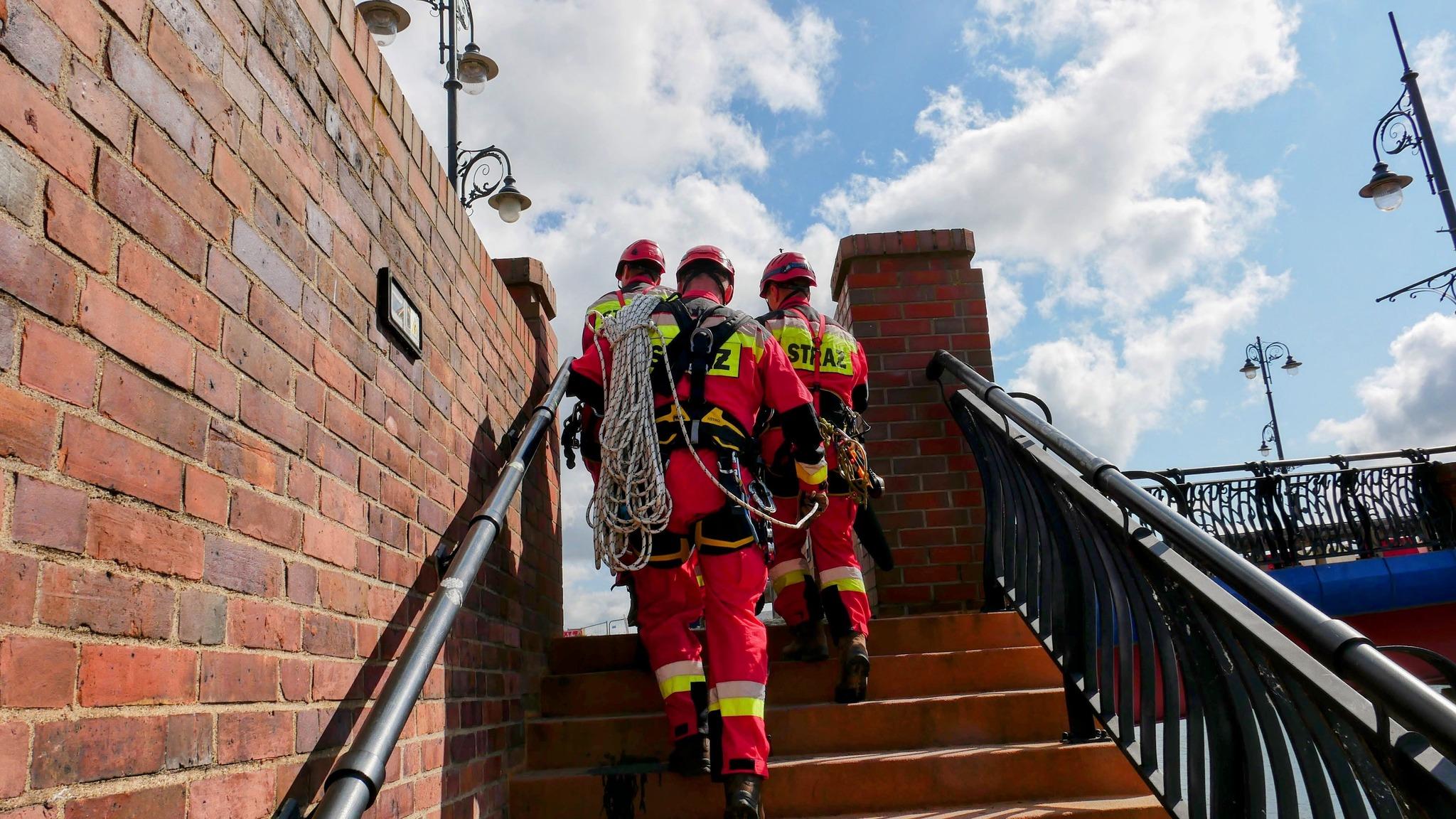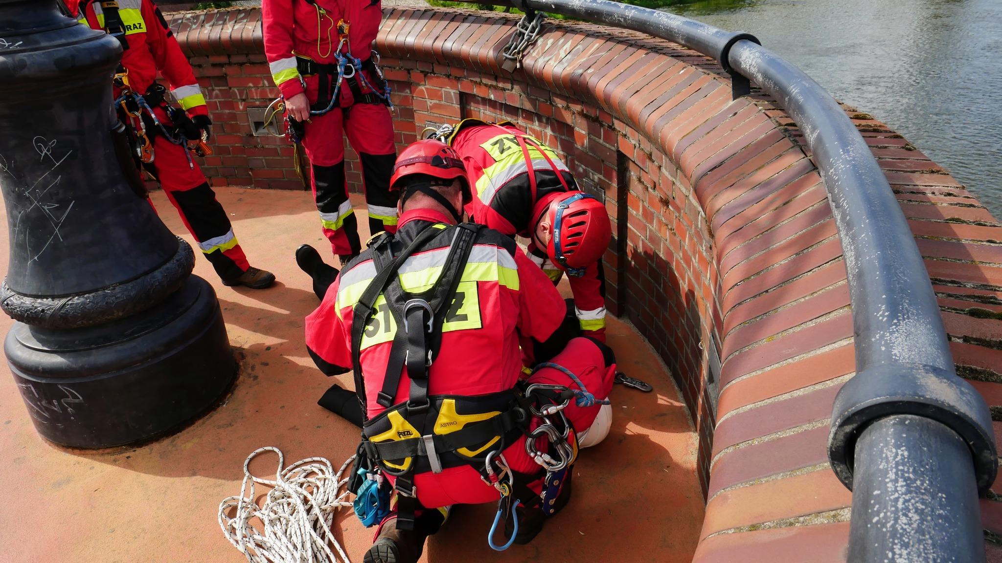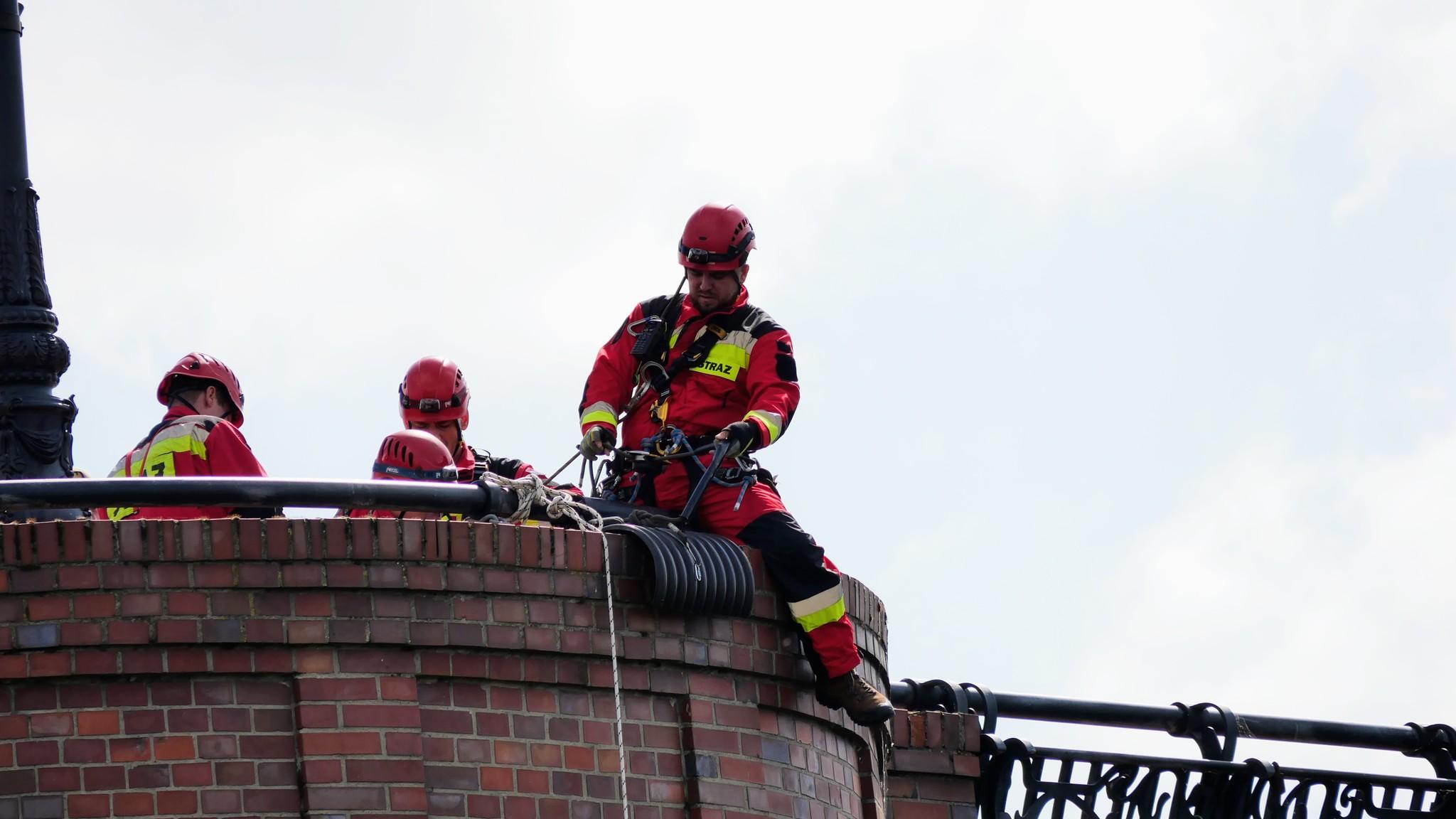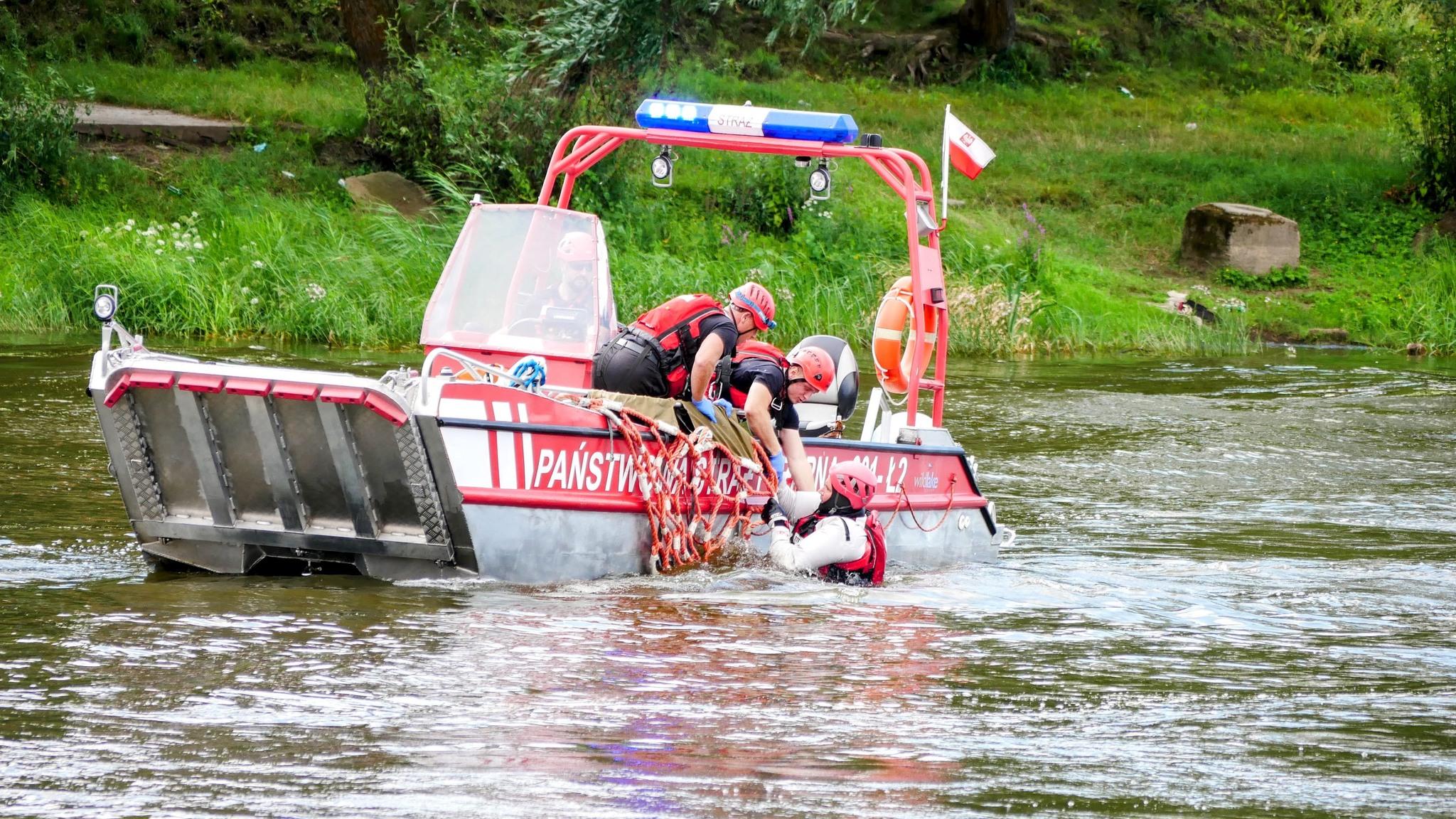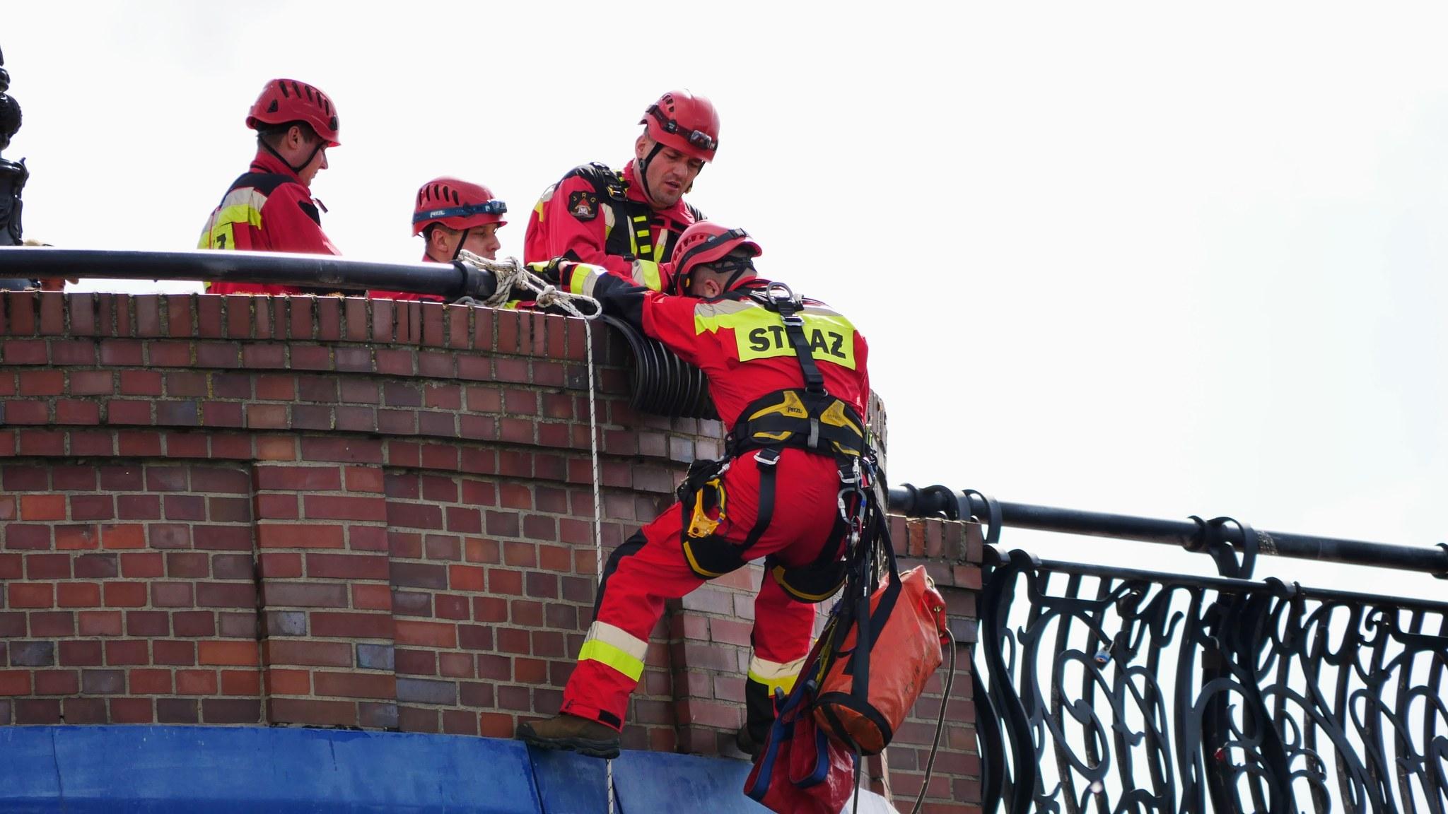 Gorzowscy strażacy ze Specjalistycznych Grup Ratownictwa Wysokościowego oraz Wodno-Nurkowego, zrealizowali scenariusz treningowy, w którym manekin pozorujący pracownika budowlanego został ewakuowany z Mostu Staromiejskiego do łodzi ratunkowej i przetransportowany na brzeg rzeki. Tam strażacy zaprezentowali na nowym narzędziu szkoleniowym, zasady udzielania pierwszej pomocy.