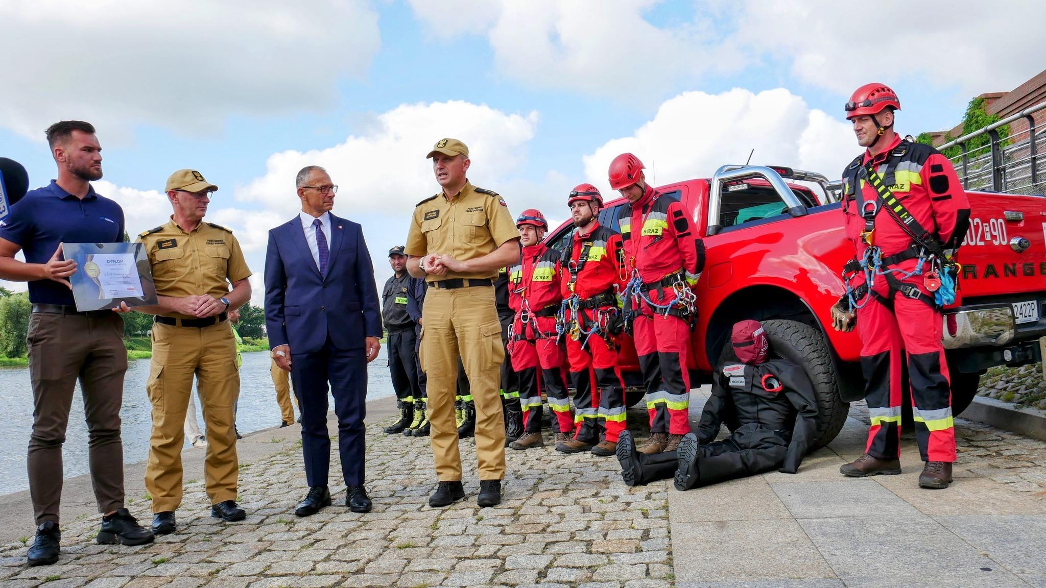 Obecni na uroczystości wojewoda lubuski Marek Cebula i lubuski komendant wojewódzki PSP nadbryg. Janusz Drozda wraz z zastępcą st. bryg. Bartłomiejem Mądrym, mogli zobaczyć pokaz działań ratowniczych z wykorzystaniem otrzymanego sprzętu.