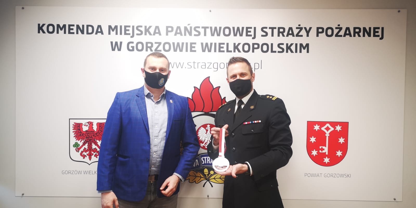 W dniu dzisiejszym w siedzibie naszej Komendy doszło do spotkania Komendanta Miejskiego PSP bryg. Krystiana Koseli z przedstawicielem klubu sportowego Stal Gorzów Wielkopolski S.A., który reprezentował Dyrektor Zarządzający Pan Tomasz Michalski. Spotkanie było okazją do podsumowania dotychczasowej współpracy oraz omówienia planów na nowy sezon. Na ręce Komendanta, jako wyrazy uznania i podziękowania za wsparcie w sezonie 2020, została przekazana bardzo miła niespodzianka w postaci repliki srebrnego medalu Drużynowych Mistrzostw Polski zdobytego przez żużlowców Stali Gorzów w sezonie żużlowym 2020.