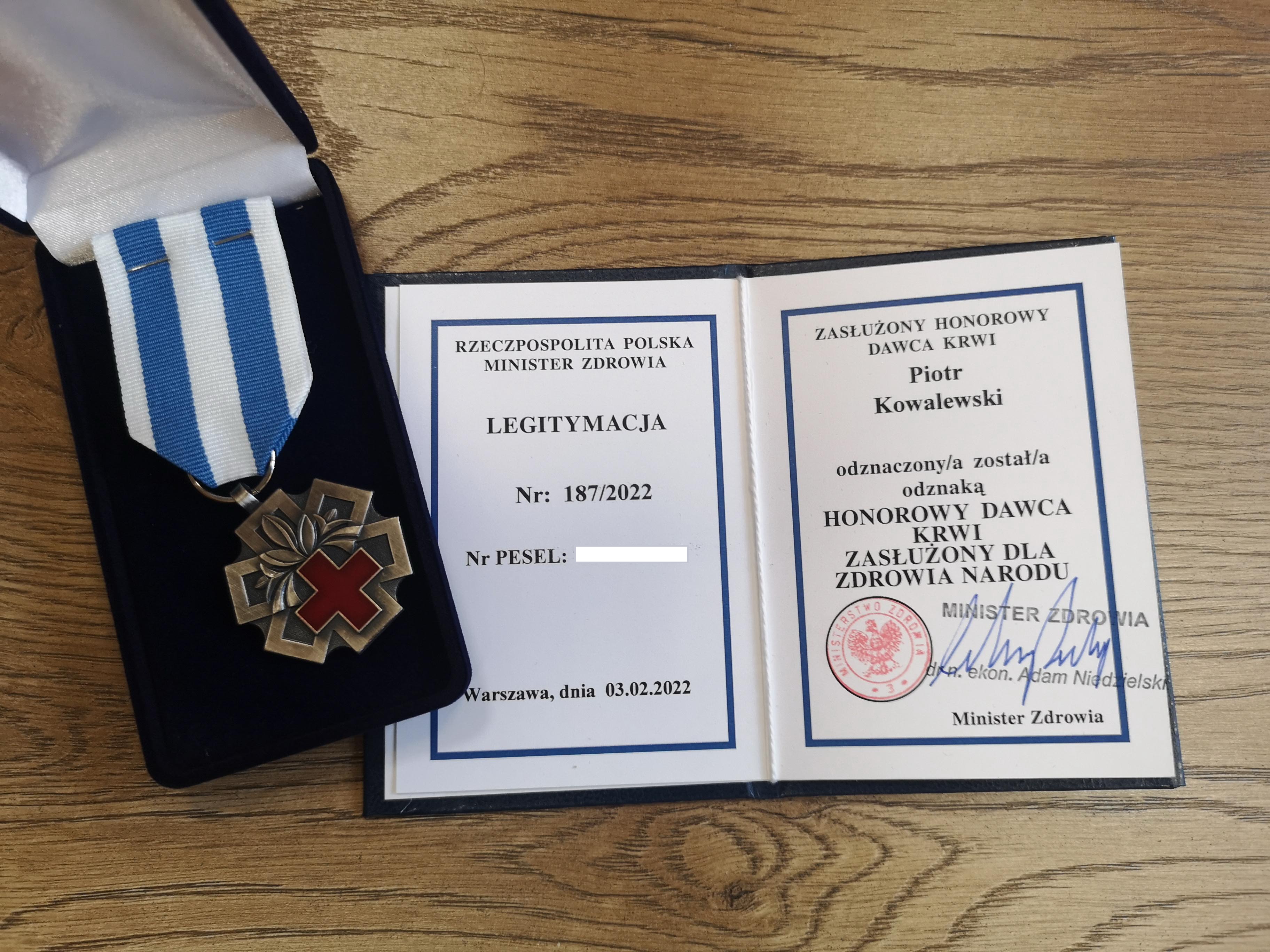 st. ogn. Piotr Kowalewski - Honorowy Dawca Krwi