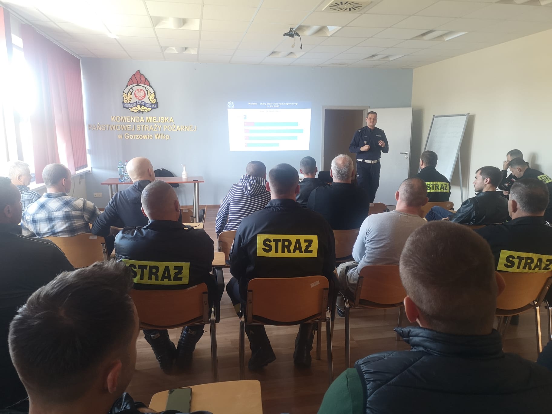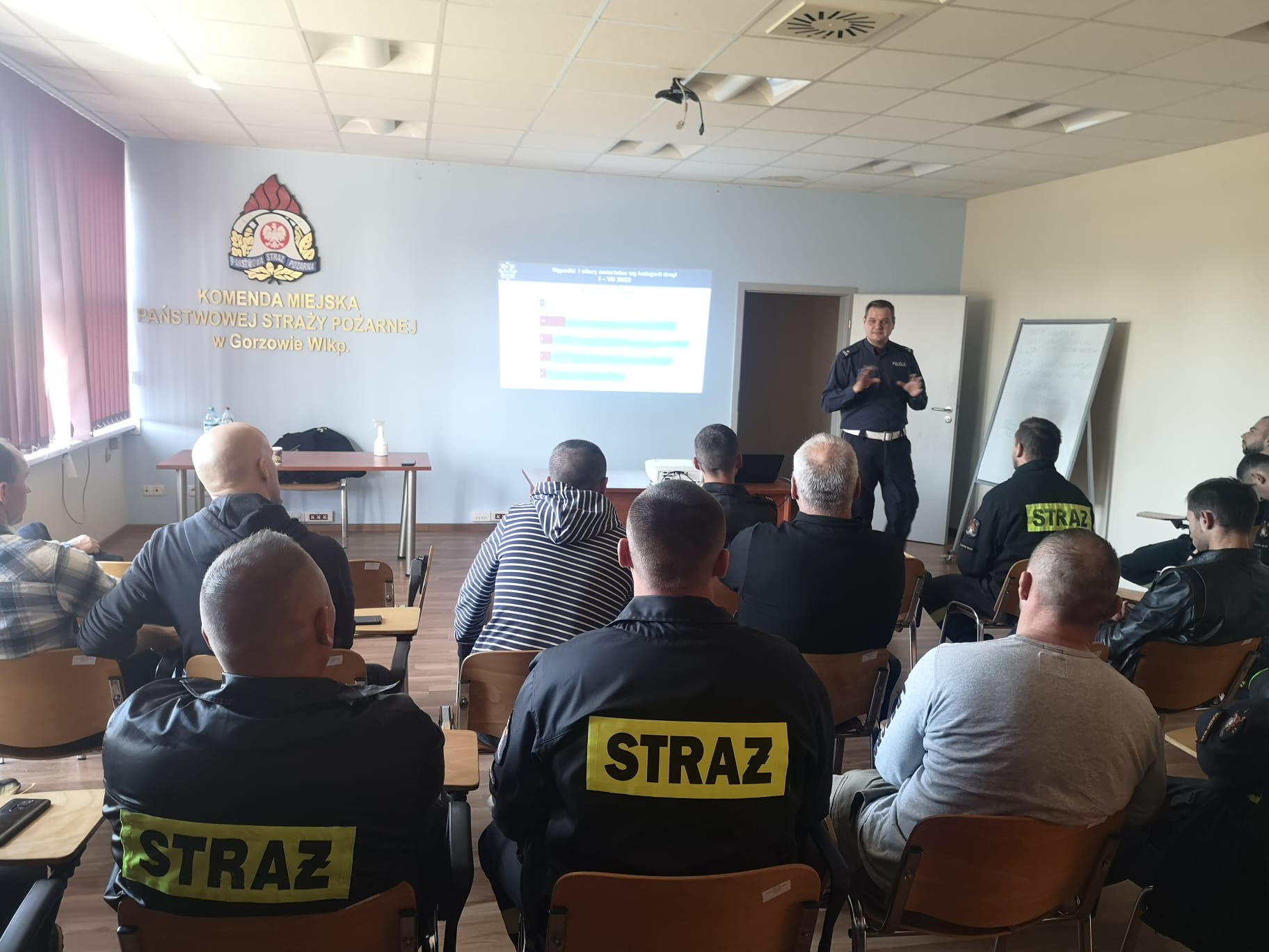 W dniach 5 - 7 października 2022 r. w siedzibie JRG PSP nr 1 w Gorzowie Wlkp. odbył się cykl szkoleń z zakresu bezpieczeństwa w ruchu drogowym. Szkolenie przeprowadził podinspektor Marek Waraksa - Naczelnik Wydziału Ruchu Drogowego KM Policji w Gorzowie Wlkp. Szkolenie skierowane było zarówno do kierowców, funkcjonariuszy Państwowej Straży Pożarnej jak i druhów na co dzień jeżdżących do działań w jednostkach Ochotniczych Straży Pożarnych powiatu gorzowskiego.