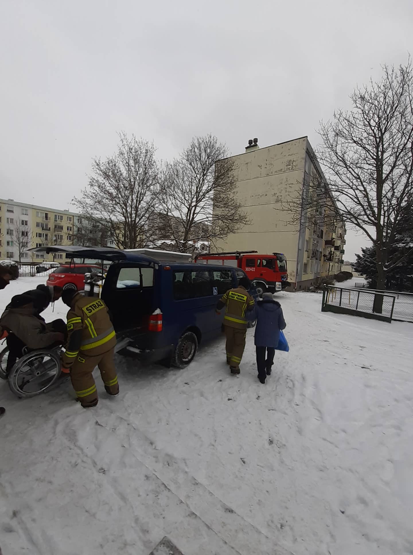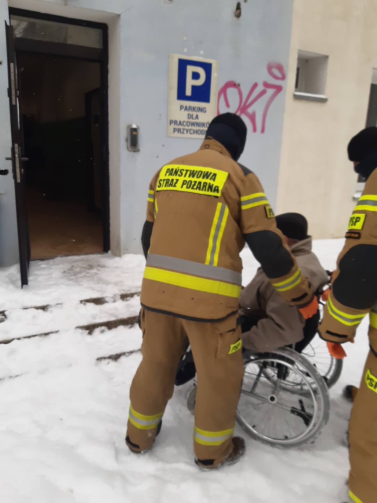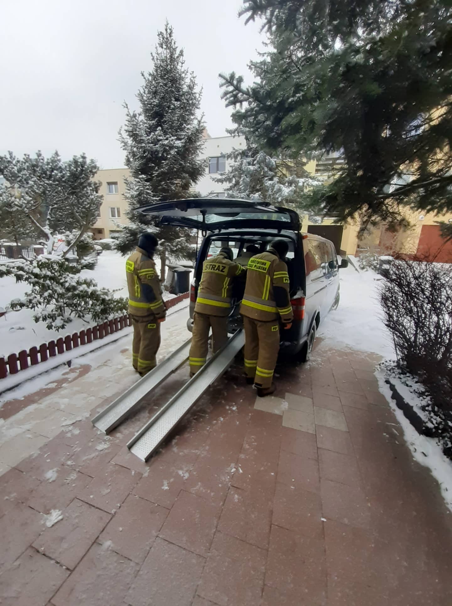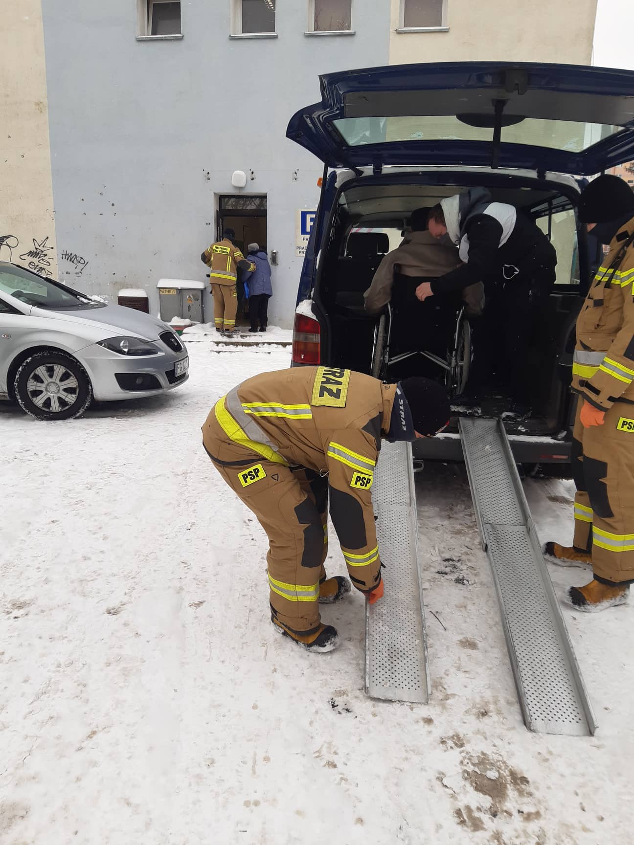 Na zdjęciach strażacy JRG nr 2 w Gorzowie Wlkp. przy współpracy Gorzowskiego Domu Pomocy Społecznej pomogi, w tych trudnych warunkach pogodowych, dotrzeć 85-letniemu mężczyźnie do przychodni a po szczepieniu odwieźli Go do domu.