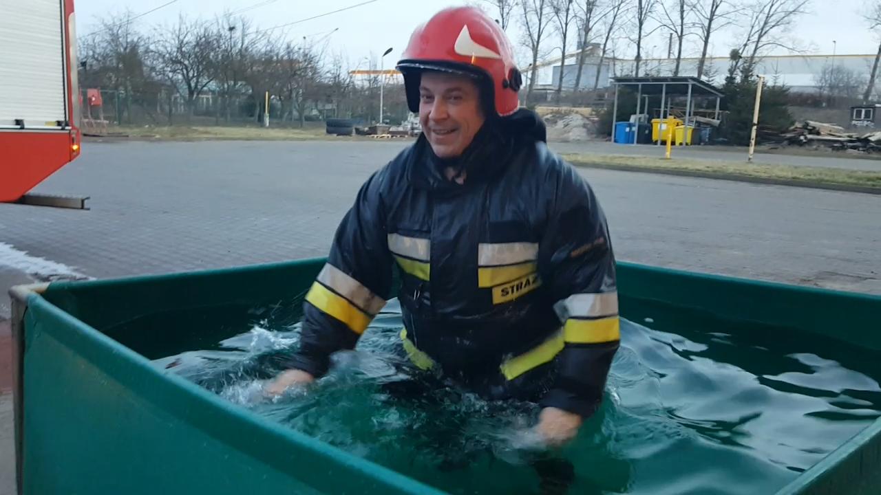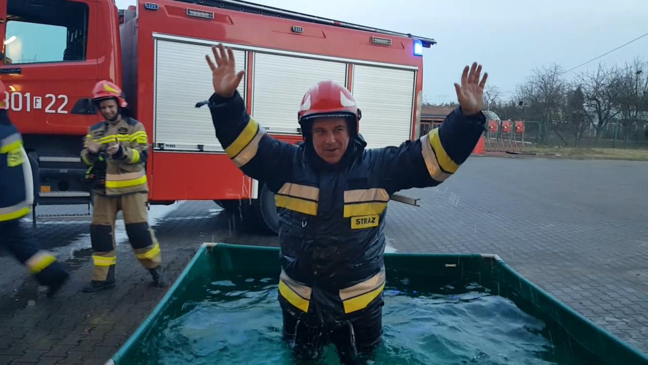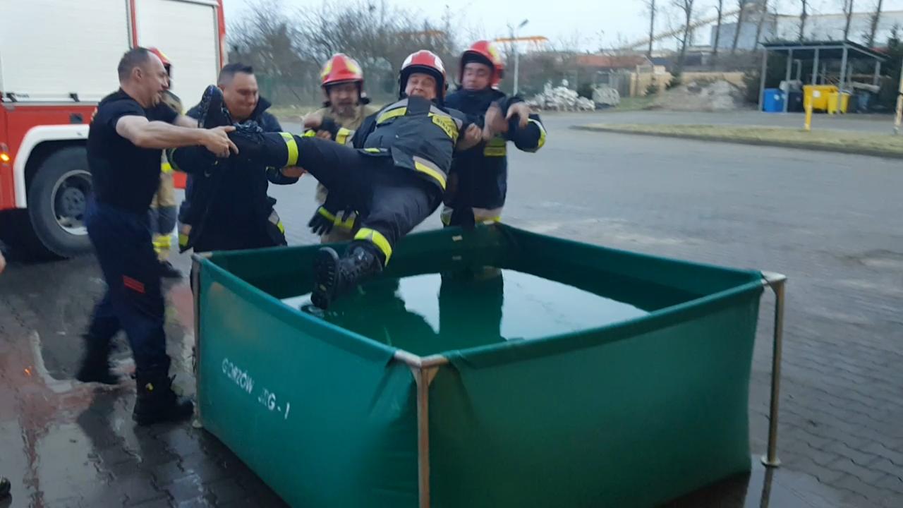 Na pożegnanie z pożarnictwem, tradycją gorzowskich jednostek jest "zimna kąpiel"... często nie jeden raz...