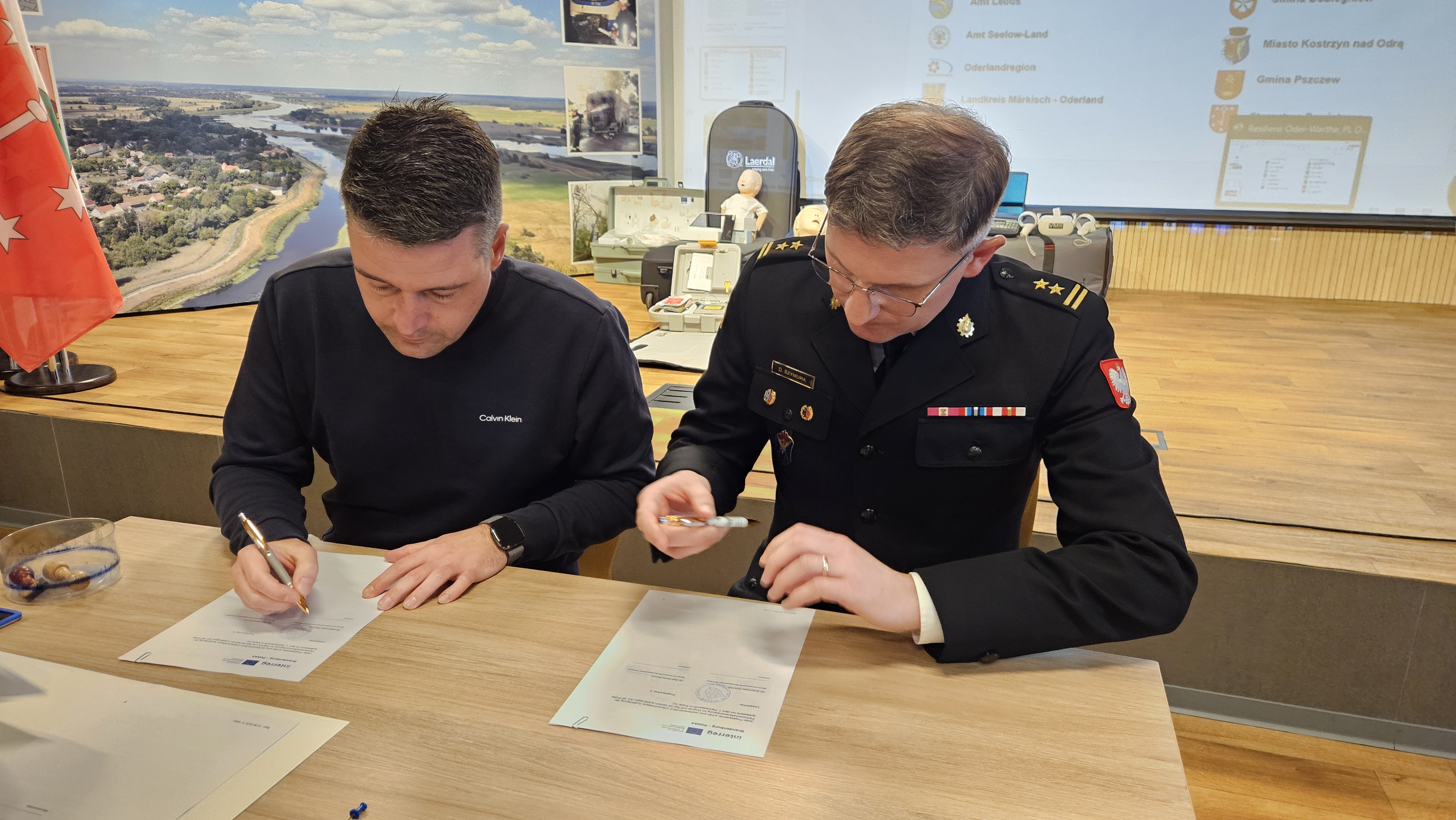 🤝 Podczas spotkania zostało podpisane porozumienie między Komendantem Miejskim Państwowej Straży Pożarnej w Gorzowie Wielkopolskim – bryg. Dariuszem Szymurą oraz Burmistrzem Miasta Seelow, Robertem Nitzem. To kolejny krok ku silniejszej współpracy transgranicznej!