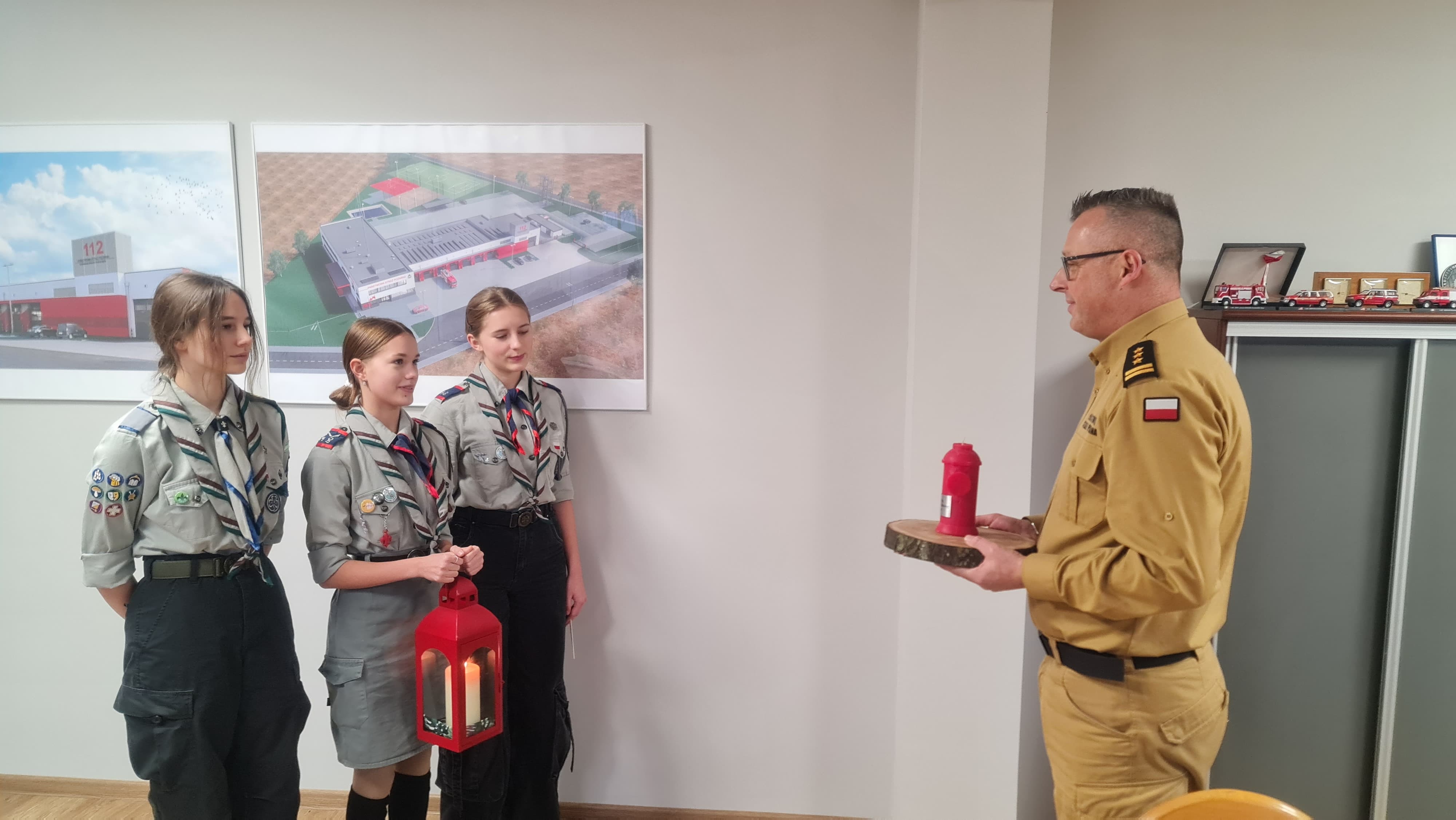Dziś o poranku, w gabinecie komendanta miejskiego, harcerki z zastępu wędrowniczego "Myszojelenie" z hufca ZHP Grudziądz uroczyście przyniosły Betlejemskie Światło Pokoju grudziądzkim strażakom. Druhny Wiktoria, Marcelina i Wiktoria przekazały ten symbol pokoju i braterstwa na ręce st. bryg. Roberta Gutowskiego. Wierzymy, że dzięki temu nadchodzące święta Bożego Narodzenia będą spokojne dla strażaków i co za tym idzie mieszkańców naszego regionu.