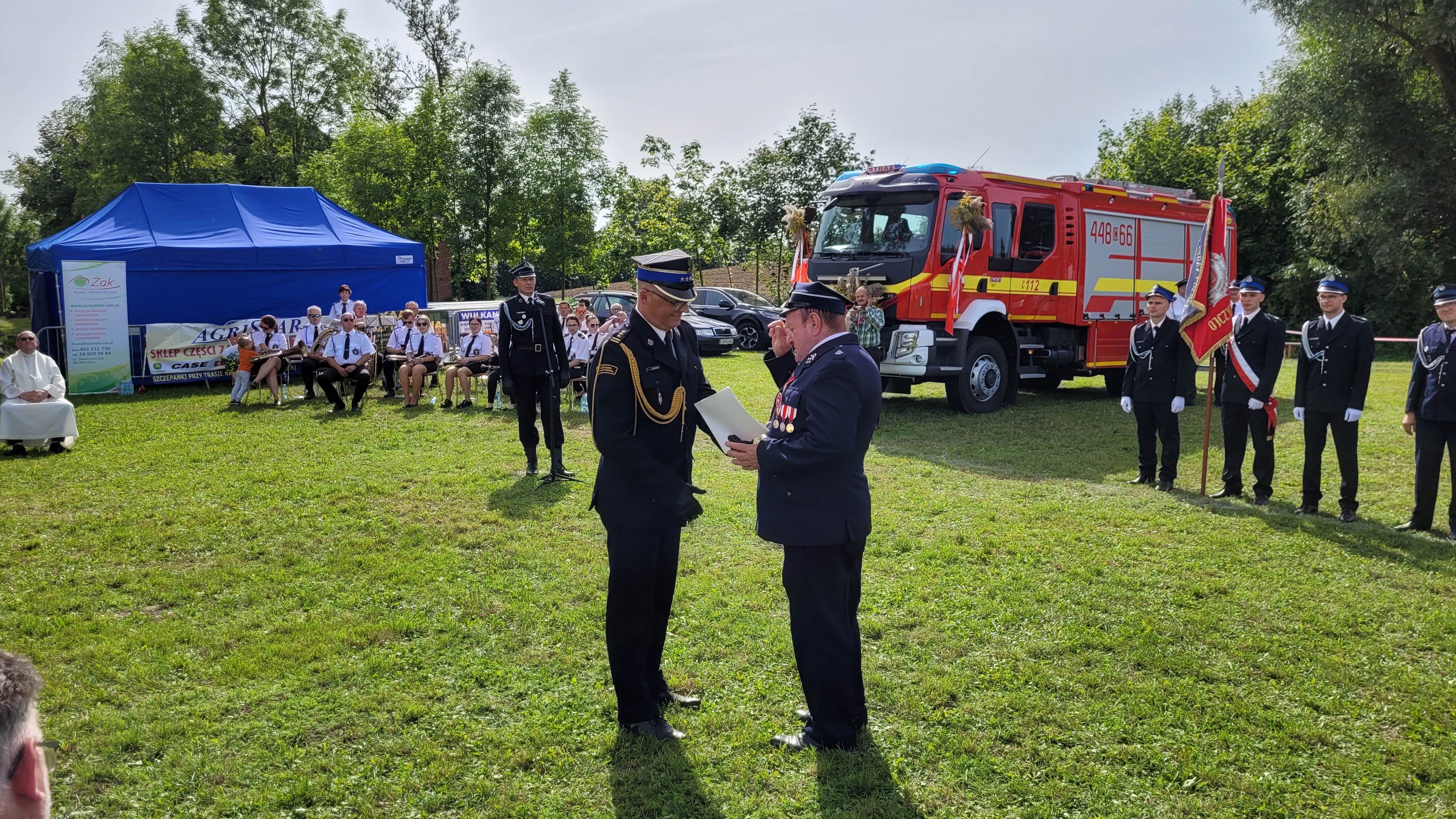 Dziś strażacy z OSP Szynwałd świętowali 100 - lecie istnienia swojej jednostki. W trakcie uroczystego apelu, który odbył się po mszy polowej, wręczone zostały medale i odznaczenia dla wyróżniających się strażaków. Ważnym punktem jubileuszu było poświęcenie i przekazanie nowego wozu bojowego GCBA 4,2/25 zbudowanego na podwoziu VOLVO. Aktu przekazania dokonali: Sekretarz Stanu w Ministerstwie Rolnictwa i Rozwoju Wsi Anna Gembicka, Wicewojewoda Kujawsko-Pomorski - Józef Ramlau, Zastępca Kujawsko-Pomorskiego Komendanta Wojewódzkiego PSP - st. bryg. Marek Rusoń oraz Burmistrz Miasta i Gminy Łasin - Rafał Kobylski. W uroczystości tej uczestniczyła także delegacja z naszej komendy na czele ze st. bryg. Robertem Gutowskim. Druhom z Szynwałdu gratulujemy pięknego jubileuszu życząc kolejnych 100 lat służby na rzecz lokalnego bezpieczeństwa.