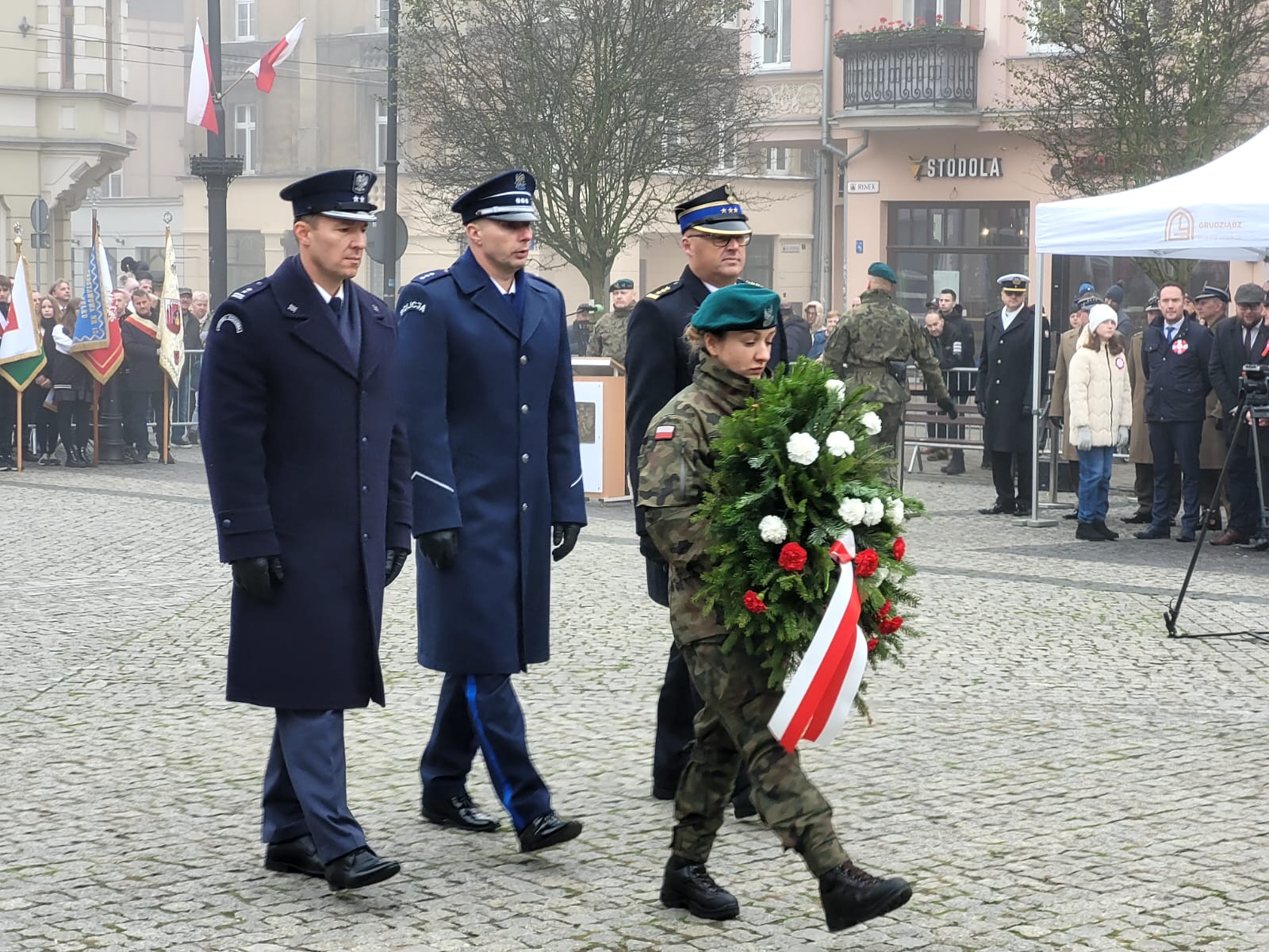 Miejskie obchody Narodowego Święta Niepodległości rozpoczęły się mszą św. w intencji Ojczyzny, następnie odbyła się uroczystość patriotyczna pod pomnikiem Żołnierza Polskiego, gdzie nastąpiło złożenie kwiatów przez organizatorów obchodów oraz zaproszonych gości. Z ramienia Państwowej Straży Pożarnej w uroczystościach brał udział Komendant Miejski PSP w Grudziądzu st. bryg. Robert Gutowski