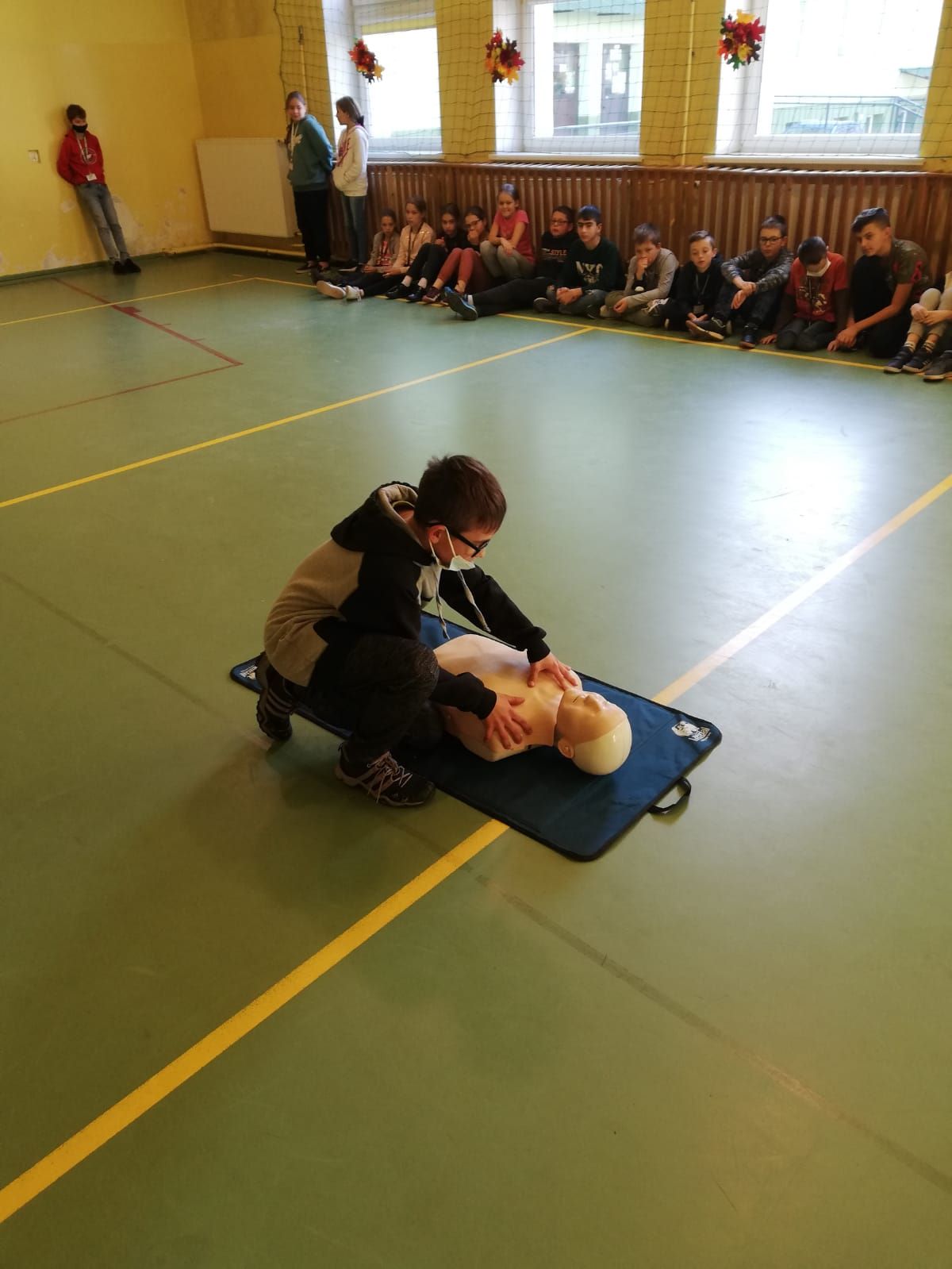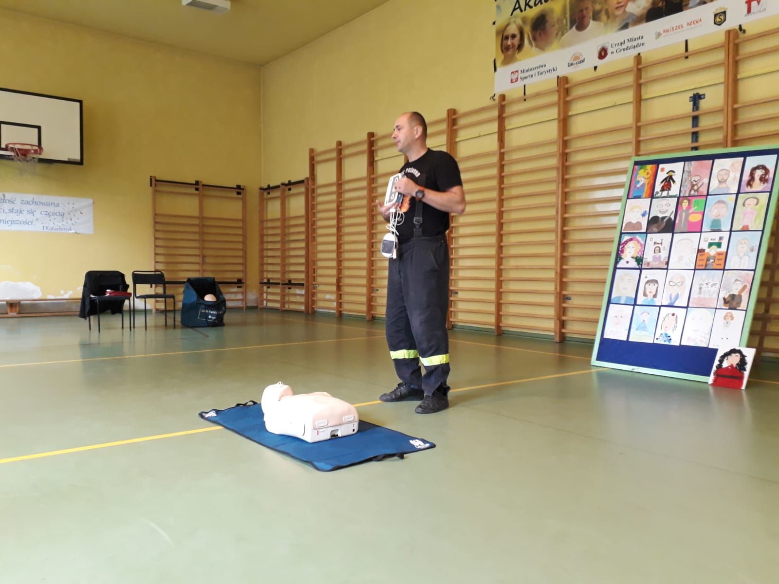 Dziś w Szkole Podstawowej nr 12 im. Synów Pułku w Grudziądzu funkcjonariusze KM PSP w Grudziądzu wspólnie z ratownikami medycznymi, policjantami i pracownikami UW w Bydgoszczy przeprowadzili szkolenie uczniów placówki w zakresie udzielania pierwszej pomocy przedmedycznej. W ramach obchodów Światowego Dnia Przywracania Czynności Serca, który przypada 16 października, dzieci miały okazję osobiście nauczyć się prawidłowego toku postepowania przy nagłym zatrzymaniu krążenia (NZK). W praktyce prowadziły też resuscytację krążeniowo – oddechową (RKO) na fantomach treningowych.