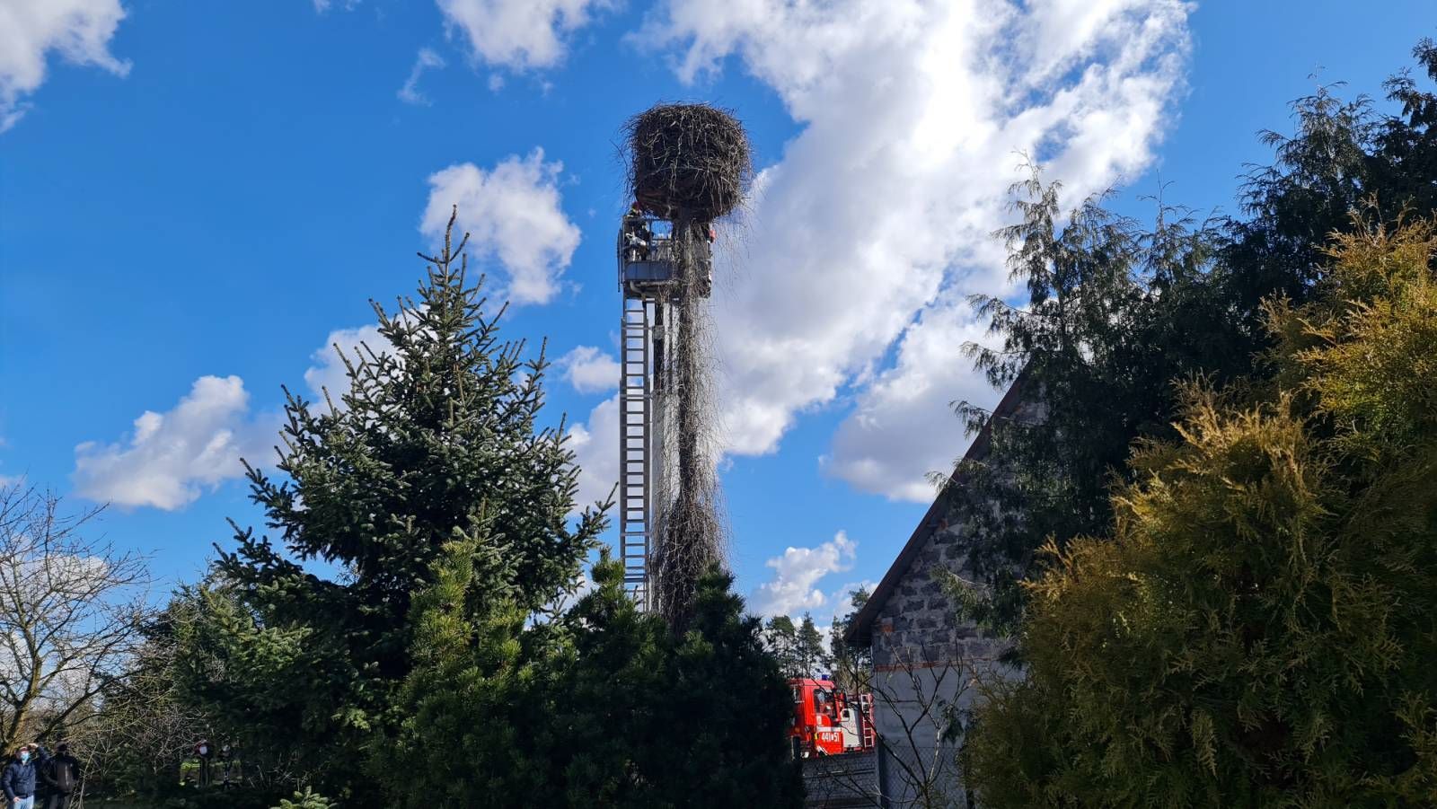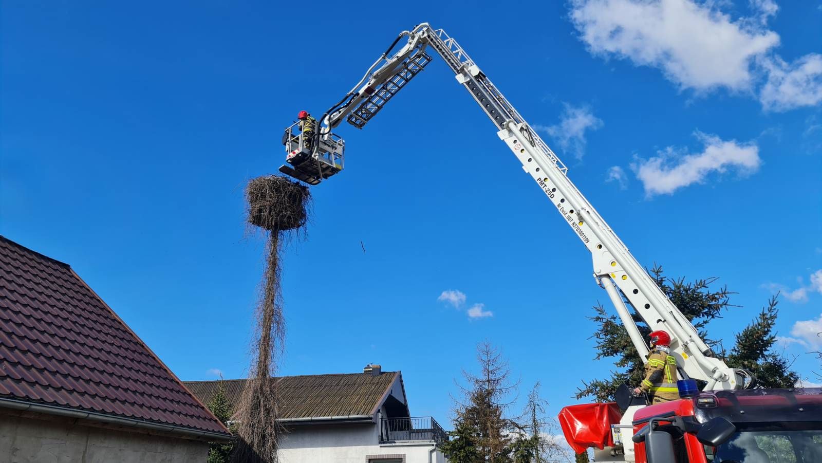 W poniedziałek, 22 marca b.r., strażacy z JRG nr 1 w Grudziądzu brali udział w dość nietypowych działaniach. Na jednej z posesji przy ulicy Dębowej „odchudzali” bocianie gniazdo znajdujące się na słupie. Rozbudowywana latami przez ptaki, misterna konstrukcja, osiągnęła takie rozmiary, że zagrażała utratą stabilności podpory znajdującej się w bezpośrednim sąsiedztwie dwóch budynków. Pod nadzorem pracowników Regionalnej Dyrekcji Ochrony Środowiska ratownicy rozebrali górną część gniazda znacznie odciążając niestabilny słup. Mamy nadzieję, ze bociany, które niedługo powinny wrócić w swe rodzinne strony, zaakceptują strażackie „poprawki” w ich lokum.