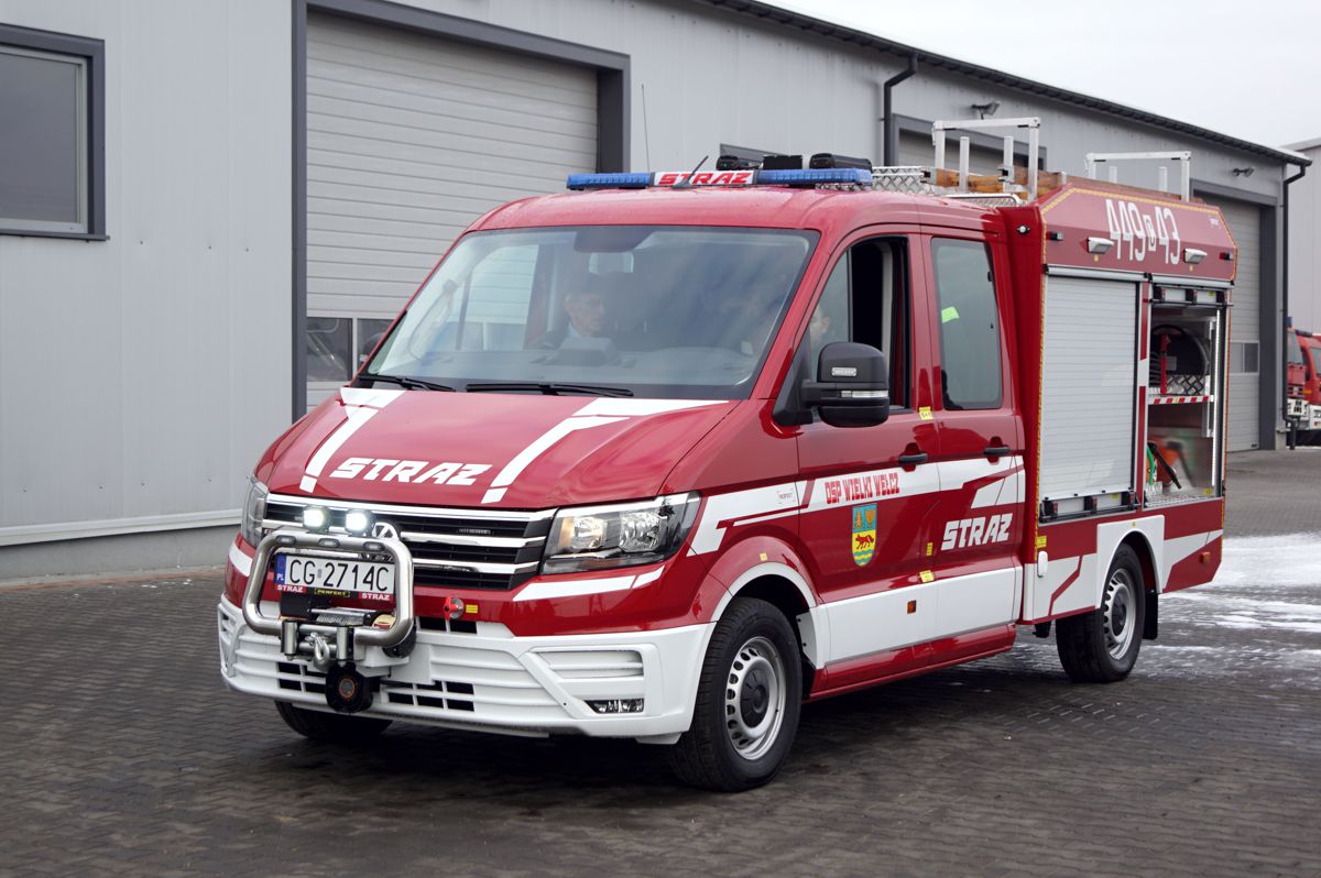 W poniedziałek, 21 grudnia 2020 r., przy remizie OSP w Wielkim Wełczu odbyło się uroczyste przekazanie nowego wozu bojowego. Ze względu na panujące obostrzenia i zakazy w tym doniosłym dla druhów wydarzeniu udział wzięła ograniczona ilość osób. Na zaproszenie gospodarzy zjawili przedstawiciele władz samorządowych, z wójtem gminy Grudziądz panem Andrzejem Rodziewiczem na czele, a także Zastępca Kujawsko-Pomorskiego Komendanta Wojewódzkiego PSP - st. bryg. Robert Wiśniewski i Komendant Miejski PSP w Grudziądzu - st. bryg. Robert Gutowski. Nowy lekki samochód gaśniczy z funkcją ratownictwa technicznego zbudowany na podwoziu Volkswagena Craftera 4x4 zastąpi wysłużony pojazd marki Lublin. Całkowity koszt zakupu auta wyniósł 259 tys. zł. z czego 256 410 zł stanowiła dotacja z Funduszu Sprawiedliwości, a wkład własny Gminy Grudziądz wyniósł 2 590 zł. Druhom z OSP w Wielkim Wełczu, jak również władzom gminnym gratulujemy kolejnego sukcesu w dążeniu do odnowienia parku maszynowego jednostek OSP, a w trakcie użytkowania nowego wozu tradycyjnie życzymy tyle samo szczęśliwych powrotów, co wyjazdów do akcji.