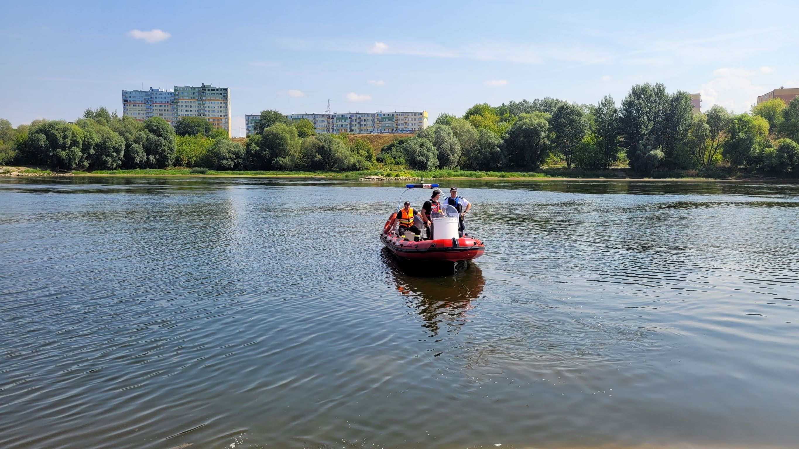 Dziś w południe grudziądzcy strażacy wspólnie z funkcjonariuszem Komendy Miejskiej Policji w Grudziądzu patrolowali nurt i brzegi Wisły. Działania te miały charakter prewencyjny. Żadnych zagrożeń ani niebezpiecznych zachowań nie stwierdzono. Dodatkowo funkcjonariusze ćwiczyli nawigację na szlaku wodnym, przy niskim stanie wody. Umiejętność ta jest niezbędna w trakcie działań ratowniczych.