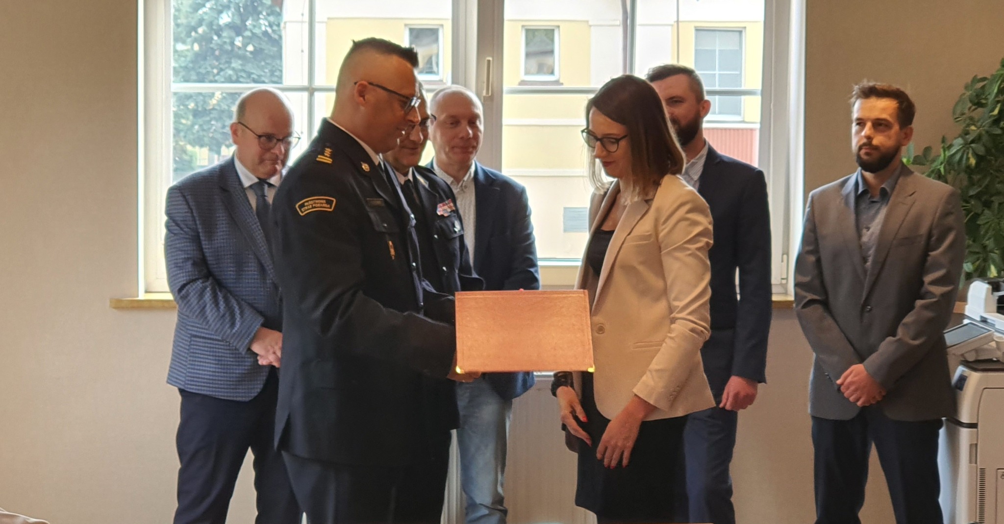 W trakcie spotkania st. bryg. Robert Gutowski złożył podziękowania pracownikom Miejskiego Przedsiębiorstwa Gospodarki Nieruchomościami i Grudziądzkiego Parku Przemysłowego za merytoryczną i nieocenioną pomoc przy realizacji przetargu.