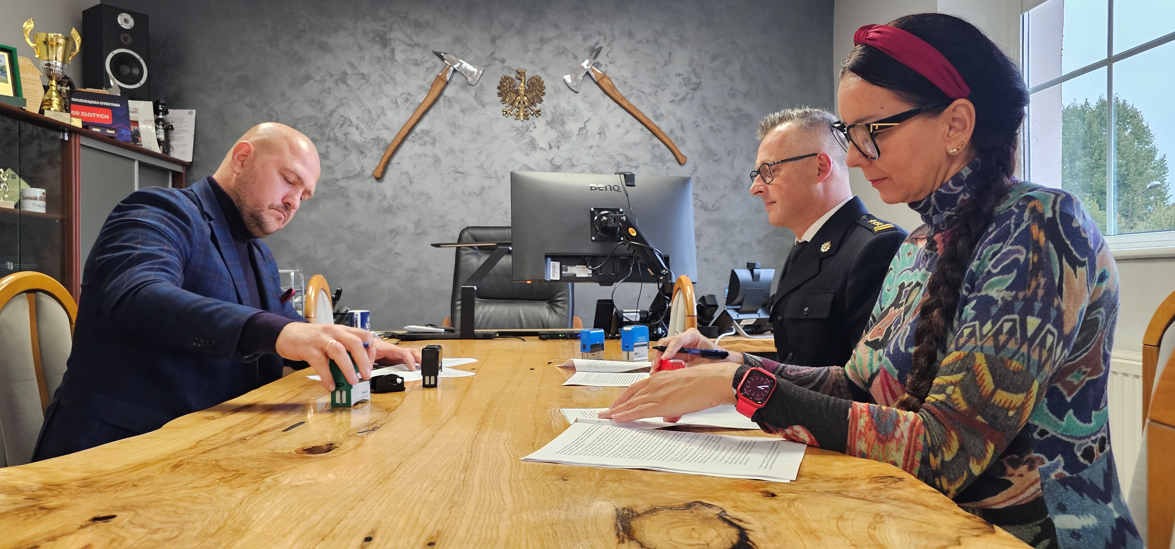 Z samego rana w gabinecie Komendanta Miejskiego PSP w Grudziądzu doszło do zawarcia umowy na wykonanie kolejnych prac na terenie budowy naszego nowego obiektu przy ul. Witosa w Grudziądzu. Podpisy na dokumencie złożyli: