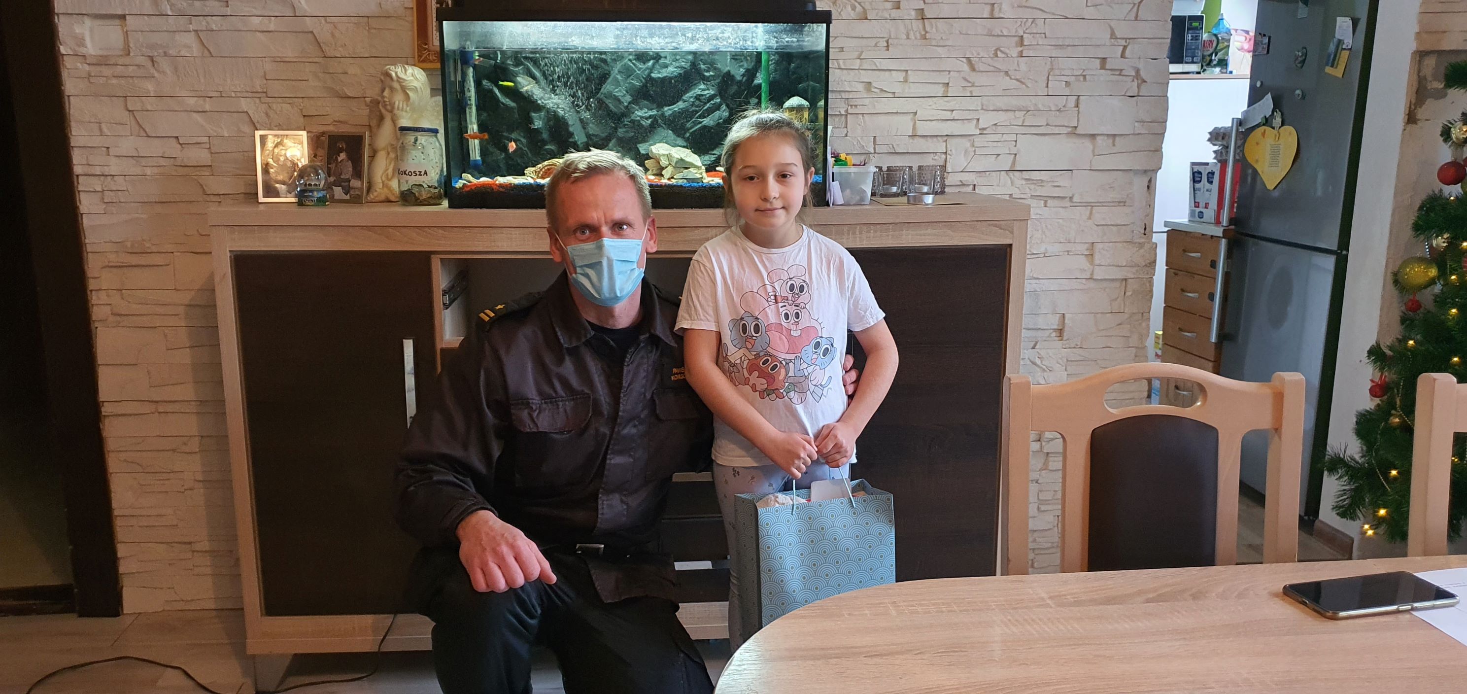 Dziś dowódca JRG 1 w Grudziądzu odwiedził w domu i złożył podziękowania małej, cichej bohaterce poniedziałkowego wieczoru w Grudziądzu. 8-letnia Joanna, spacerując ze swym wujkiem Kamilem, zauważyła oznaki pożaru mieszkania na 2 piętrze w jednej z kamienic. Mała dziewczynka przekonała krewnego, że to nie jest zwykły „dym z komina” jaki często pojawia się nad tą częścią miasta wieczorową porą. 18-letni mężczyzna wszczął alarm pukając do okien mieszkań na parterze. Po znalezieniu, znajdującego się w bramie, wejścia na klatkę schodową kontynuował swe działania wewnątrz obiektu. Z klatki schodowej sprowadził lokatorkę mieszkania, w którym wybuchł pożar. Do akcji włączyli się także inni ludzie. Ktoś już dzwonił na „112”, ktoś dalej alarmował mieszkańców aby opuścili lokale. Za chwilę na miejscu pojawiły się pierwsze zastępy gaśnicze i rozpoczęła się strażacka część akcji. Dzięki zaangażowaniu 11 zastępów z dwóch grudziądzkich JRG i OSP z terenu miasta i gminy Grudziądz szalejący żywioł udało się szybko zlokalizować nie dopuszczając do jego rozprzestrzenienia na inne obiekty (zwarta zabudowa starego miasta). Choć pożar wyglądał bardzo groźnie, a straty materialne okazały się znaczne, to w wyniku tego zdarzenia niegroźnie poszkodowana została jedna osoba.