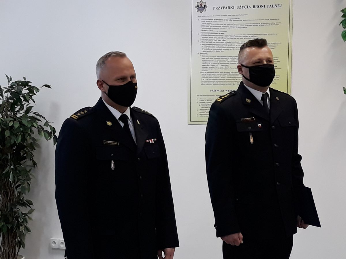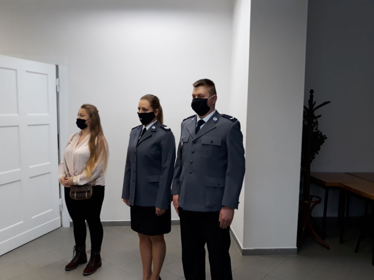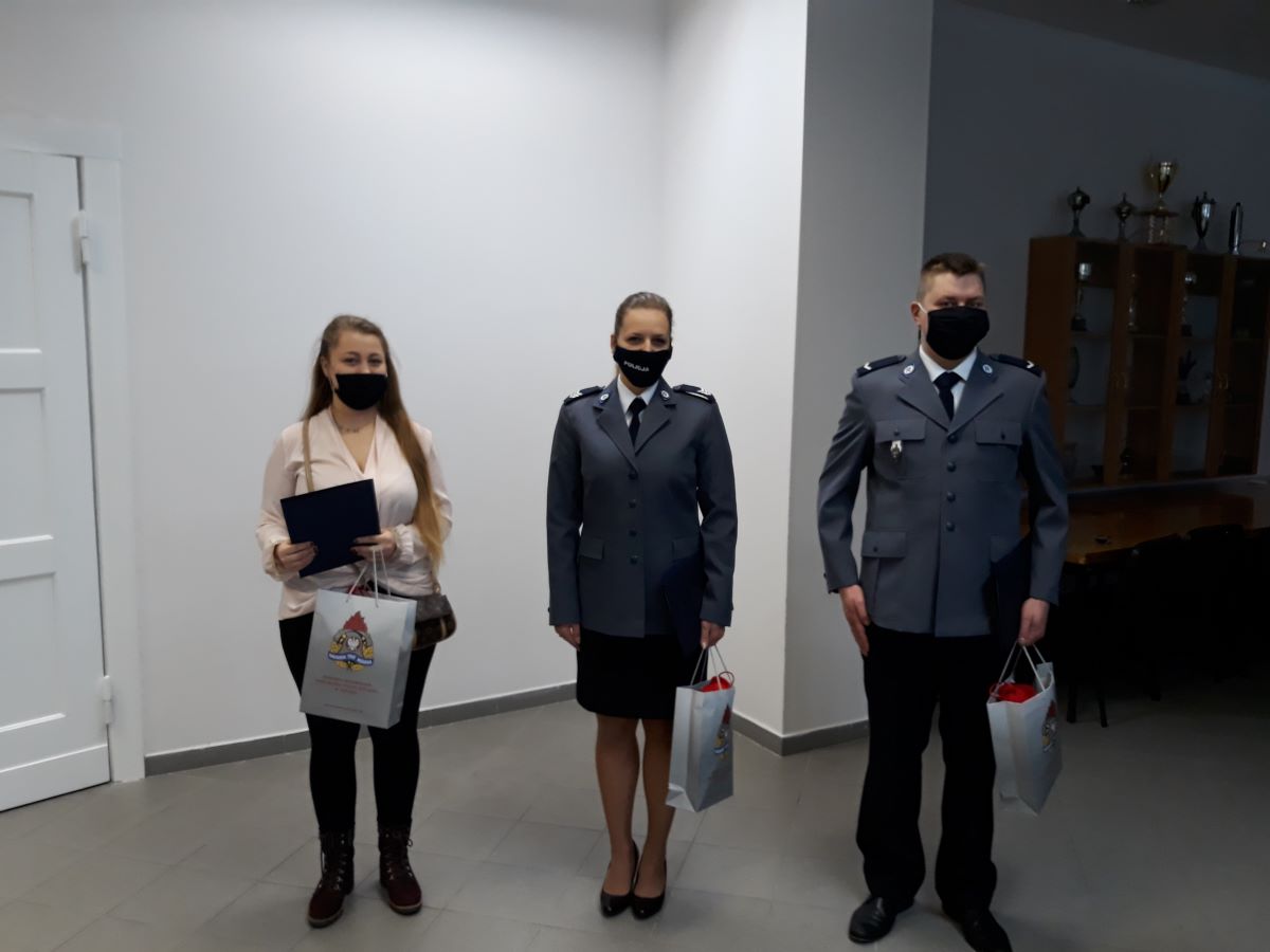 W poniedziałek, 4 stycznia 2021 r., w Komendzie Miejskiej Policji w Grudziądzu wręczono podziękowania dwojgu funkcjonariuszom, oraz pracownicy stacji paliw za godną naśladowania postawę podczas pożaru auta. Gratulacje złożyli: Komendant Miejski Policji w Grudziądzu - insp. Marcin Zaleśkiewicz, Zastępca Kujawsko – Pomorskiego Komendanta Wojewódzkiego PSP - st. bryg. Robert Wiśniewski, oraz Komendant Miejski PSP w Grudziądzu - st. bryg. Robert Gutowski. Cała wyróżniona trójka otrzymała również drobne upominki.