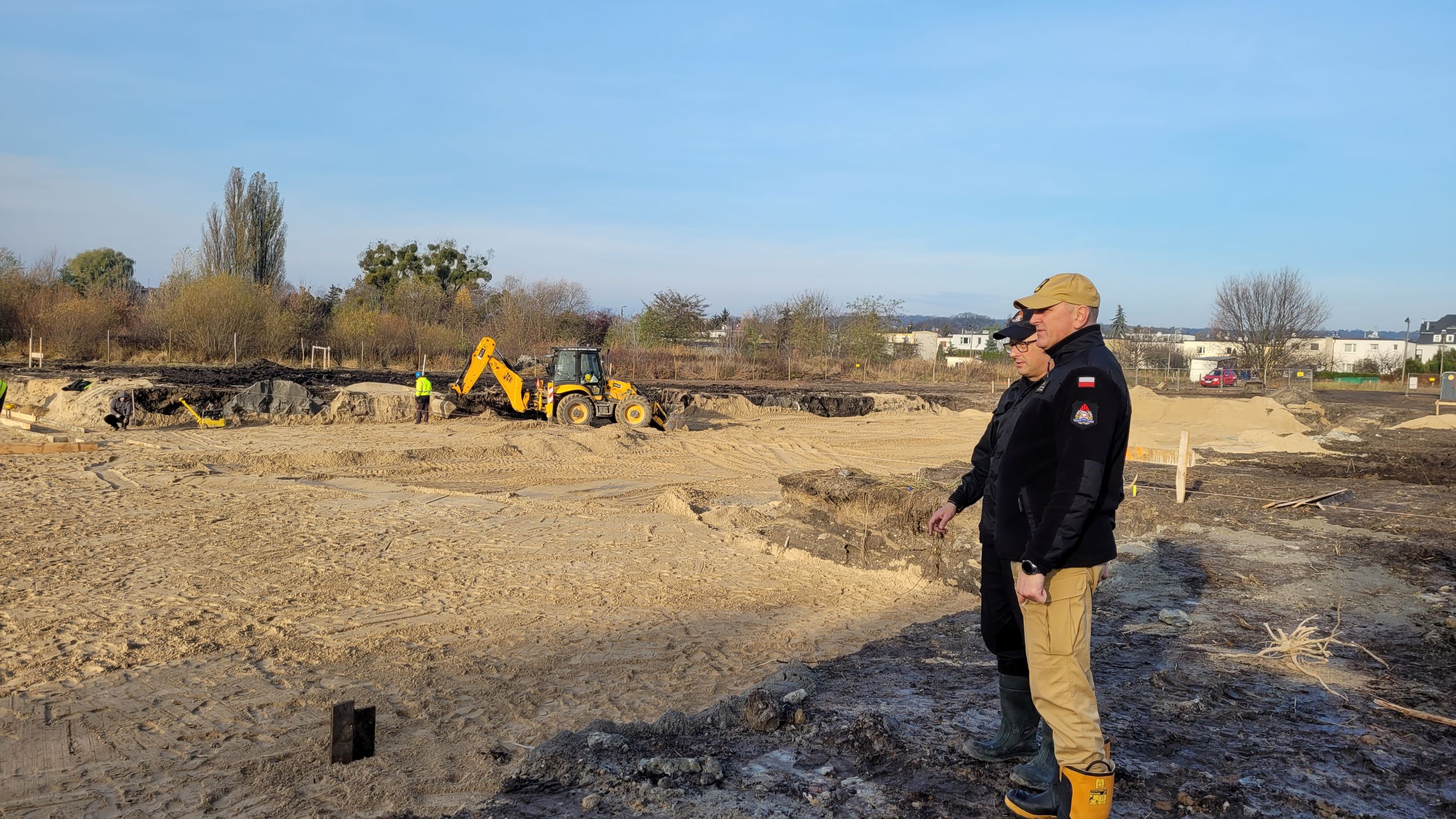 Od 17 października trwają prace przy budowie nowego obiektu KM PSP w Grudziądzu wraz z Jednostką Ratowniczo–Gaśniczą nr 1. Do tej pory powstał wykop pod nowy gmach, z którego wywieziono wierzchnią warstwę ziemi. Wykonano też stabilizację rodzimego gruntu. W tej chwili trwają prace przygotowawcze do wylania ław fundamentowych. Dziś na placu budowy postęp prac oceniał zastępca Kujawsko-Pomorskiego Komendanta Wojewódzkiego st. bryg. Sławomir Herbowski wspólnie ze st. bryg. Robertem Gutowskim.