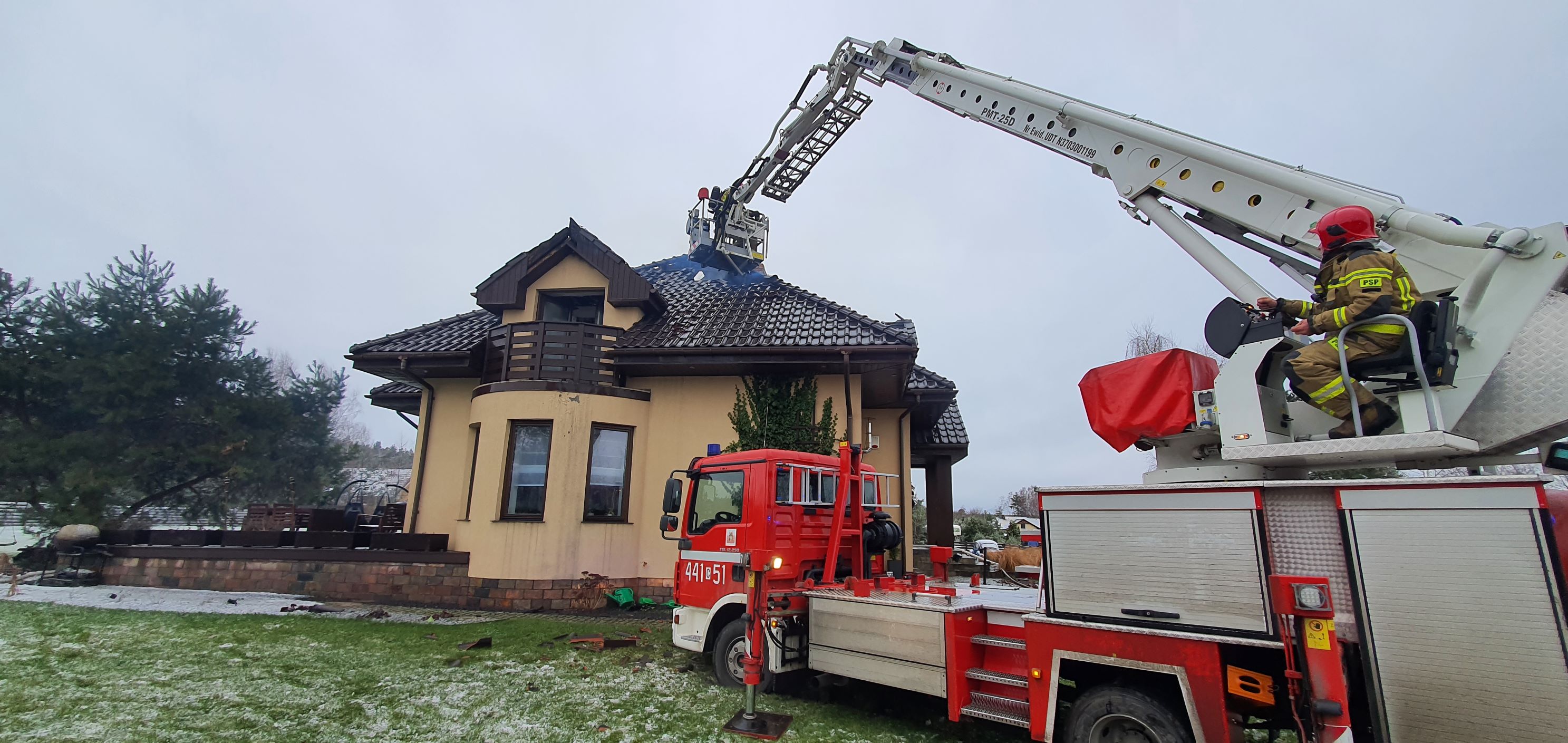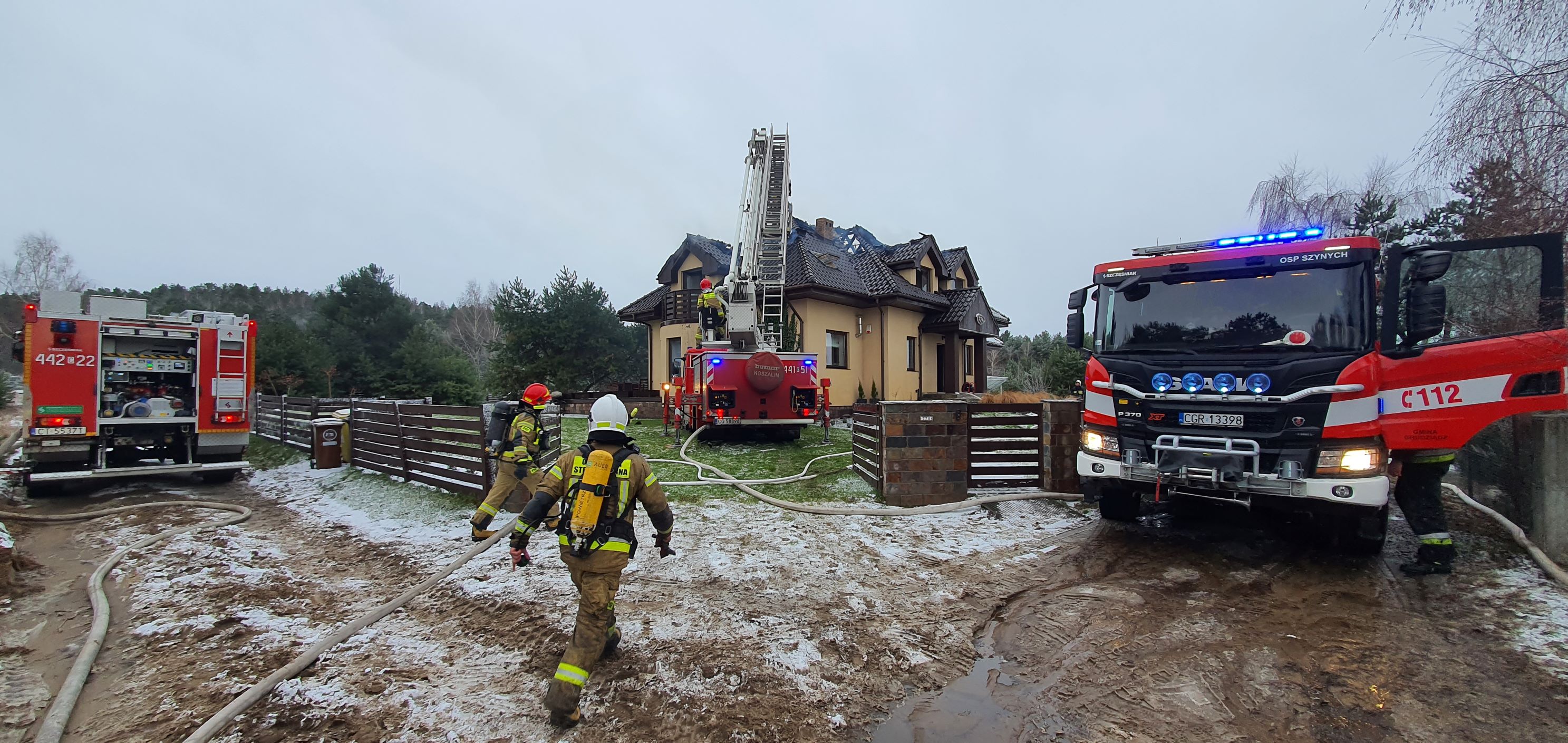 Dziś rano, w trakcie burzy śnieżnej z wyładowaniami atmosferycznymi, Stanowisko Kierowania KM PSP w Grudziądzu otrzymało zgłoszenie o pożarze domu jednorodzinnego w Wałdowie Szlacheckim. Pierwsze zastępy przybyłe na miejsce zastały płomienie i dym wydobywające spod dachówek. Pożar dynamicznie rozprzestrzeniał się po drewnianej więźbie dachowej. Mieszkańcy obiektu ewakuowali się wcześniej we własnym zakresie. Aby ugasić płomienie i zlikwidować zarzewia ognia konieczne były prace rozbiórkowe. W trwającej 3 godziny akcji brało udział 8 zastępów: z dwóch JRG w Grudziądzu, OSP Ruda i OSP Szynych. W tej chwili dom nie nadaje się do użytkowania bo straty materialne są ogromne. Potrzebna będzie pomoc dla rodziny pozbawionej lokum w środku zimy.