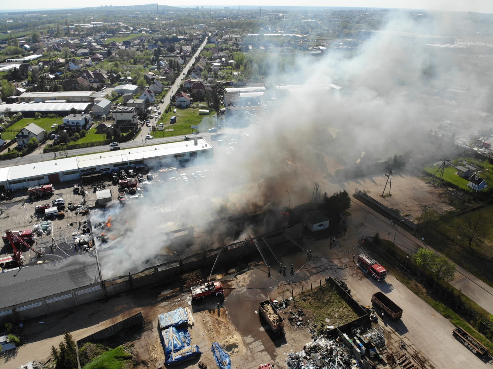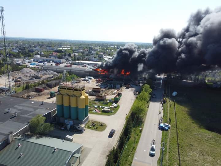 Pożar w firmie zajmującej się recyklingiem odpadów