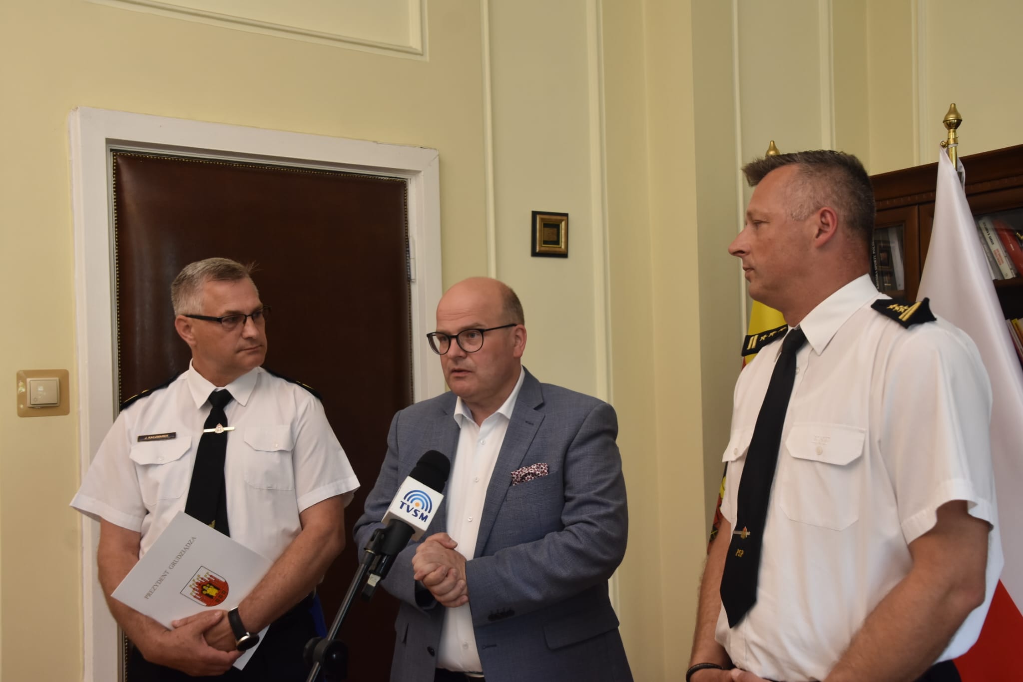 W dniu wczorajszym 05.07.2022r w Urzędzie Miejskim w Grudziądzu wręczono pozwolenie na budowę nowej siedziby Komendy Miejskiej PSP i przyległej jednostki ratowniczo-gaśniczej nr 1 w Grudziądzu. Prezydent miasta Maciej Glamowski przekazał pozwolenie na budowę na ręce nadbrygadiera Jacka Kaczmarka, Kujawsko-Pomorskiego Komendanta Wojewódzkiego Państwowej Straży Pożarnej i st. brygadiera Roberta Gutowskiego Komendanta Miejskiego Państwowej Straży Pożarnej. Oznacza to, że cała dokumentacja jest już gotowa i można przejść do dalszej części realizacji inwestycji.