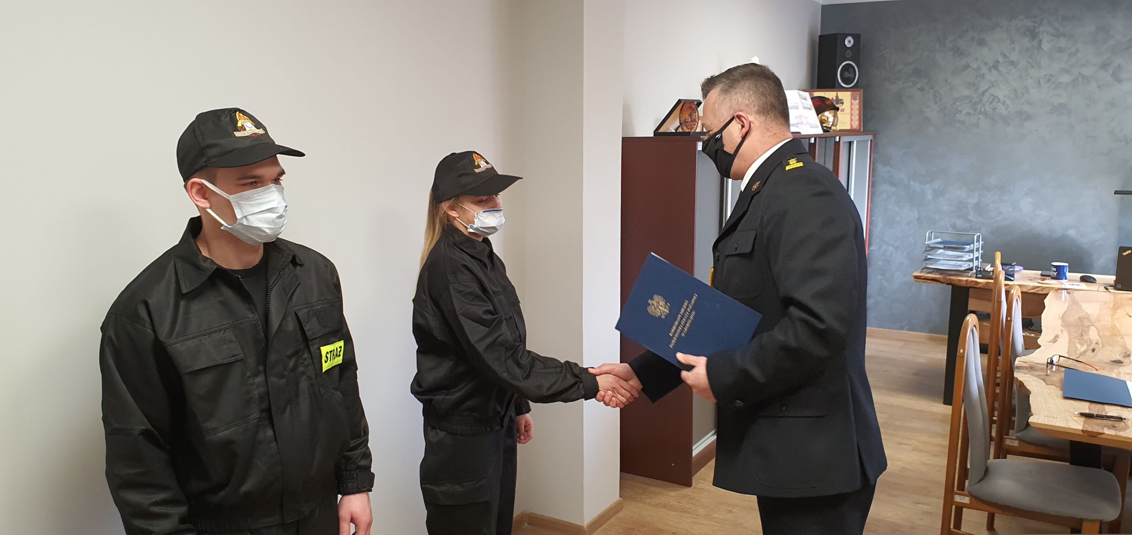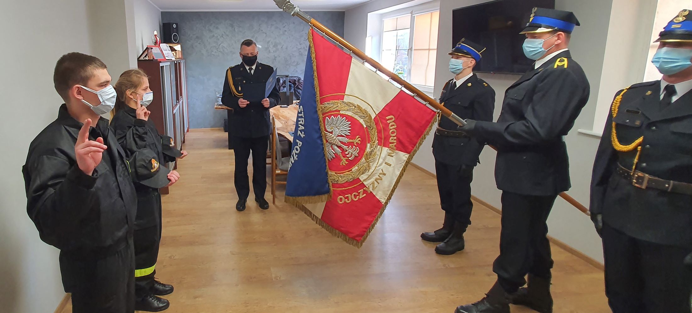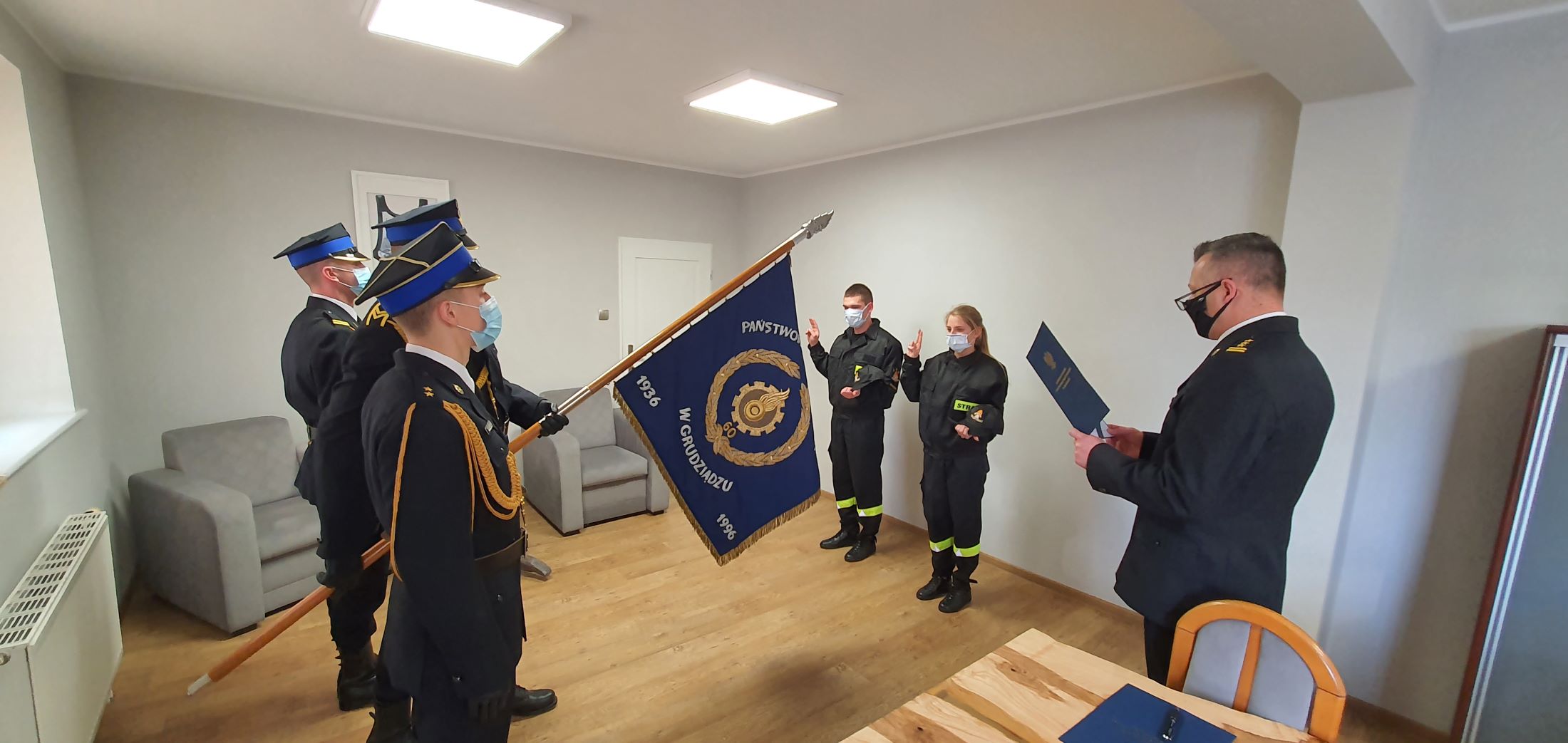 W poniedziałek, 1 lutego 2021 r., w gabinecie Komendanta Miejskiego PSP w Grudziądzu, uroczyste ślubowanie złożyło dwoje nowoprzyjętych funkcjonariuszy – str. Dorota Stucka i str. Miłosz Marszałek. Powtarzając słowa roty, za st. bryg. Robertem Gutowskim, oboje ślubowali na sztandar grudziądzkiej komendy „Być ofiarnym i mężnym w ratowaniu zagrożonego życia ludzkiego i wszelkiego mienia - nawet z narażeniem życia.”