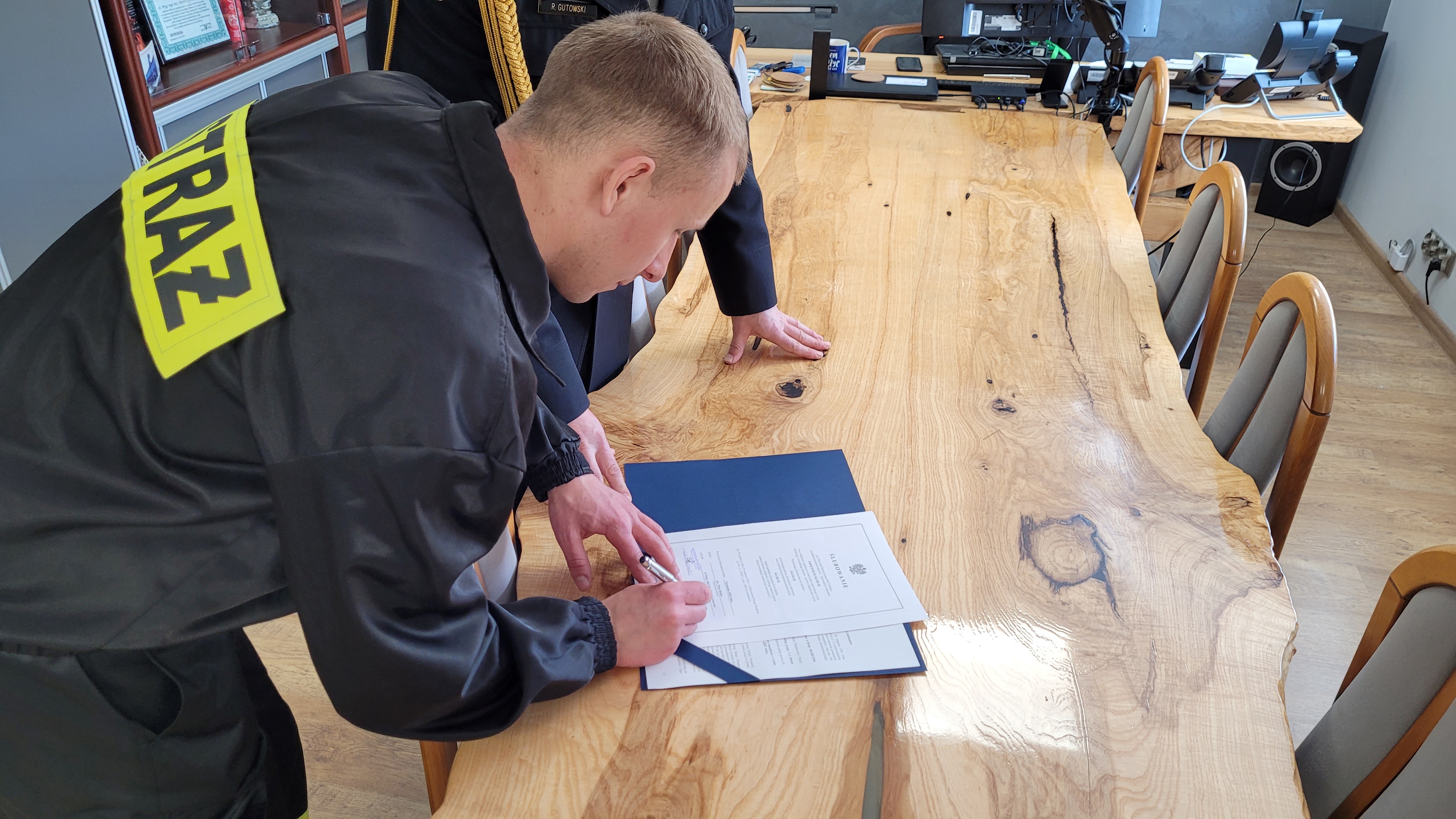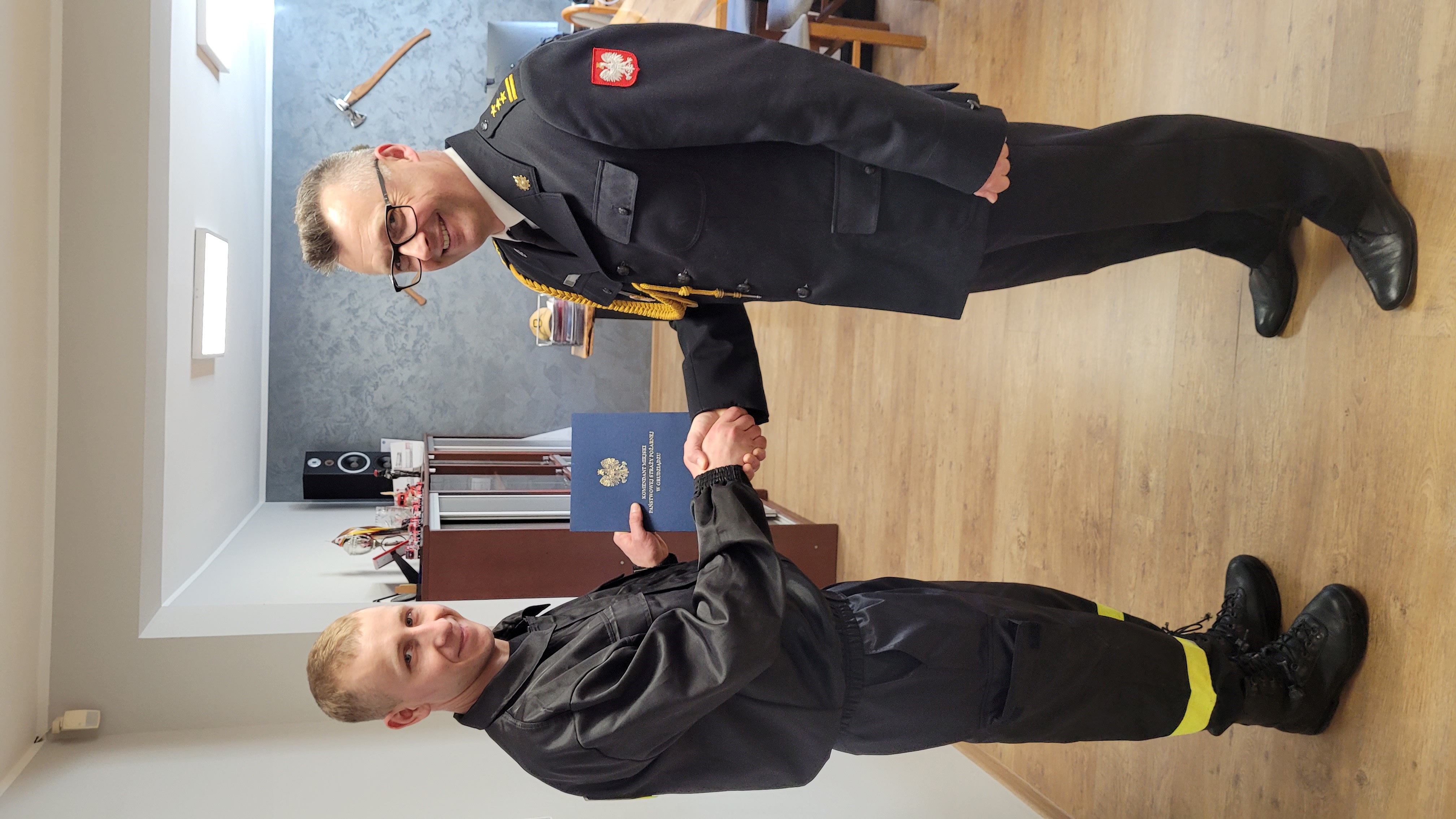 Dziś w gabinecie Komendanta Miejskiego PSP w Grudziądzu odbyło się ślubowanie funkcjonariusza, który właśnie rozpoczął służbę w naszej komendzie. Rotę ślubowania str. Piotr Bollin złożył na sztandar grudziądzkiej komendy w obecności st. bryg. Roberta Gutowskiego. Funkcjonariusz zasili szeregi JRG nr 1 w Grudziądzu. Nowemu koledze życzymy zadowolenia z pełnienia służby w PSP i tradycyjnie tyle samo szczęśliwych powrotów co wyjazdów do akcji.