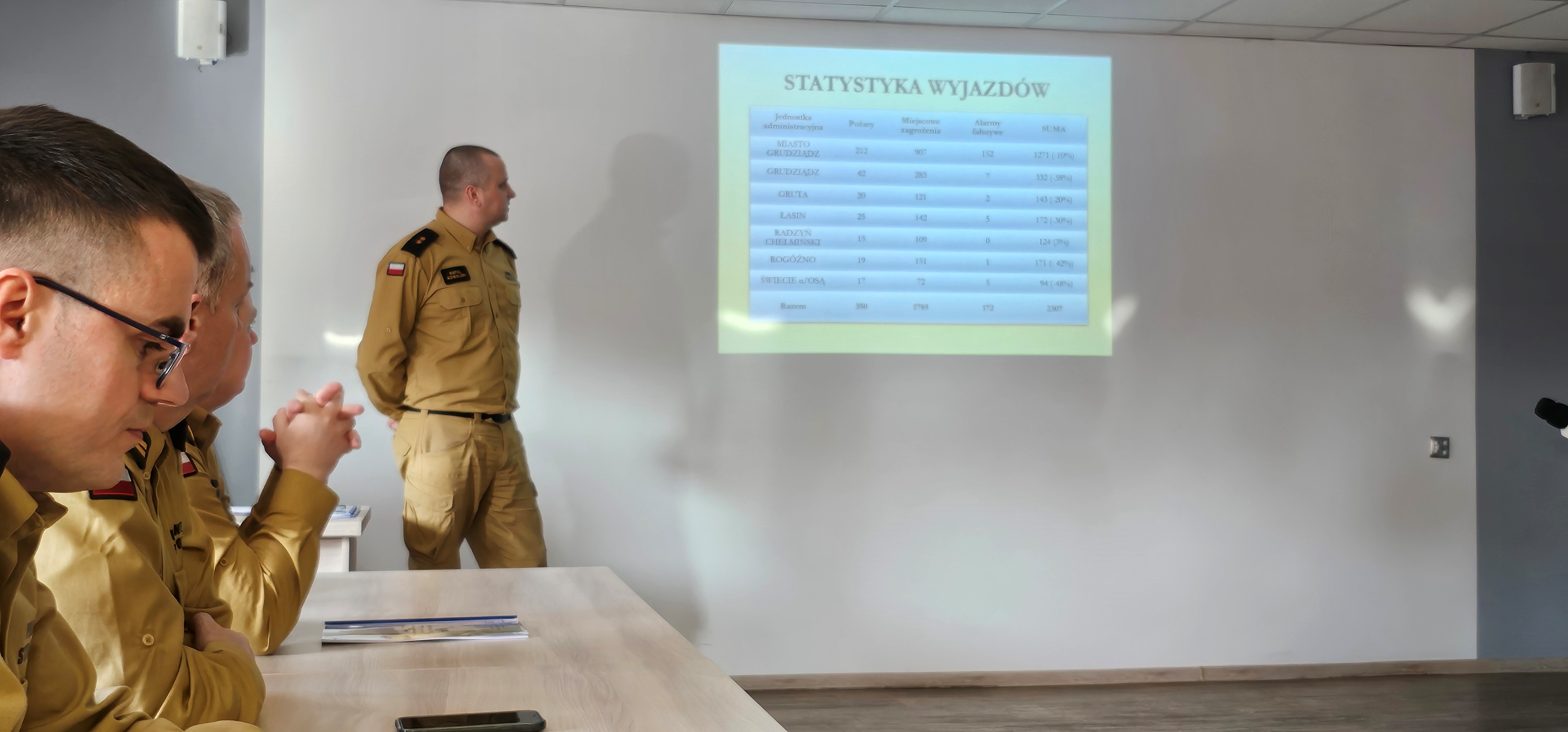 W trakcie swych przemówień zarówno st. bryg. Robert Gutowski jak i st. bryg. Sławomir Herbowski podziękowali samorządowcom za czynne wspieranie wszelkich inicjatyw podnoszących poziom bezpieczeństwa w naszym regionie. Dodatkowo p.o. komendanta wojewódzkiego przedstawił dane z poziomu województwa. Udział w naradzie był także okazją do spotkania komendanta z funkcjonariuszami III zmiany służbowej JRG nr 2 w Grudziądzu.