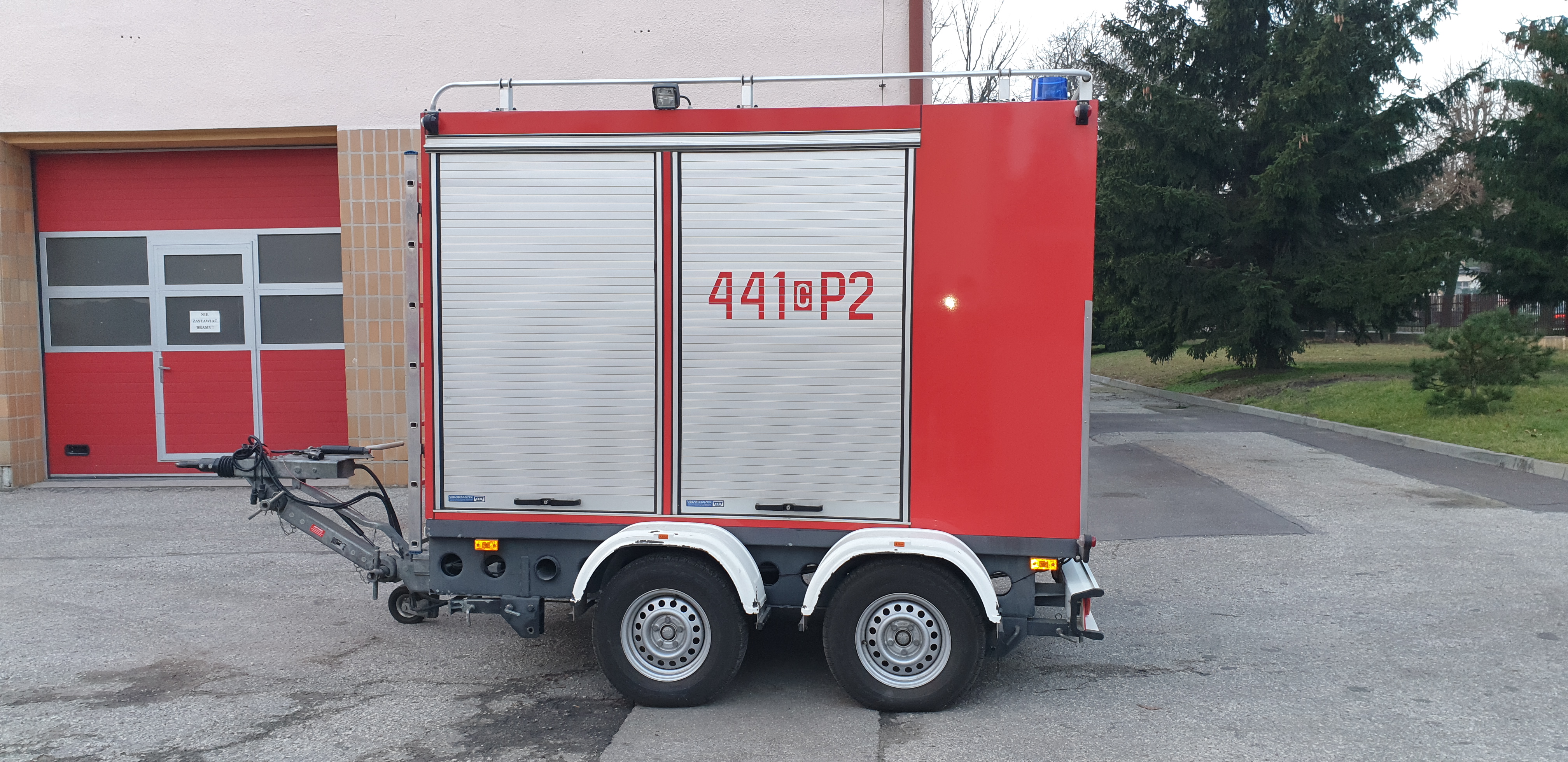 9. Przyczepa gaśnicza, proszkowa - GPR-1000/ABC z 2005 roku.