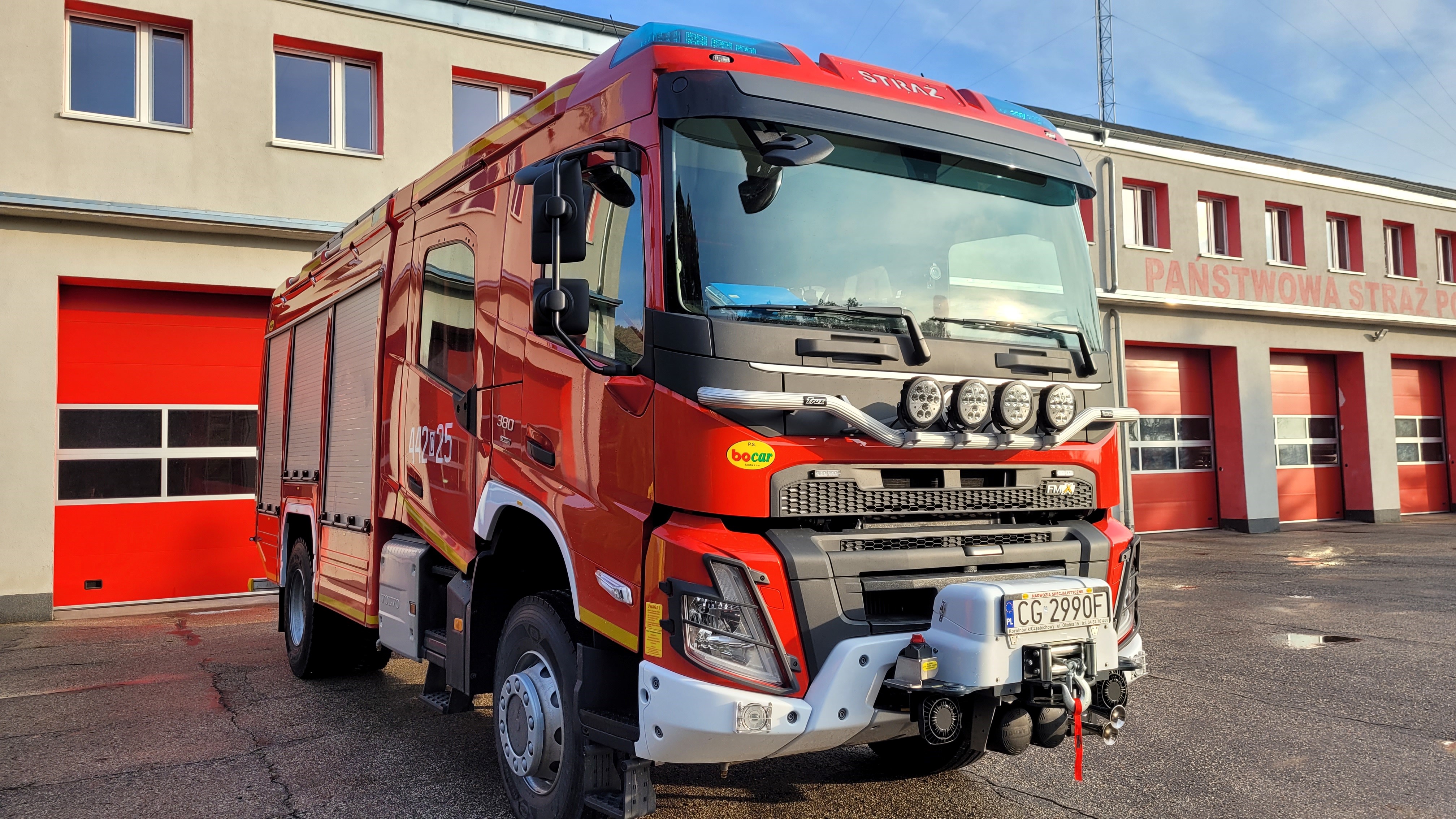 4. GCBA 5/32/2/4 – samochód gaśniczy, ciężki ze zbiornikiem na wodę i autopompą na podwoziu VOLVO FMX 380 z 2022 roku.