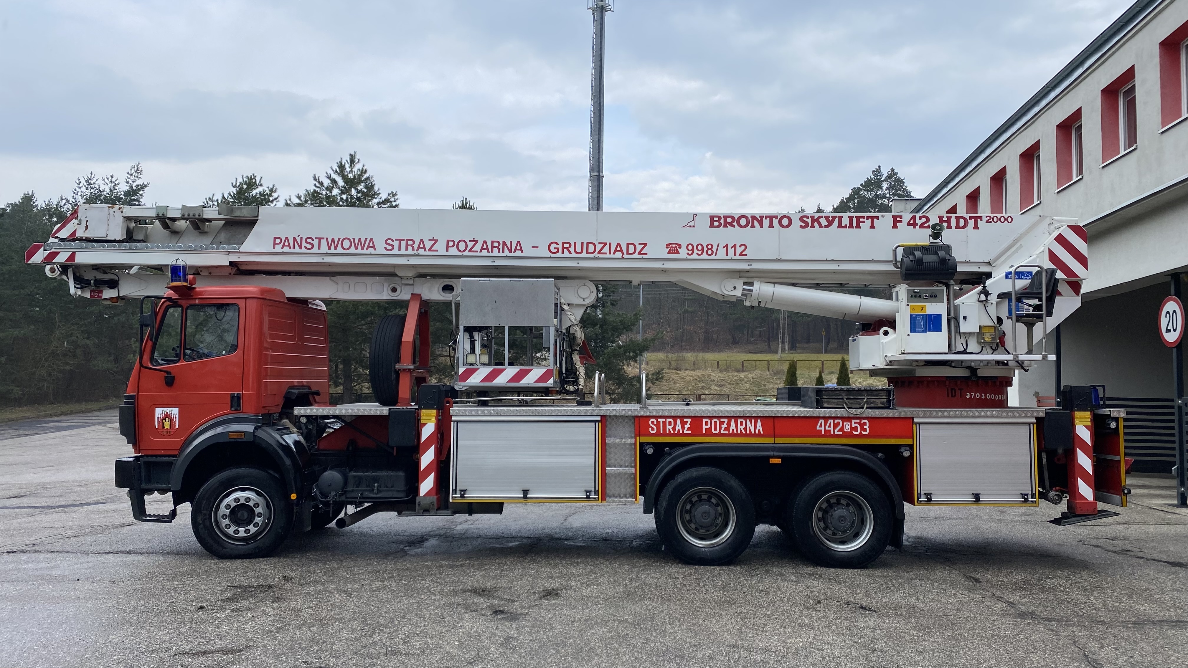 5. SCHD 42 – samochód ciężki, specjalny z podnośnikiem hydraulicznym na podwoziu Mercedes BRONTO z 1996 roku.