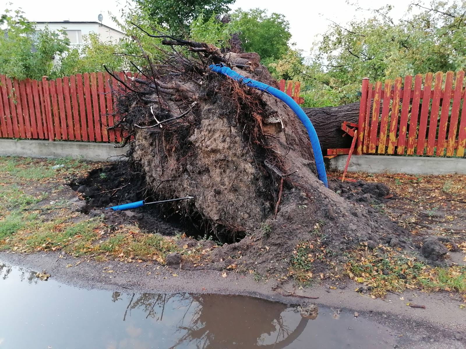 Wczoraj nad Grudziądzem przetoczyła się gwałtowna burza, której towarzyszył porywisty wiatr oraz intensywny opad deszczu. Żywioł wyrywał z korzeniami wiekowe drzewa, a niektóre ulice zmieniły się w rwące potoki lub tymczasowe jeziora. Do poniedziałkowego poranka na terenie działania naszej komendy zanotowaliśmy 43 interwencje dotyczące usuwania skutków nawałnicy. 36 z nich miało miejsce na terenie miasta – pozostałe na terenie powiatu ziemskiego. Ponad 20 razy usuwaliśmy uszkodzone drzewa i konary. 18 interwencji polegało na usuwaniu wody opadowej z zalanych obiektów i pomieszczeń. Najpoważniejsze zdarzenia dotyczyły częściowo uszkodzonych dachów na dwóch obiektach mieszkalnych oraz zerwanej, przez upadające drzewo, napowietrznej linii energetycznej. Na szczęście we wszystkich tych zdarzeniach nie zanotowaliśmy osób poszkodowanych. W usuwaniu skutków burzy brali udział strażacy z grudziądzkich JRG oraz z 9 jednostek OSP z terenu miasta i powiatu grudziądzkiego.