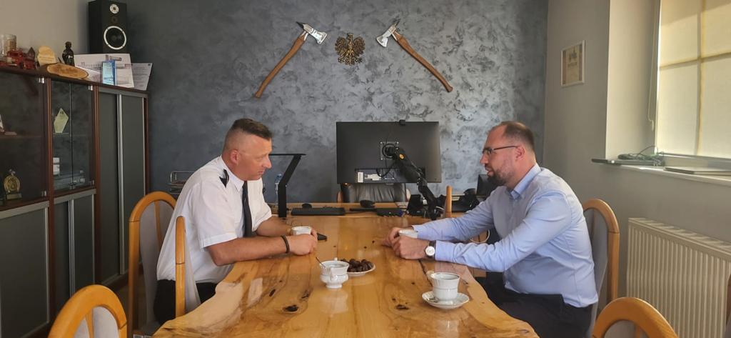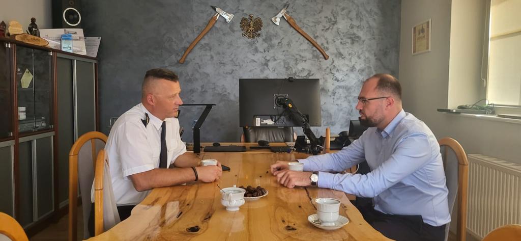 Dziś naszą komendę odwiedził Prezes Rządowego Centrum Legislacji Krzysztof Szczucki. W trakcie krótkiej wizyty roboczej st. bryg. Robert Gutowski rozmawiał z naszym gościem o funkcjonowaniu Krajowego Systemu Ratowniczo-Gaśniczego na poziomie powiatu, a także o sprawach bieżących. Komendant przedstawił obecny stan budowy naszej nowej siedziby oraz postępy jakie w tym zakresie zostały poczynione od ostatniego spotkania z ministrem.