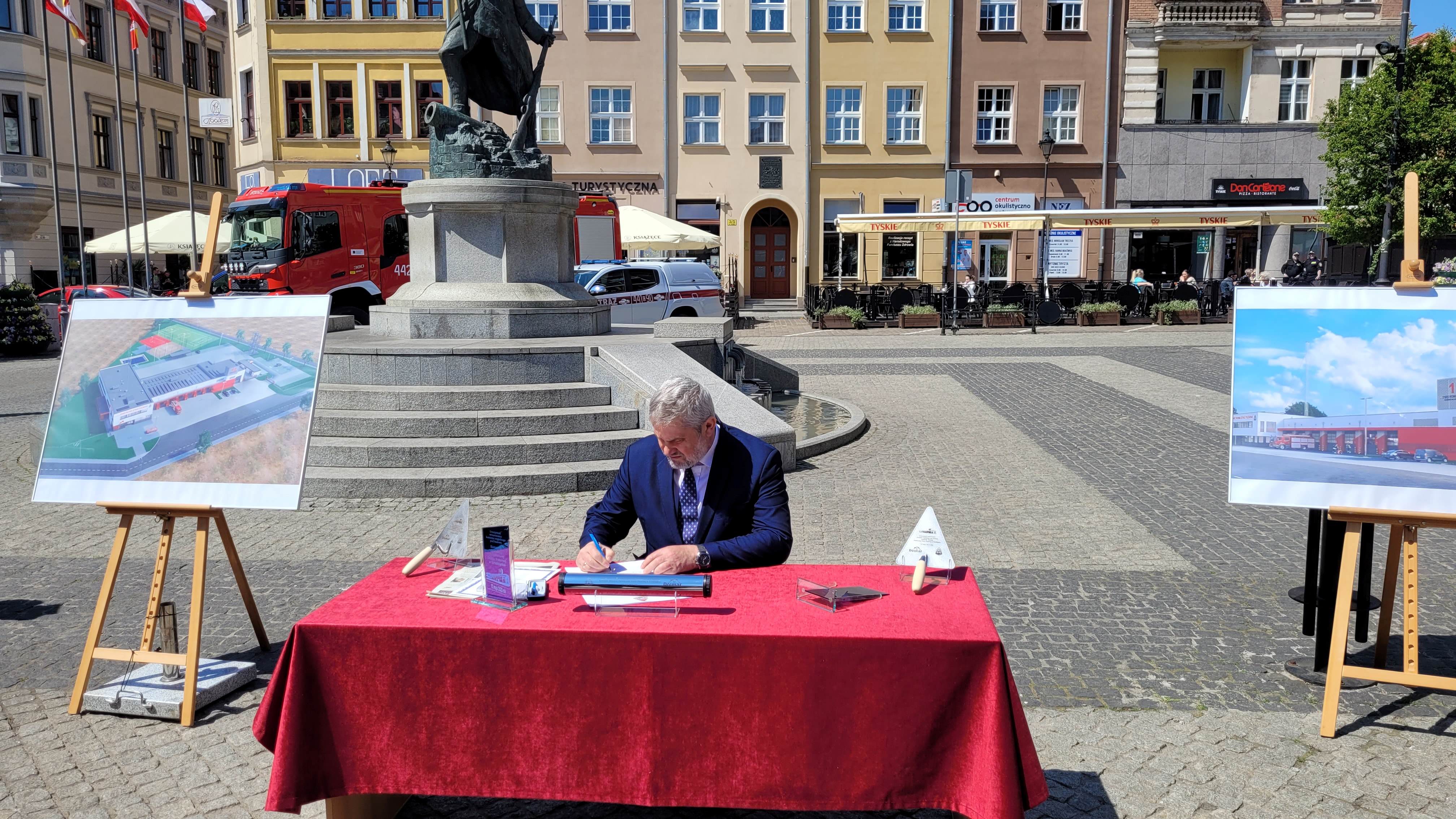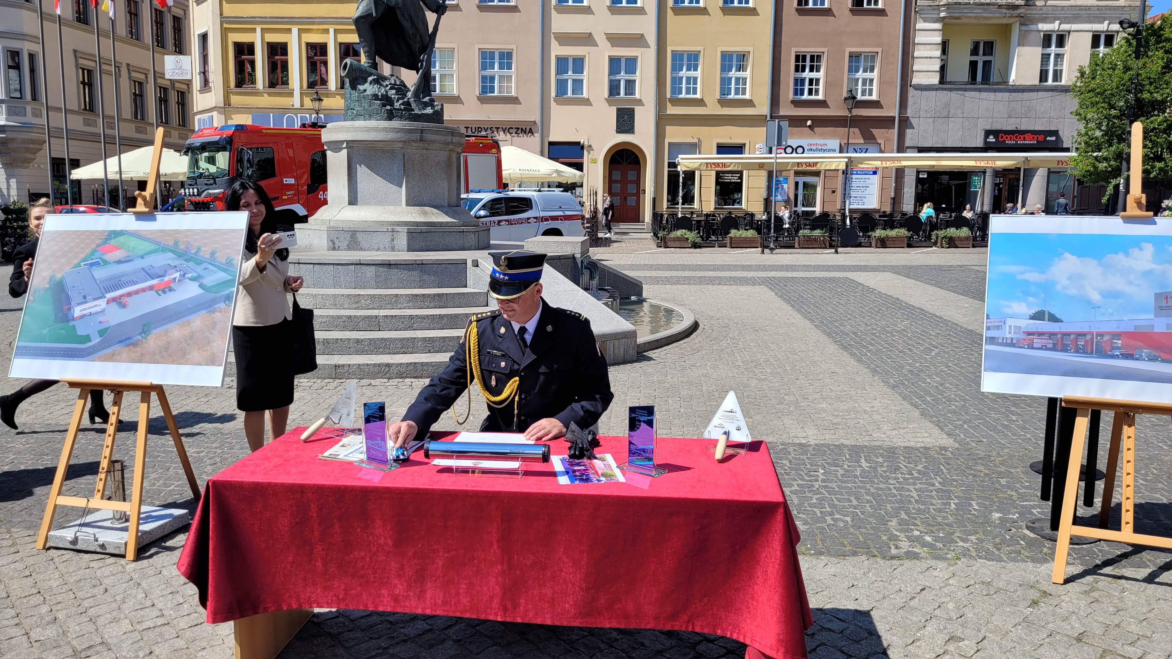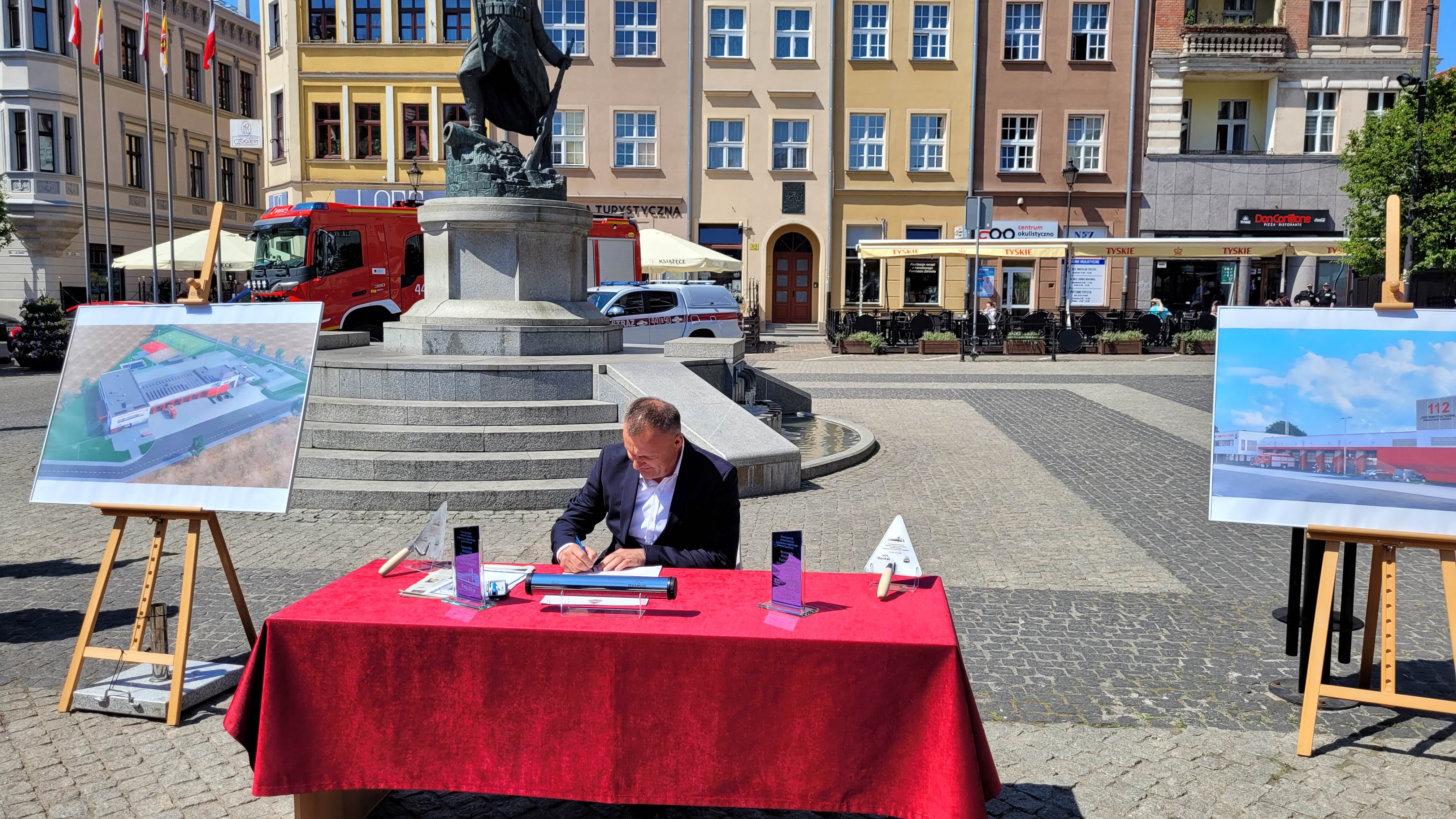 W trakcie dzisiejszych obchodów Dnia Strażaka, które odbyły się na płycie grudziądzkiego Rynku miało miejsce podpisanie aktu erekcyjnego pod budowę nowej siedziby Komendy Miejskiej PSP w Grudziądzu wraz z Jednostką Ratowniczo-Gaśniczą nr 1. Na akcie swoje podpisy złożyli: