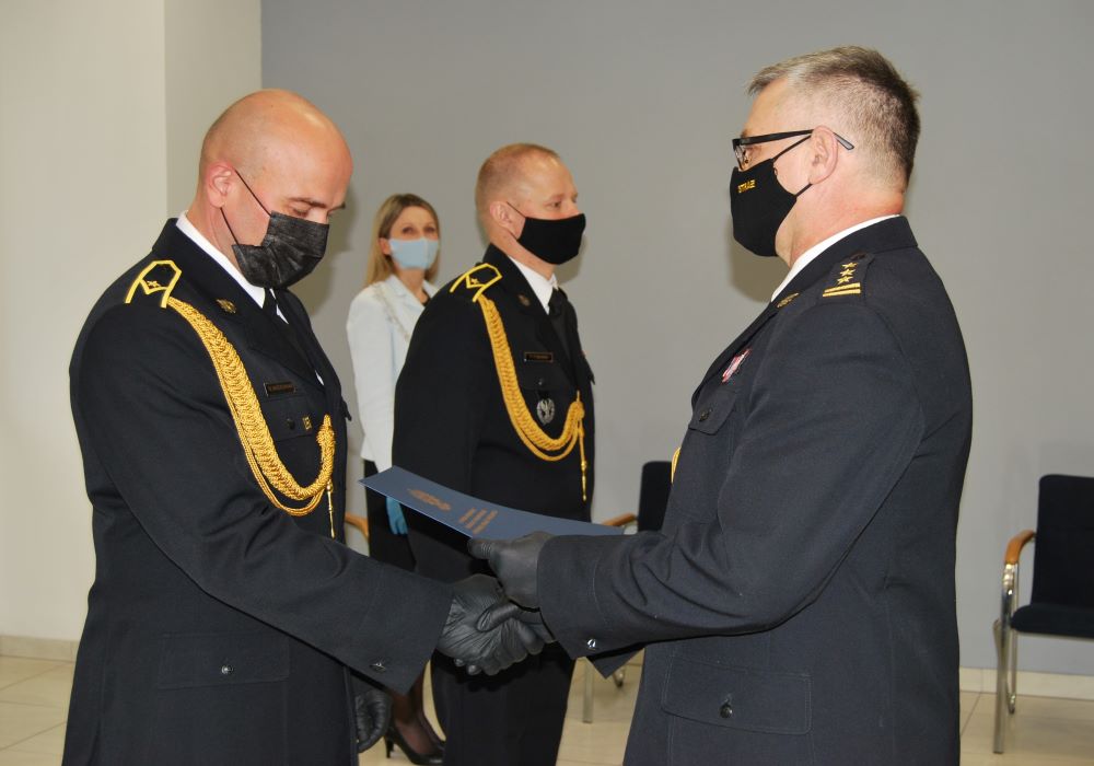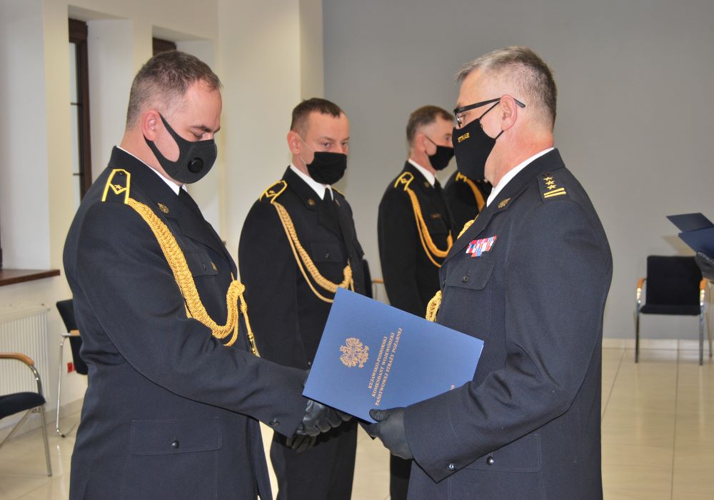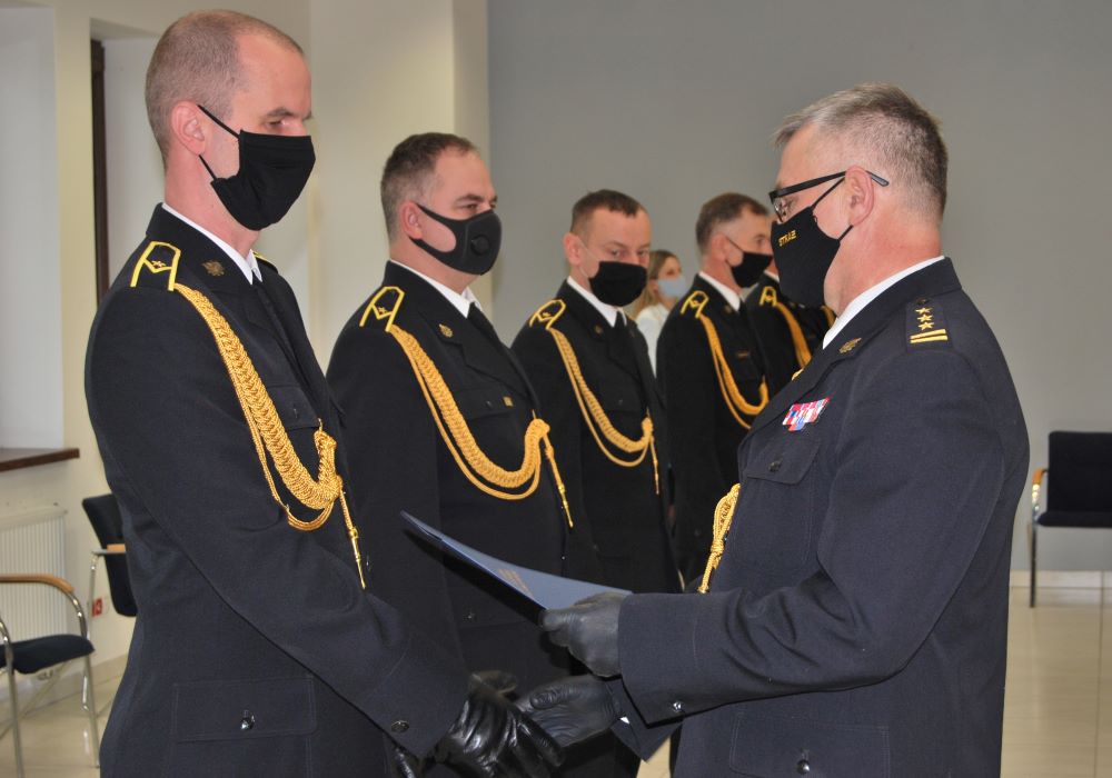 W czwartek, 26 listopada 2020 r. w Łubiance, w siedzibie Ośrodka Szkolenia KW PSP w Toruniu odbyła się uroczysta zbiórka. W jej trakcie Kujawsko-Pomorski Komendant Wojewódzki PSP st. bryg. Jacek Kaczmarek wręczył akty nadania wyższych stopni służbowych funkcjonariuszom z naszego województwa. Wśród awansowanych znaleźli się strażacy z grudziądzkiej komendy. Stopień służbowy młodszego aspiranta otrzymali: