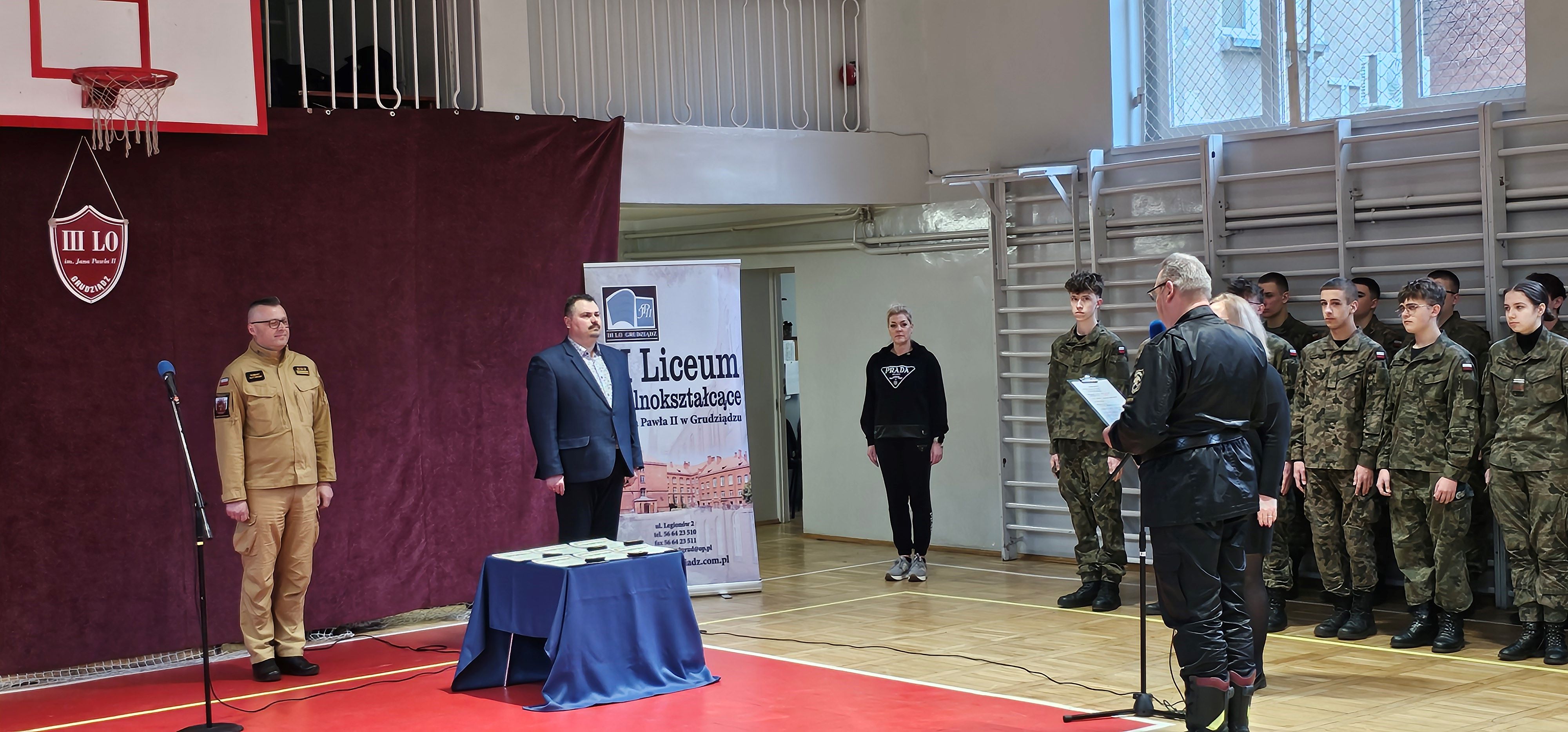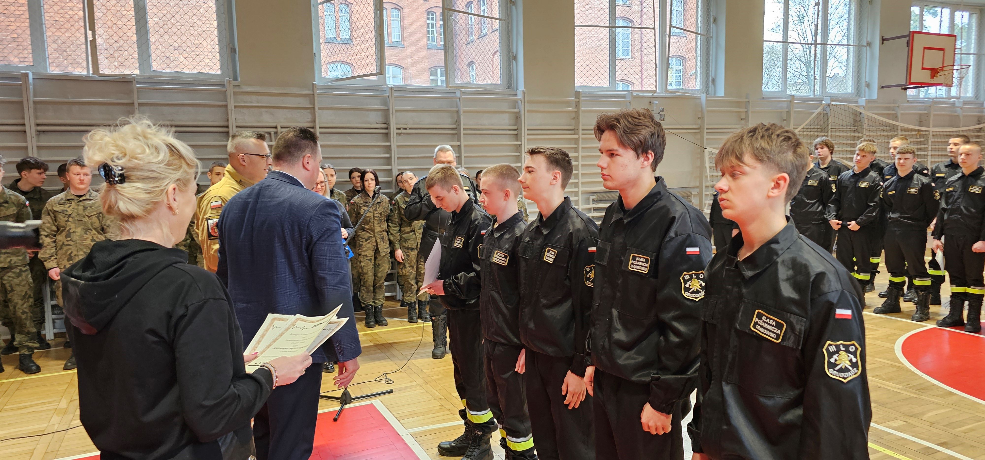 Dziś w gmachu III Liceum Ogólnokształcącego im. Jana Pawła II w Grudziądzu miało miejsce ważne wydarzenie. W czasie uroczystej zbiórki, uczniom klas mundurowych, o profilu pożarniczym, wręczone zostały wyróżnienia semestralne. Najlepszym licealistom wyższe "stopnie szkolne" wręczyli: dyrektor szkoły Łukasz Piasecki oraz Komendant Miejski PSP w Grudziądzu st. bryg. Robert Gutowski. Wszystkim wyróżnionym gratulujemy.
