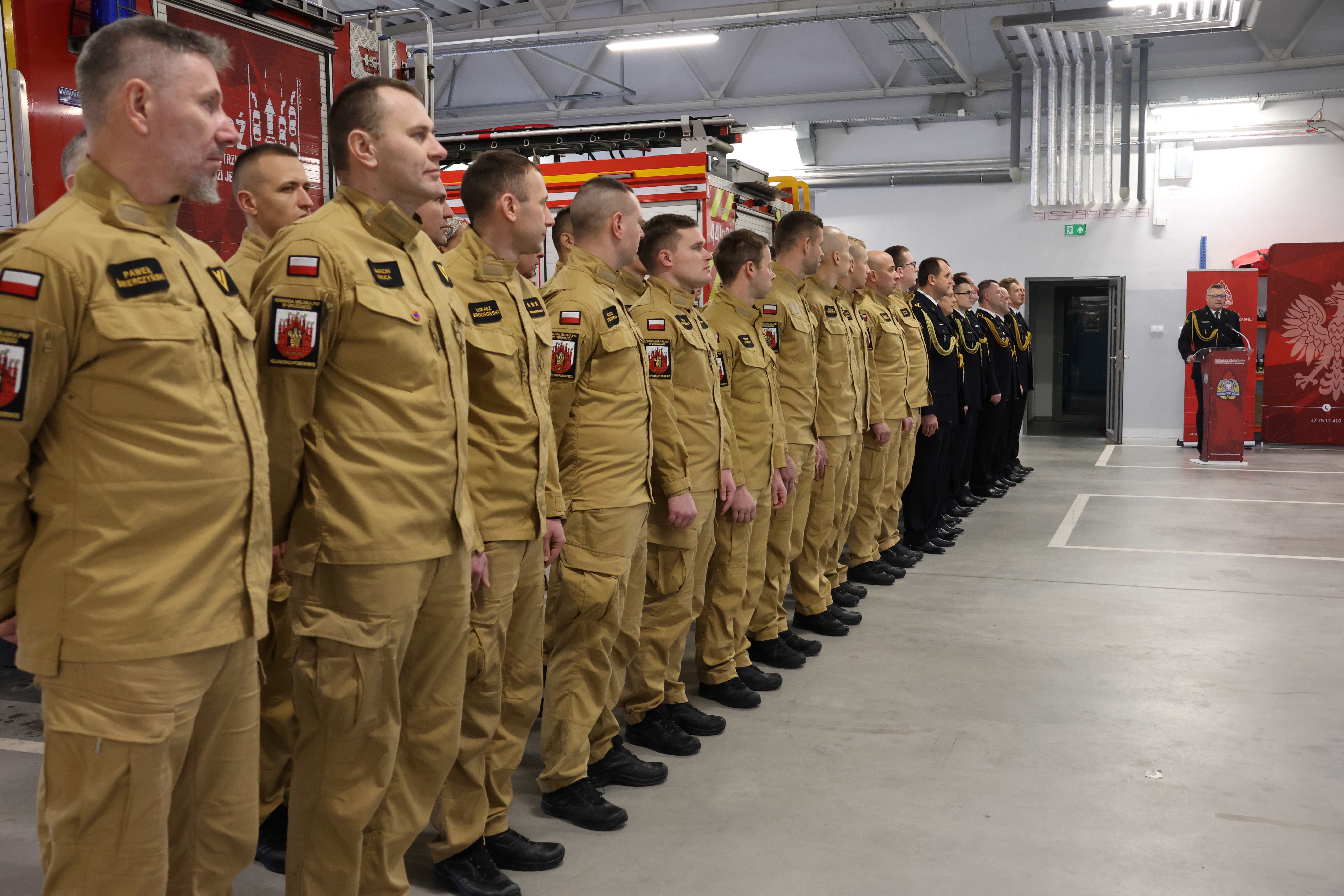 W trakcie dzisiejszej, uroczystej zbiórki, która odbyła się w hali garażowej JRG nr 1 w Grudziądzu, nastąpiło oficjalne zdanie obowiązków przez dotychczasowych zastępców dowódców obydwu grudziądzkich JRG oraz przyjęcie tych obowiązków przez mianowanych na te stanowiska strażaków.