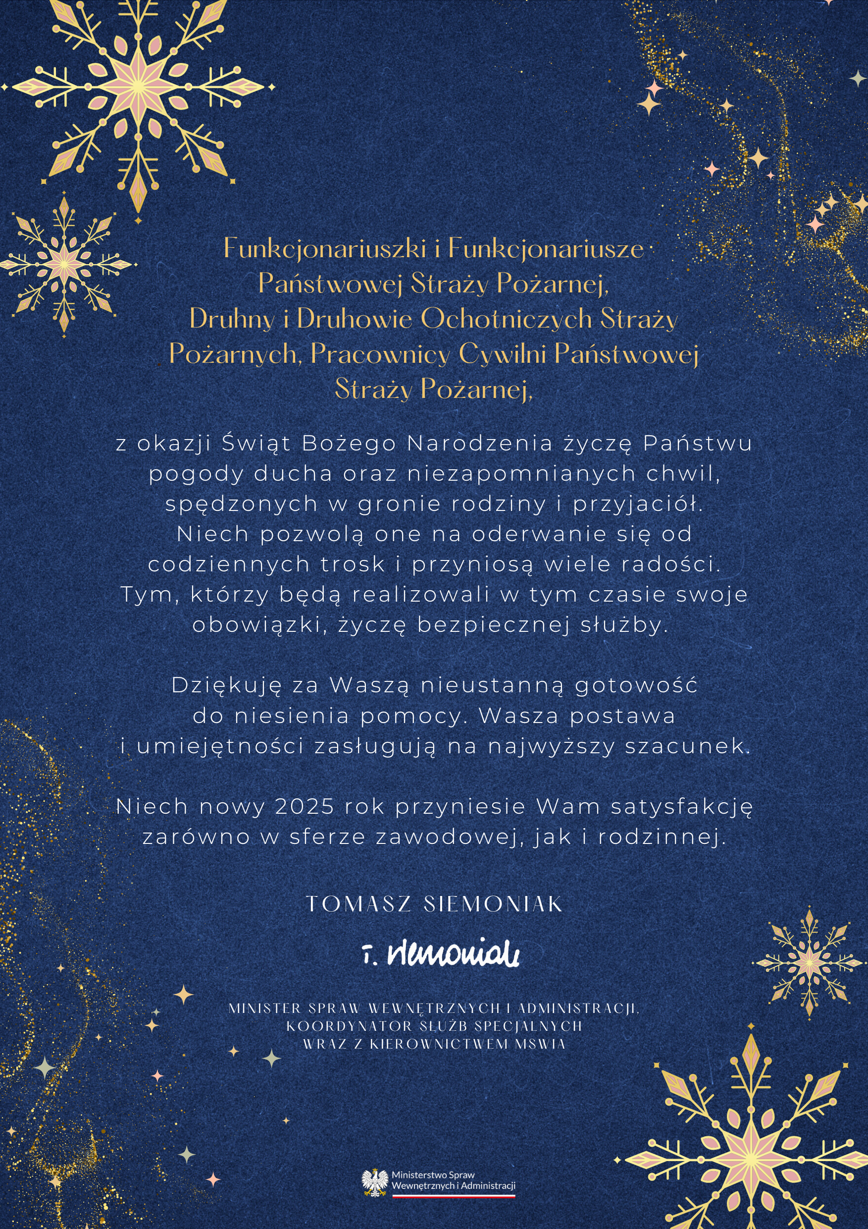 Życzenia świąteczne Ministra Spraw Wewnętrznych i Administracji