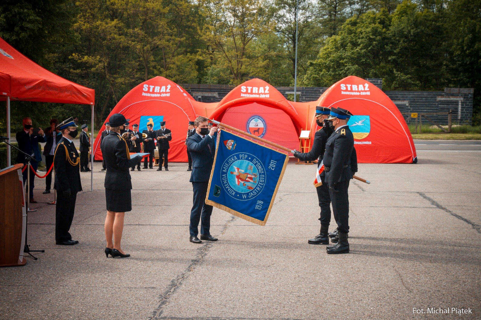 Naszą uroczystość zaszczycili swoją obecnością: Michał Woś - Sekretarz Stanu w Ministerstwie Sprawiedliwości, Grzegorz Matusiak - Poseł na Sejm RP, nadbryg. Jacek Kleszczewski - Śląski Komendant Wojewódzki PSP, Jacek Świerkocki - Radny Sejmiku Województwa Śląskiego, Tomasz Bednarek - Prezes Zarządu Wojewódzkiego Funduszu Ochrony Środowiska i Gospodarki Wodnej w Katowicach, Anna Hetman - Prezydent Miasta Jastrzębie-Zdrój, Franciszek Dziendziel - Wójt Gminy Pawłowice, Wojciech Emerling - Dyrektor Zakładu Karnego w Jastrzębiu-Zdroju, Jerzy Szkatuła - Wiceprezes Zarządu Oddziału Wojewódzkiego ZOSP RP, a także Pani Barbara Piontek - Prezes JSW S.A. oraz Pan Tomasz Budniok - Prezes Firmy Becker Warkop.