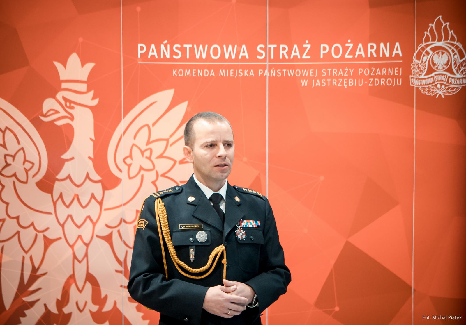 W dniu 10 listopada 2022 roku o godzinie 8:00 w siedzibie Komendy Miejskiej PSP w Jastrzębiu-Zdroju odbyła się uroczysta zbiórka z okazji 104 rocznicy odzyskania przez Polskę niepodległości. Uroczystość ta połączona była z przyjęciem w poczet strażaków tut. Komendy 2 funkcjonariuszy. Rozpoczęła się od złożenia meldunku przez st. kpt. Piotra Markiewicza – dowódcy uroczystości o rozpoczęciu uroczystej zbiórki z okazji Święta Niepodległości Komendantowi Miejskiemu PSP w Jastrzębiu-Zdroju st. bryg. Wojciechowi Piechaczkowi.